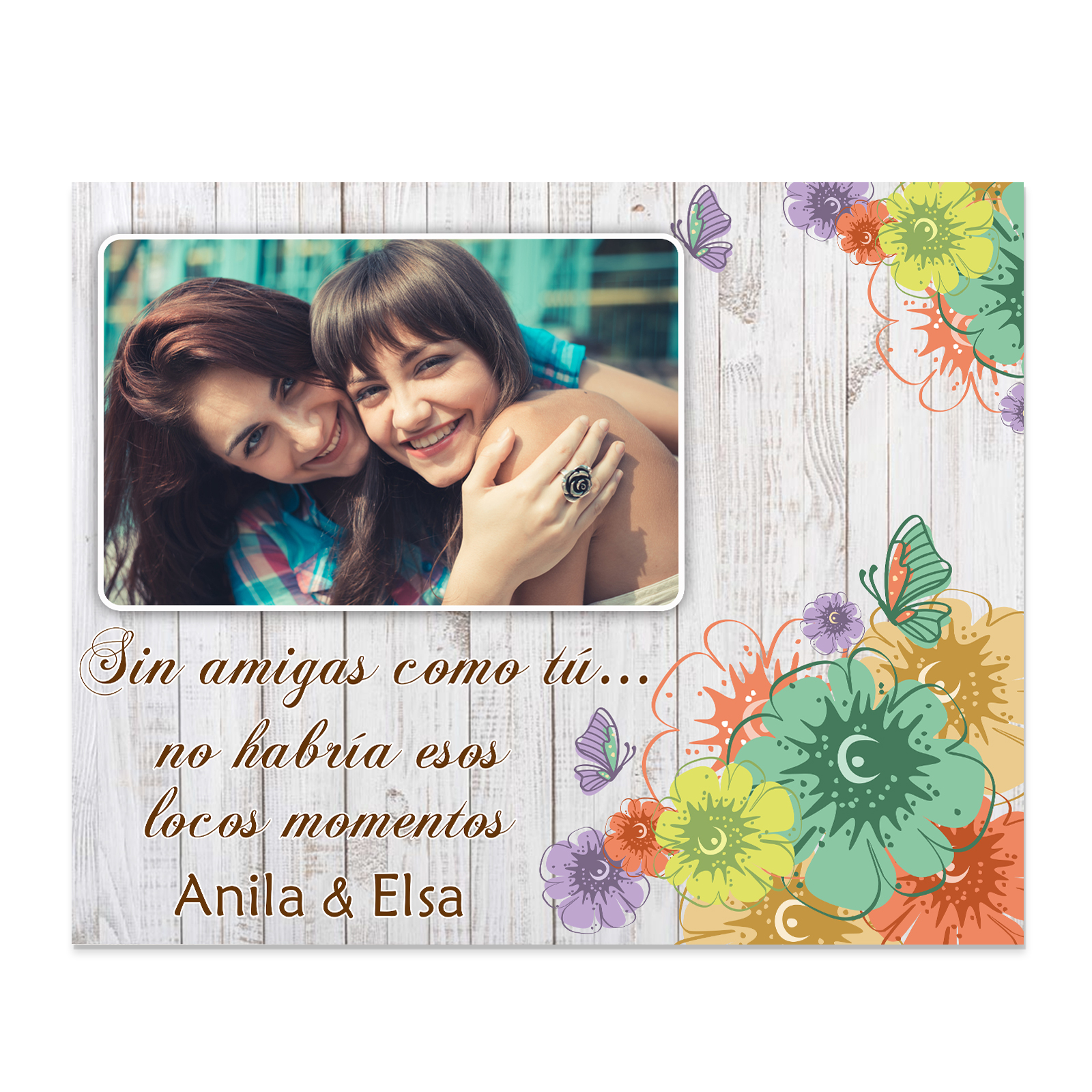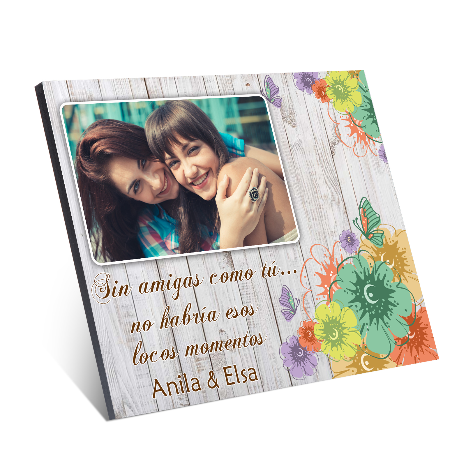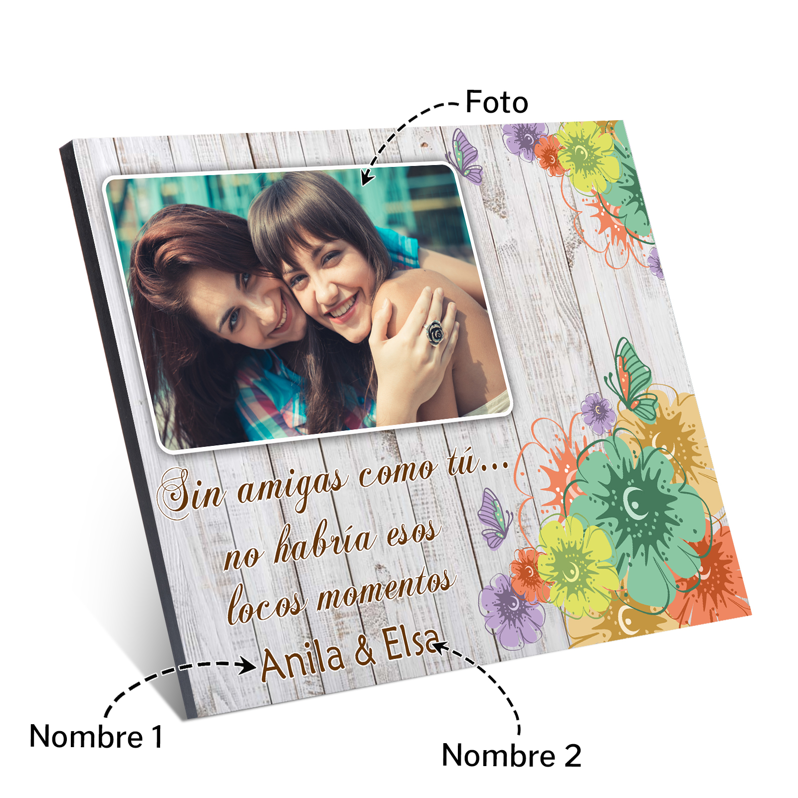 Lámina marco de madera para mi amiga personalizado con foto y 2 nombres
