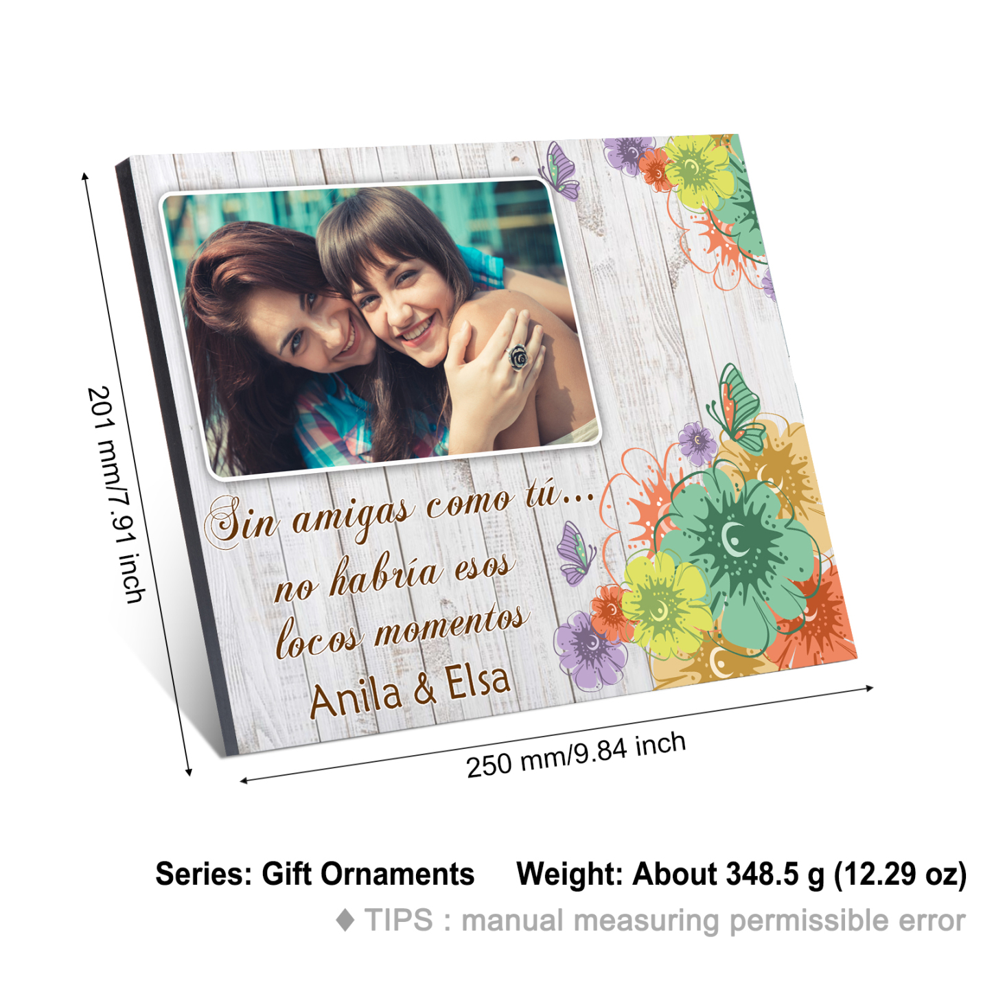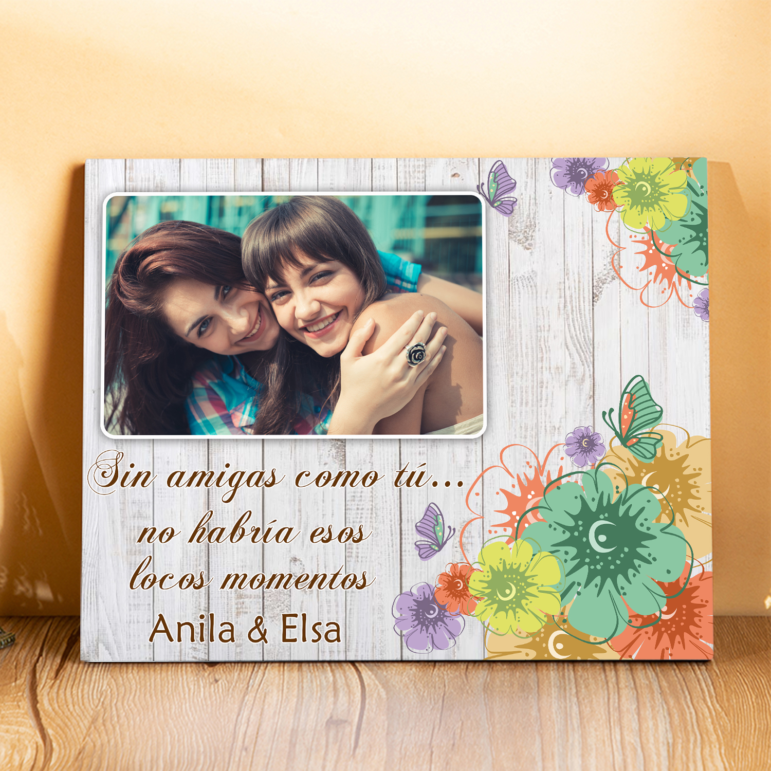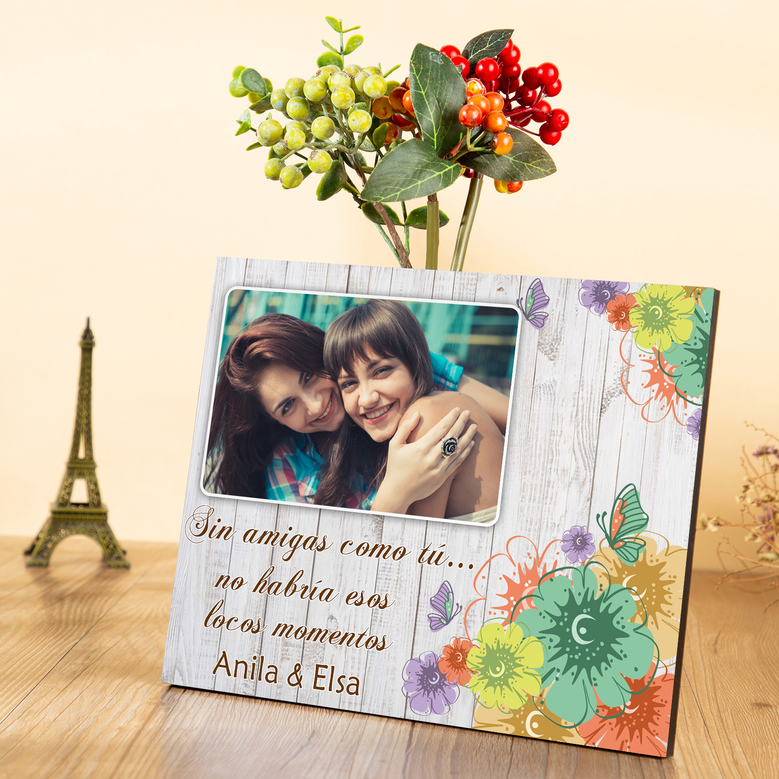 Lámina marco de madera para mi amiga personalizado con foto y 2 nombres