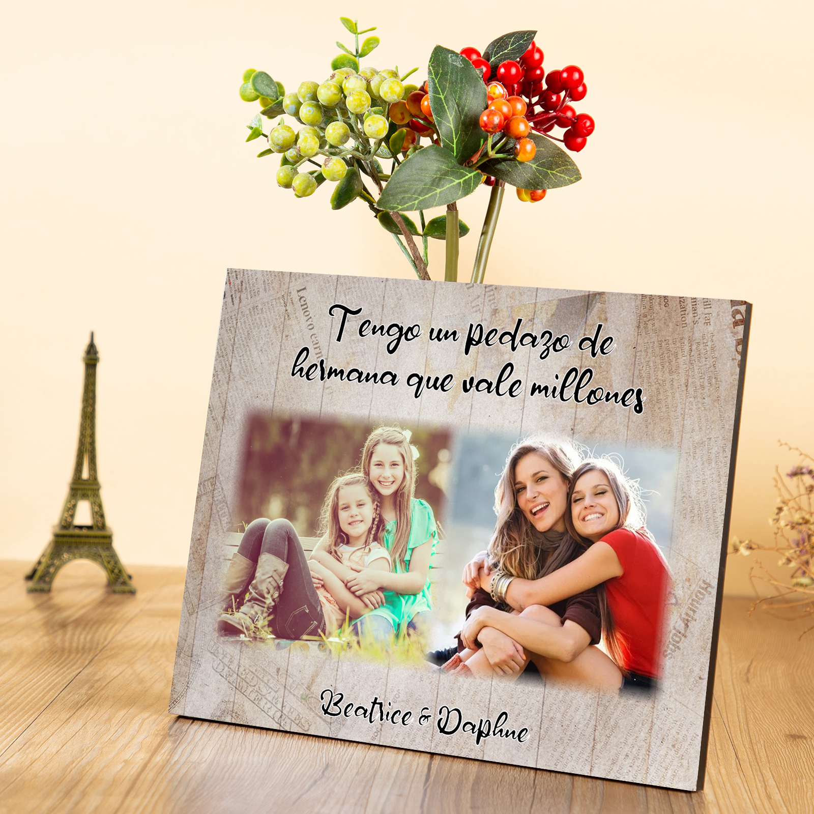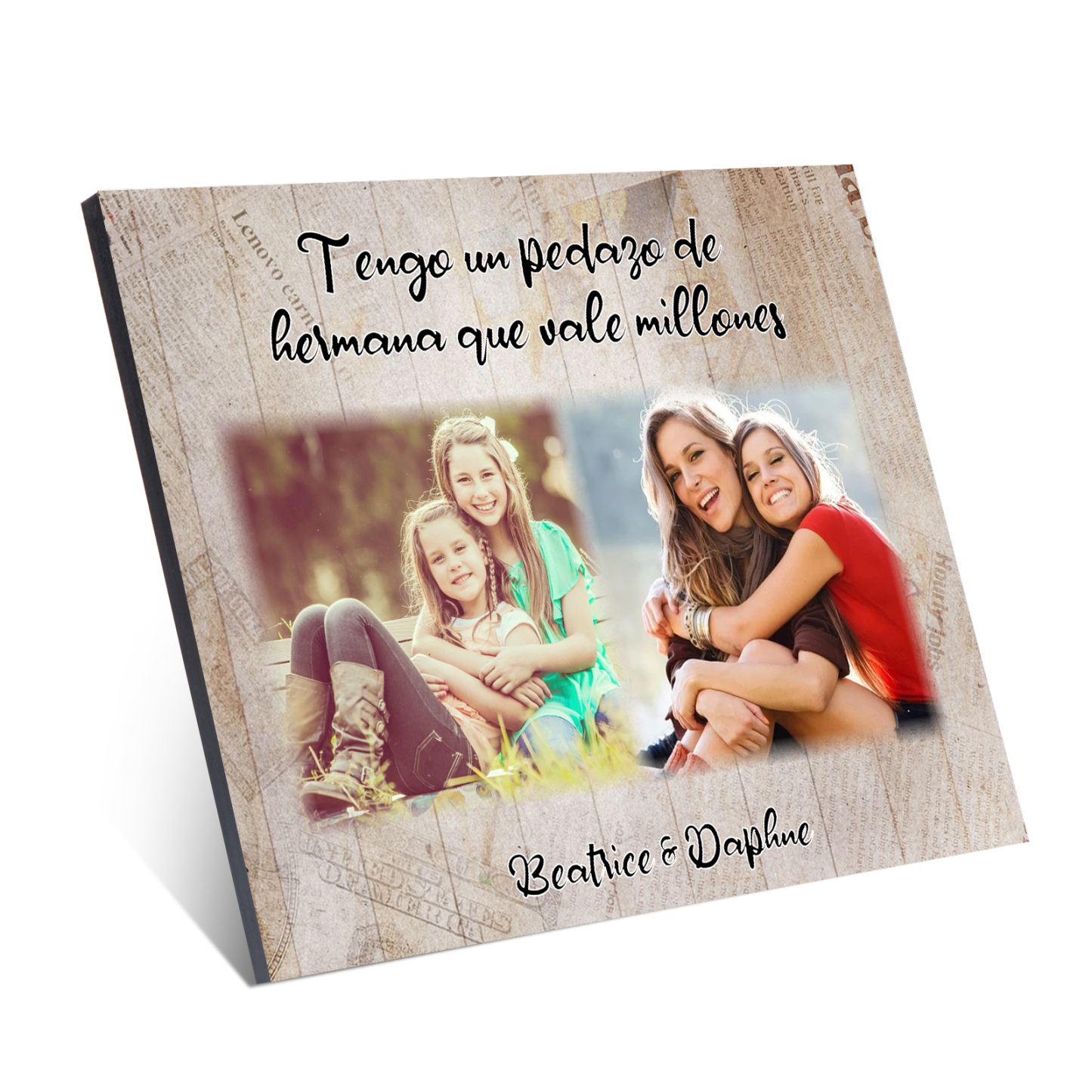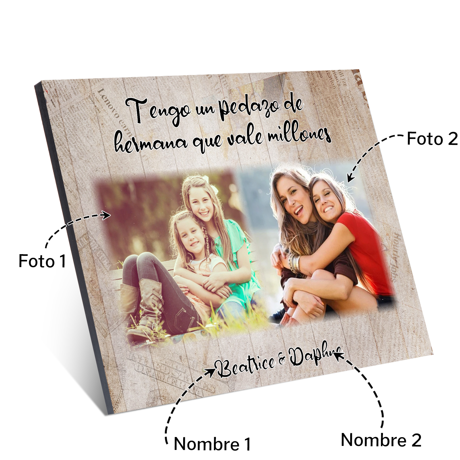 Lámina marco de madera para mi hermana personalizado con 2 fotos y 2 nombres