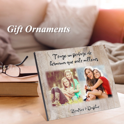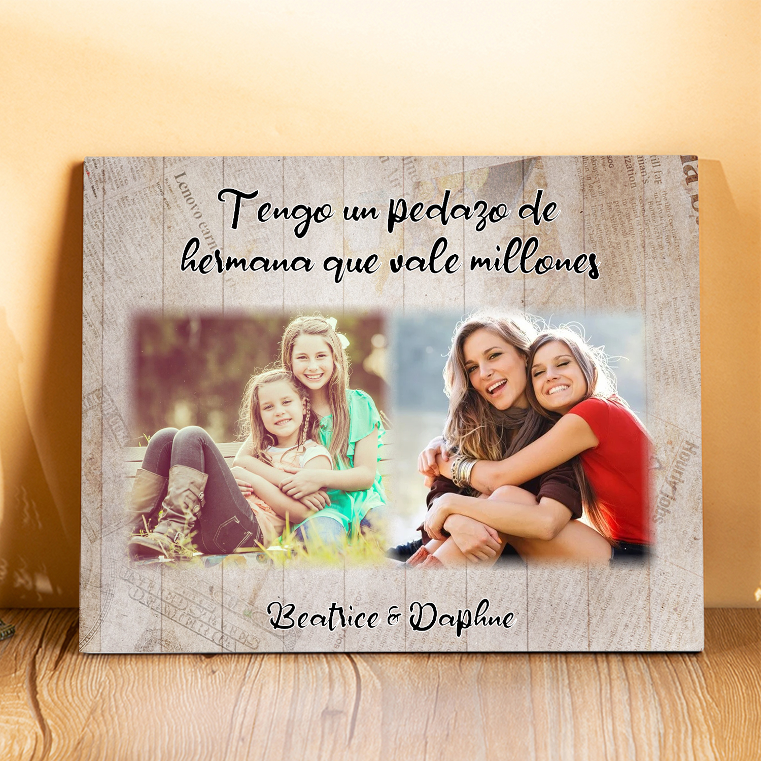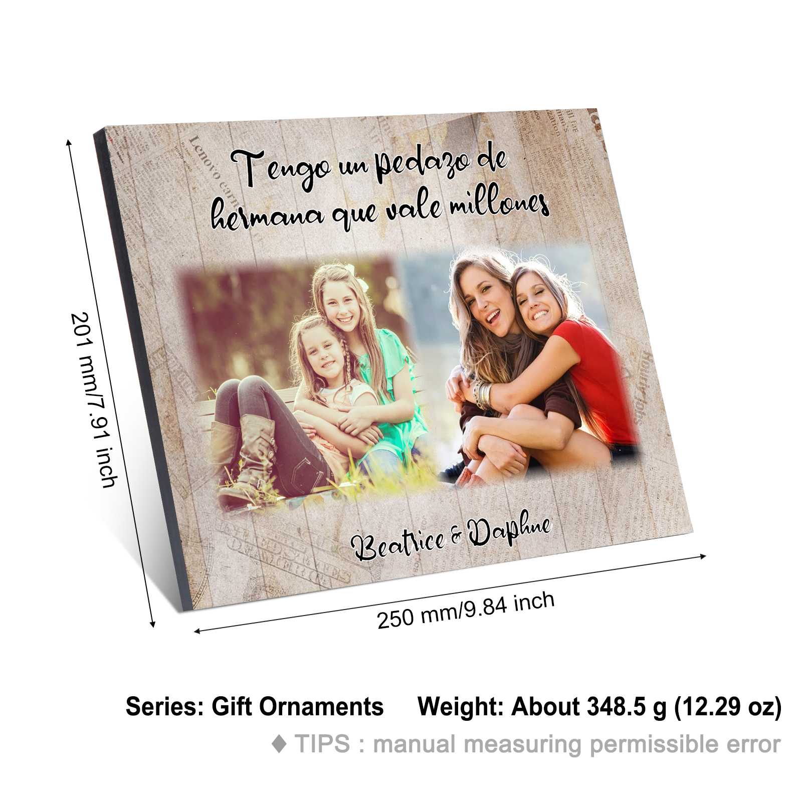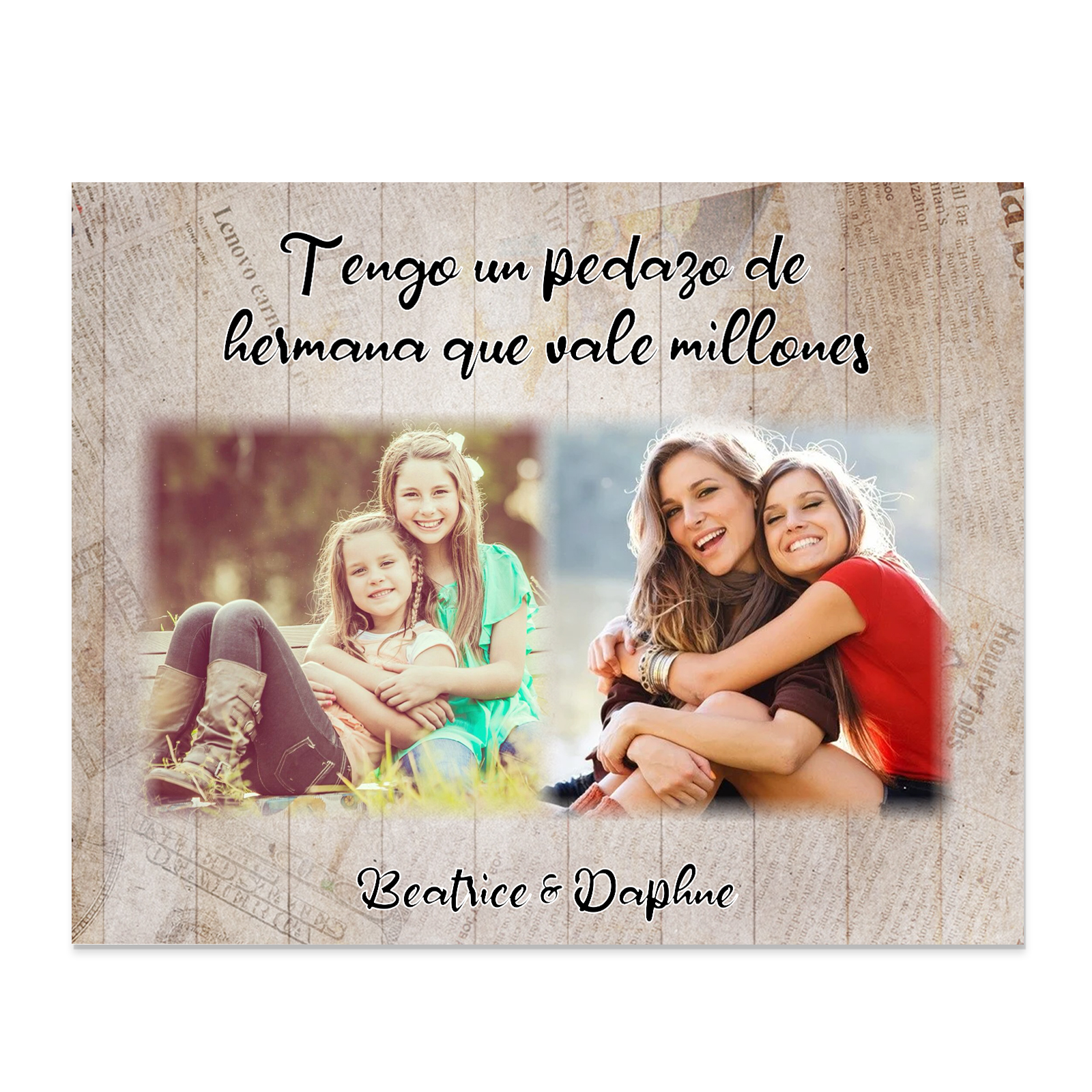 Lámina marco de madera para mi hermana personalizado con 2 fotos y 2 nombres