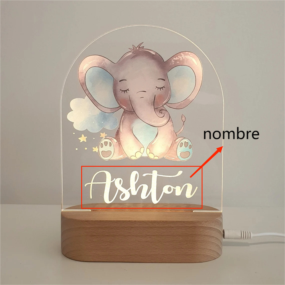 A chico-Nombre personalizado Lámpara 3D Ilusión Luz de noche elefante LED monocromáticas