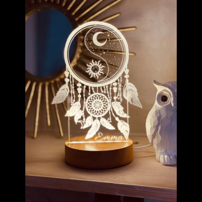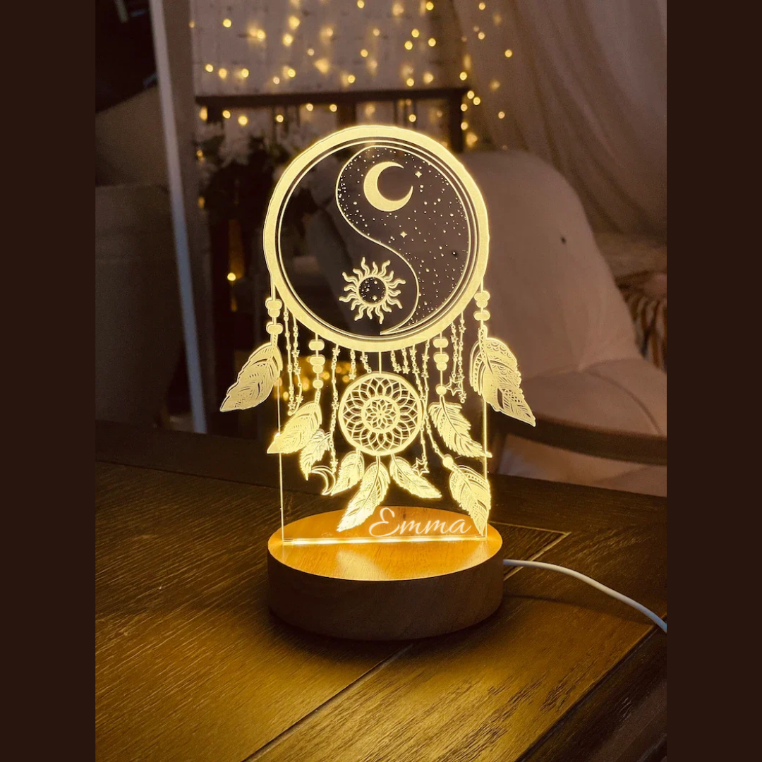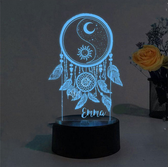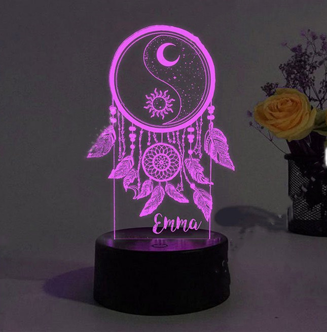 Lámpara 3D Ilusión Luz de noche Atrapasueños LED Luces de colores personalizadas 1 nombre