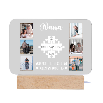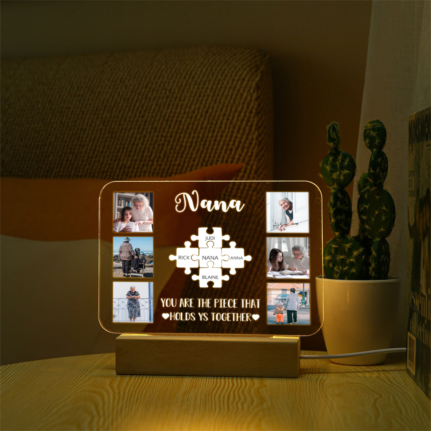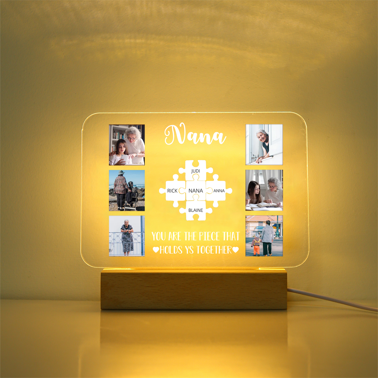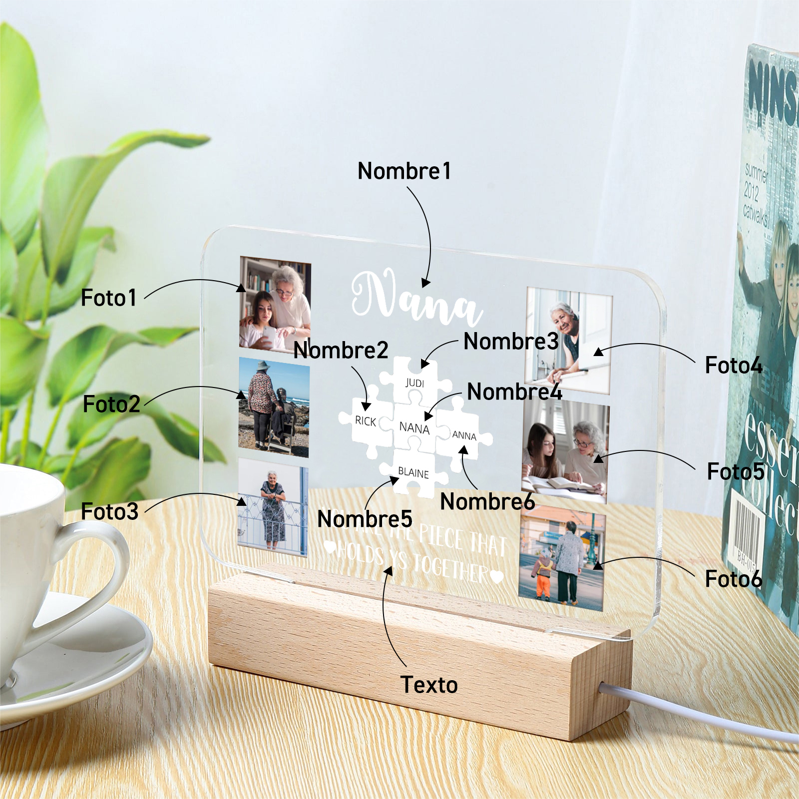 Lámpara de noche LED 6 fotos cariñosas con 1 texto y 6 nombres personalizados en rompecabezas