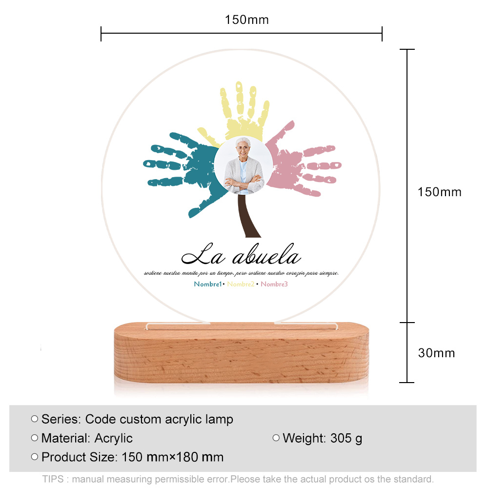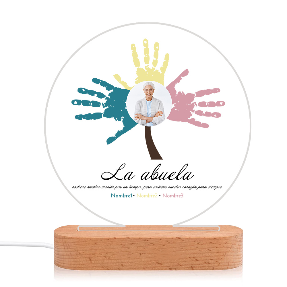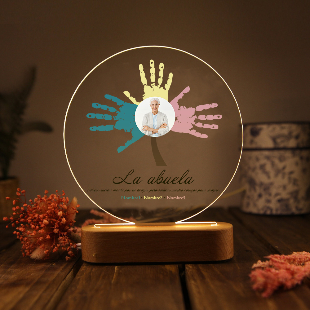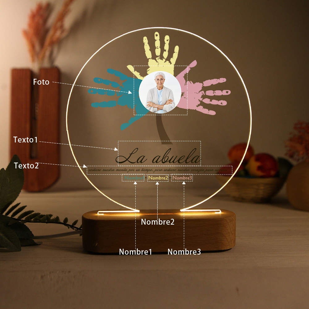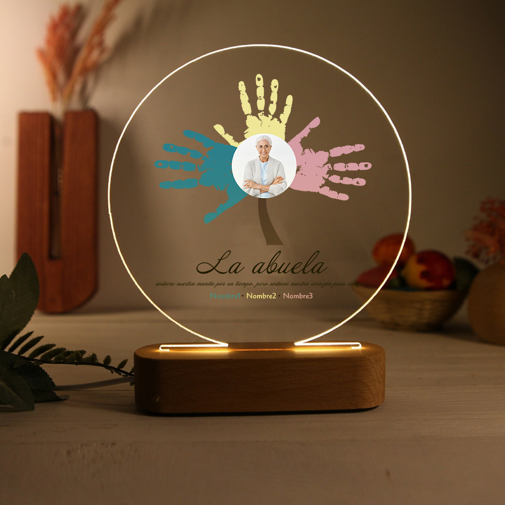 Lámpara de noche LED Árbol de huellas de mano 1 foto, 2 texto y 3 nombres personalizados