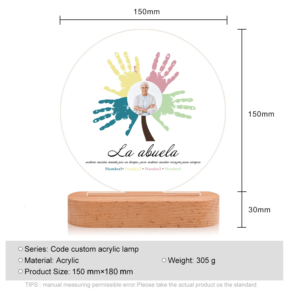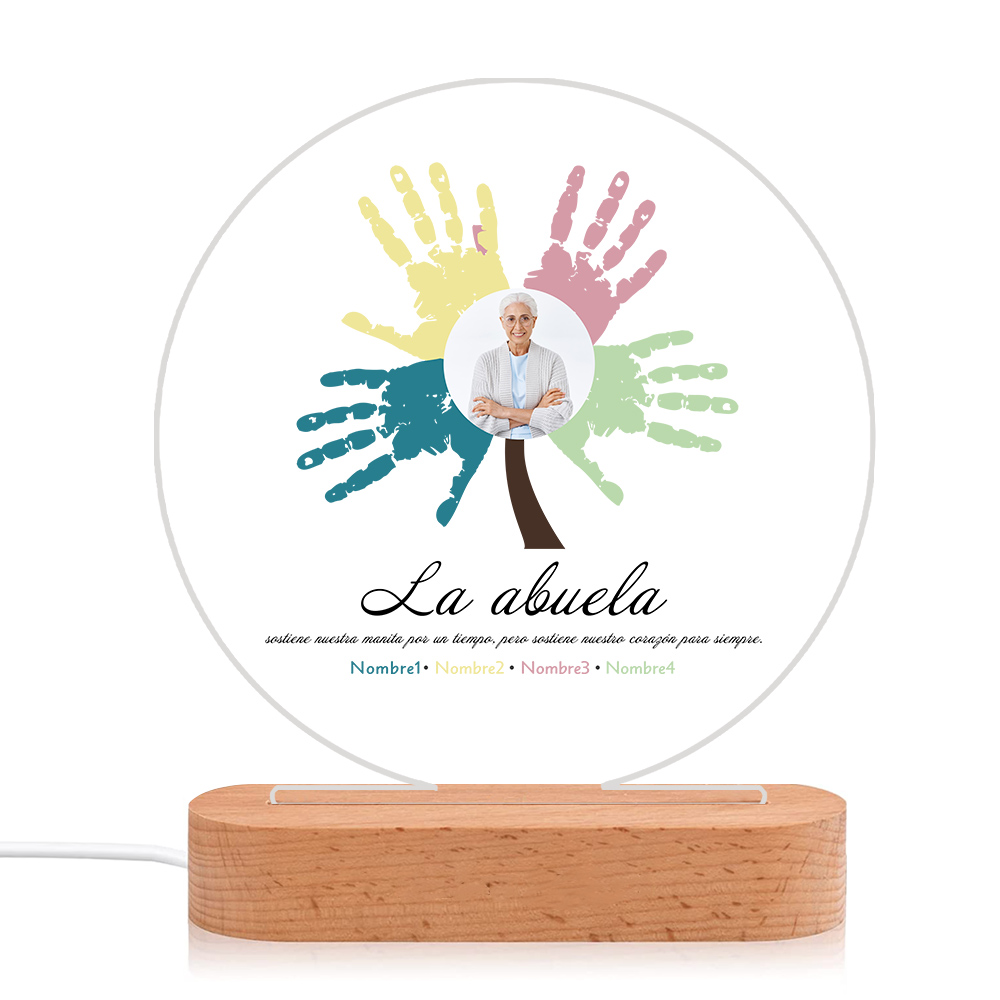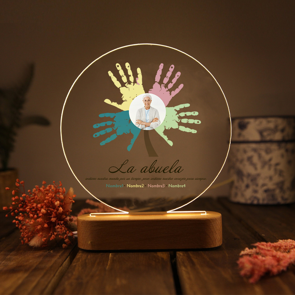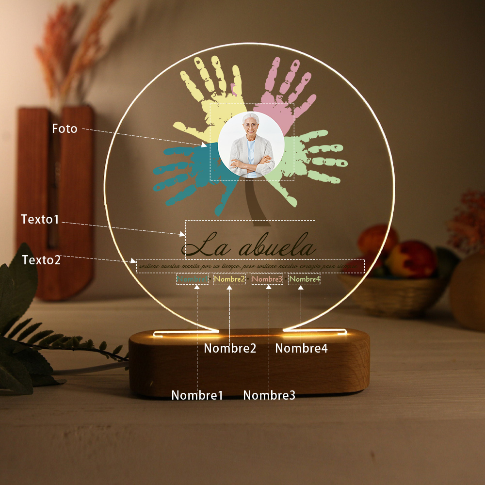 Lámpara de noche LED Árbol de huellas de mano 1 foto, 2 texto y 4 nombres personalizados