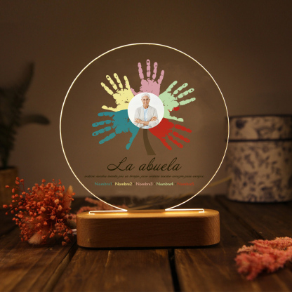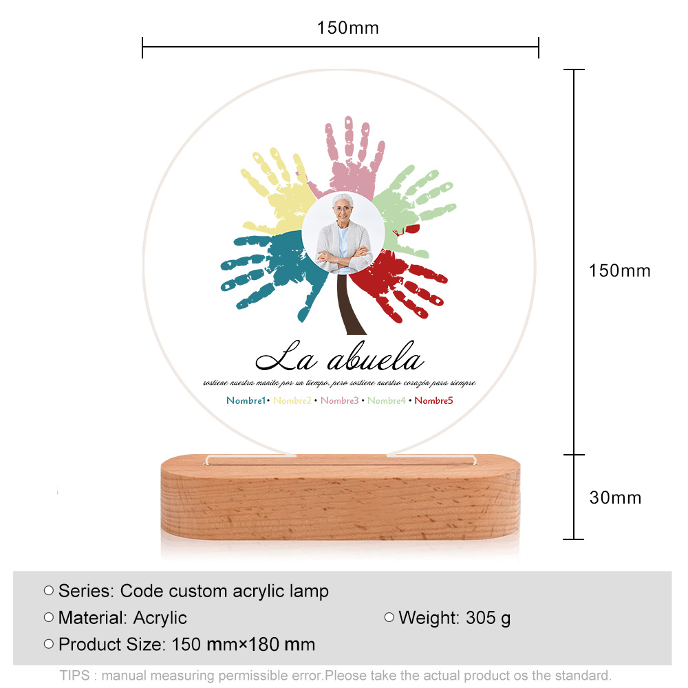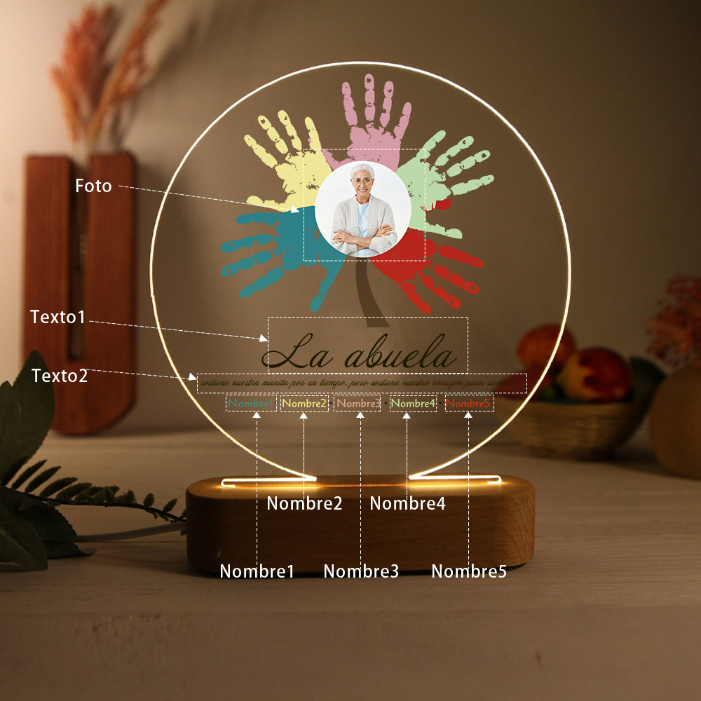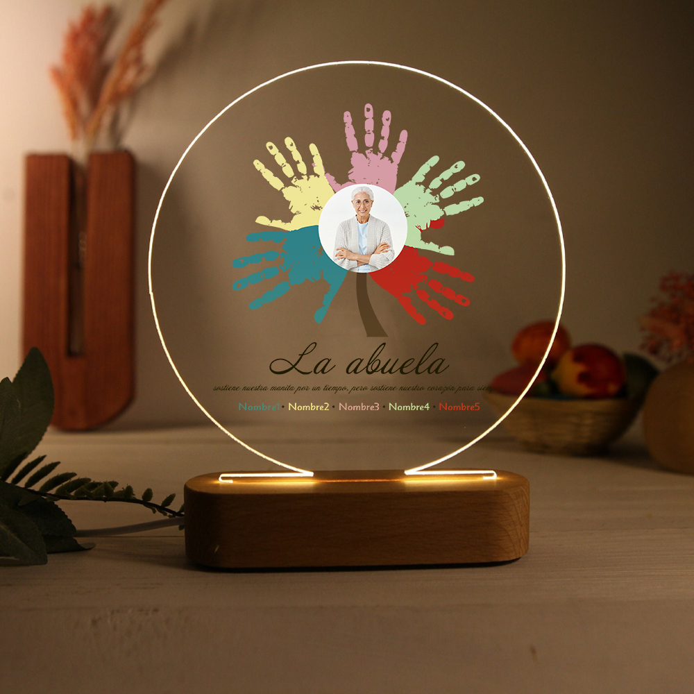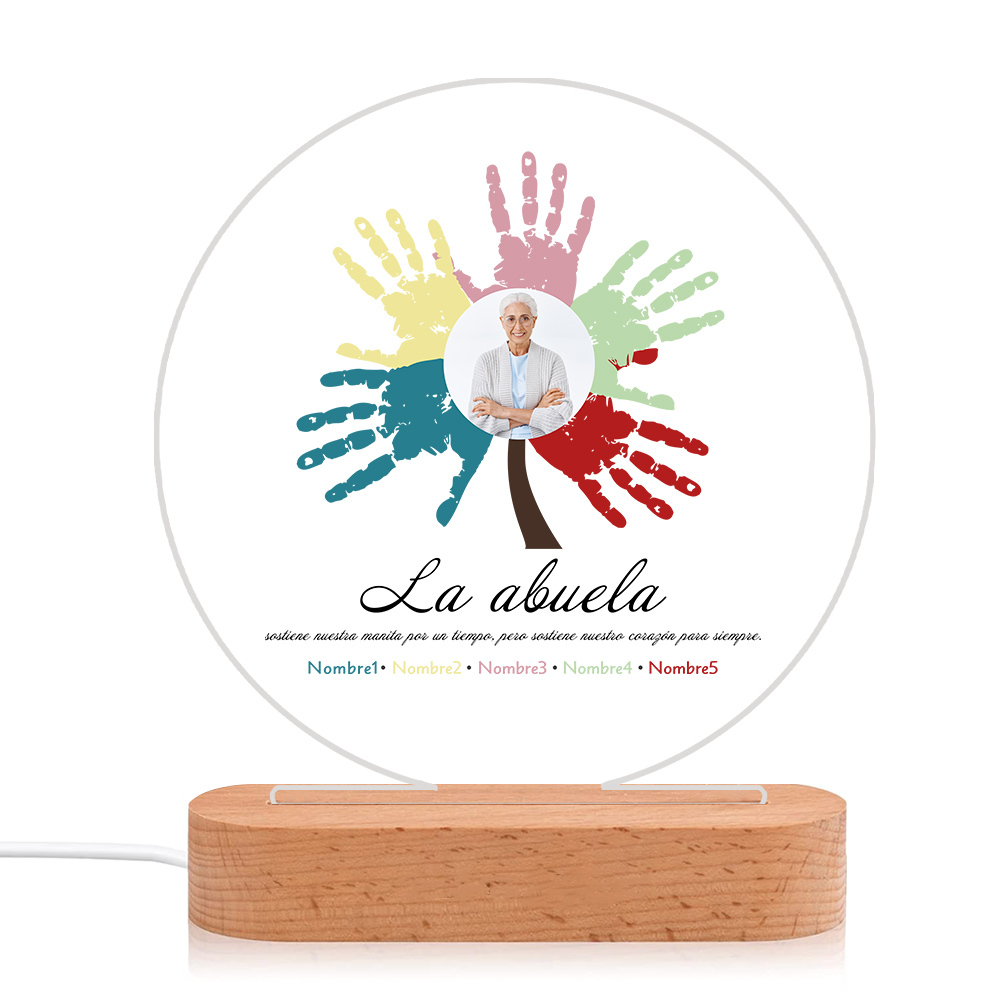 Lámpara de noche LED Árbol de huellas de mano 1 foto, 2 texto y 5 nombres personalizados