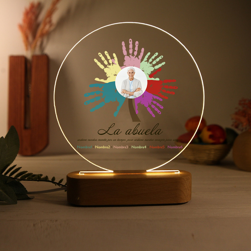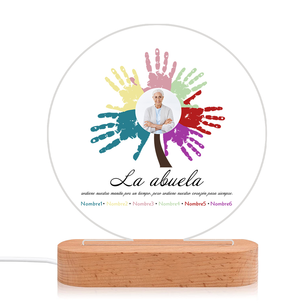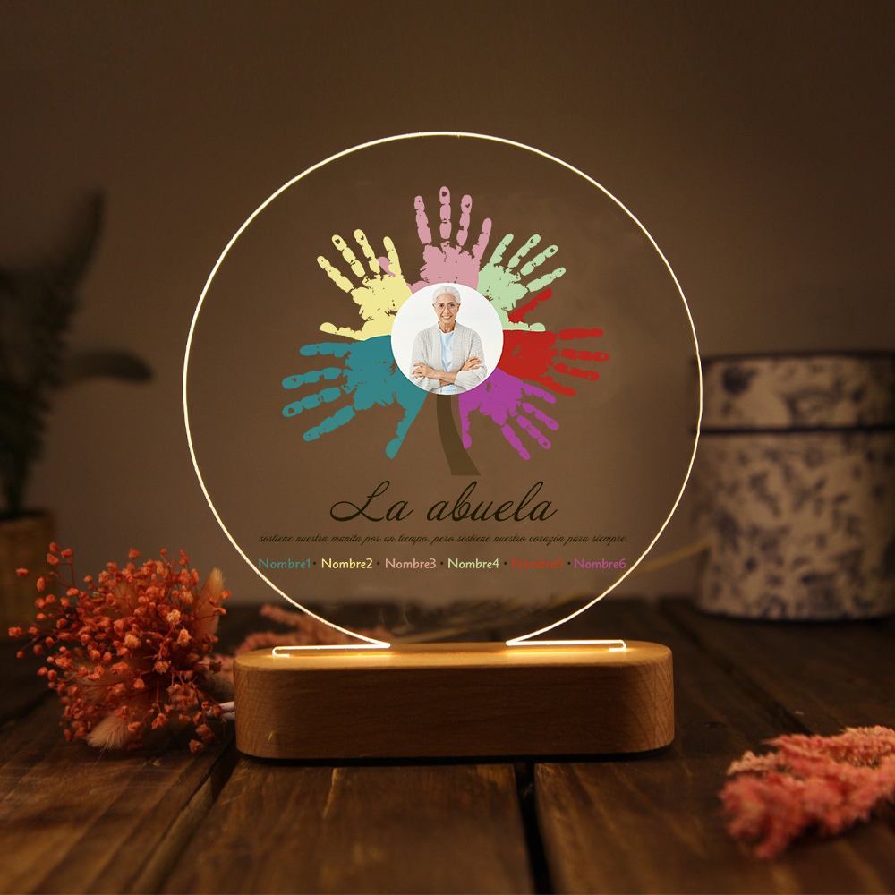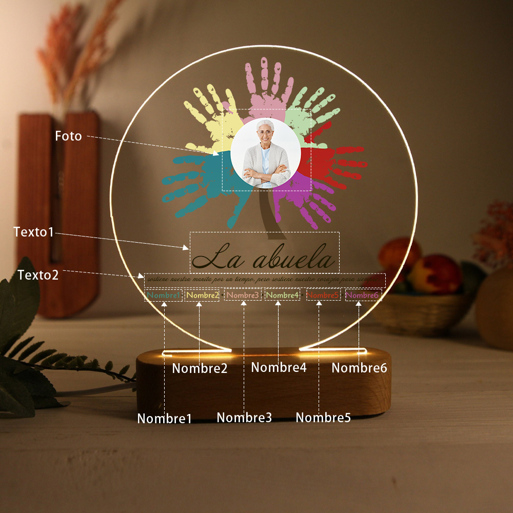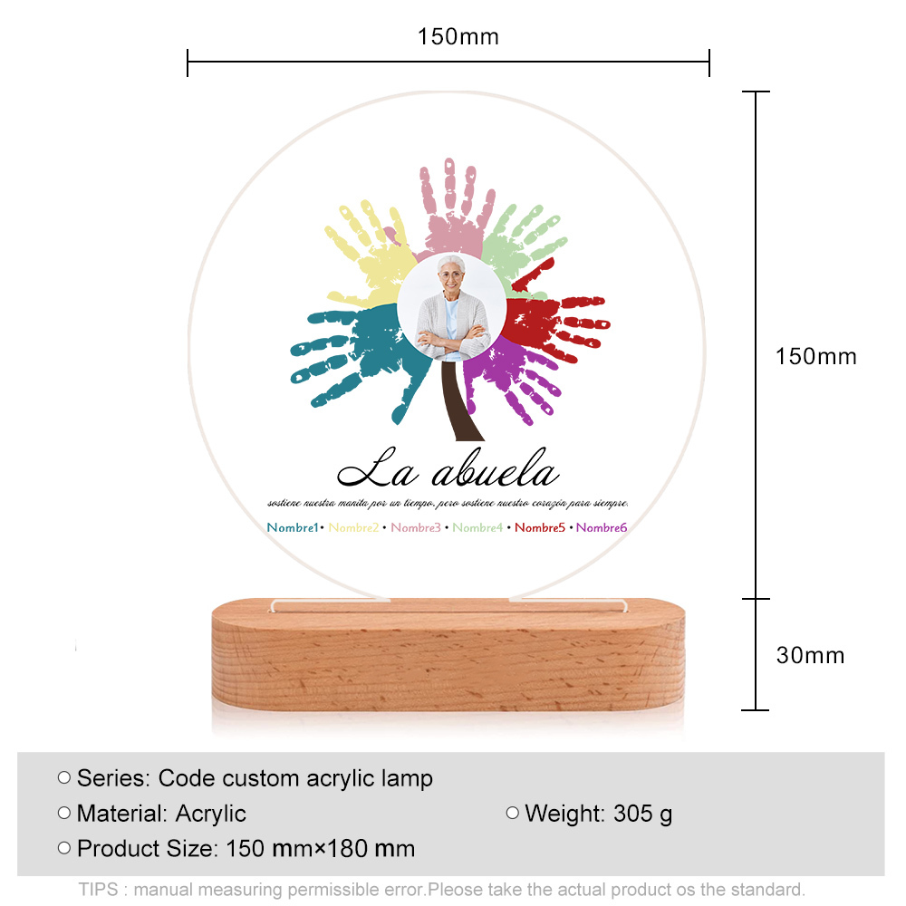 Lámpara de noche LED Árbol de huellas de mano 1 foto, 2 texto y 6 nombres personalizados