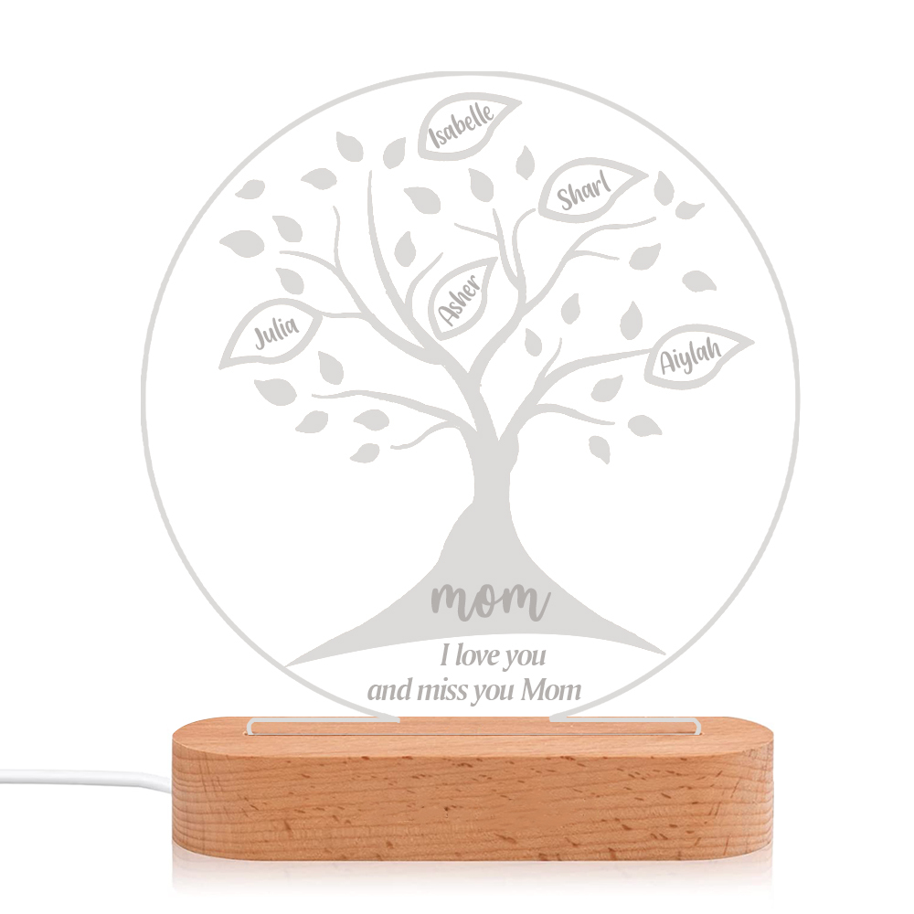 Lámpara de noche LED Árbol de la vida Árbol genealógico 5 nombres personalizados con 2 textos