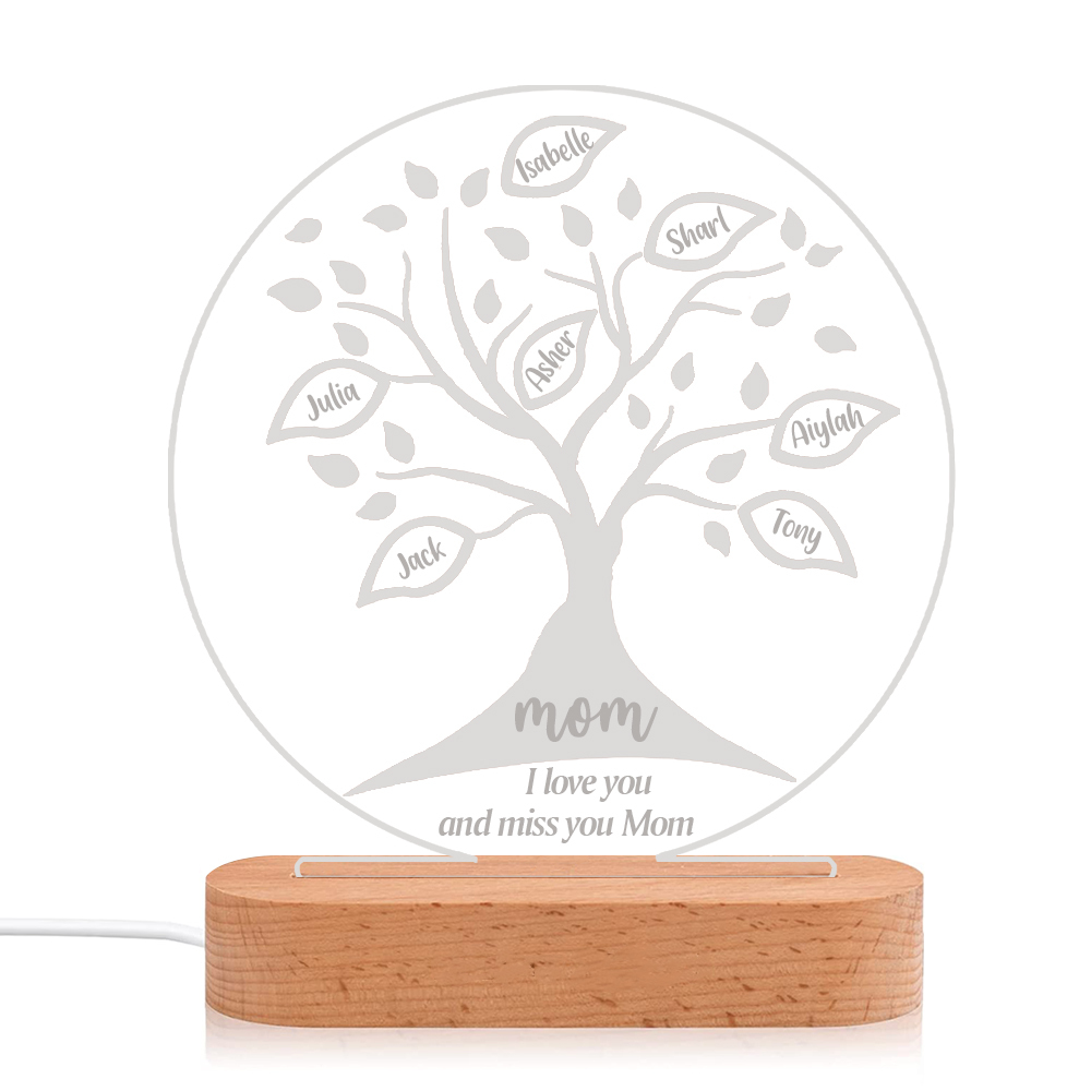 Lámpara de noche LED Árbol de la vida Árbol genealógico 7 nombres personalizados con 2 textos
