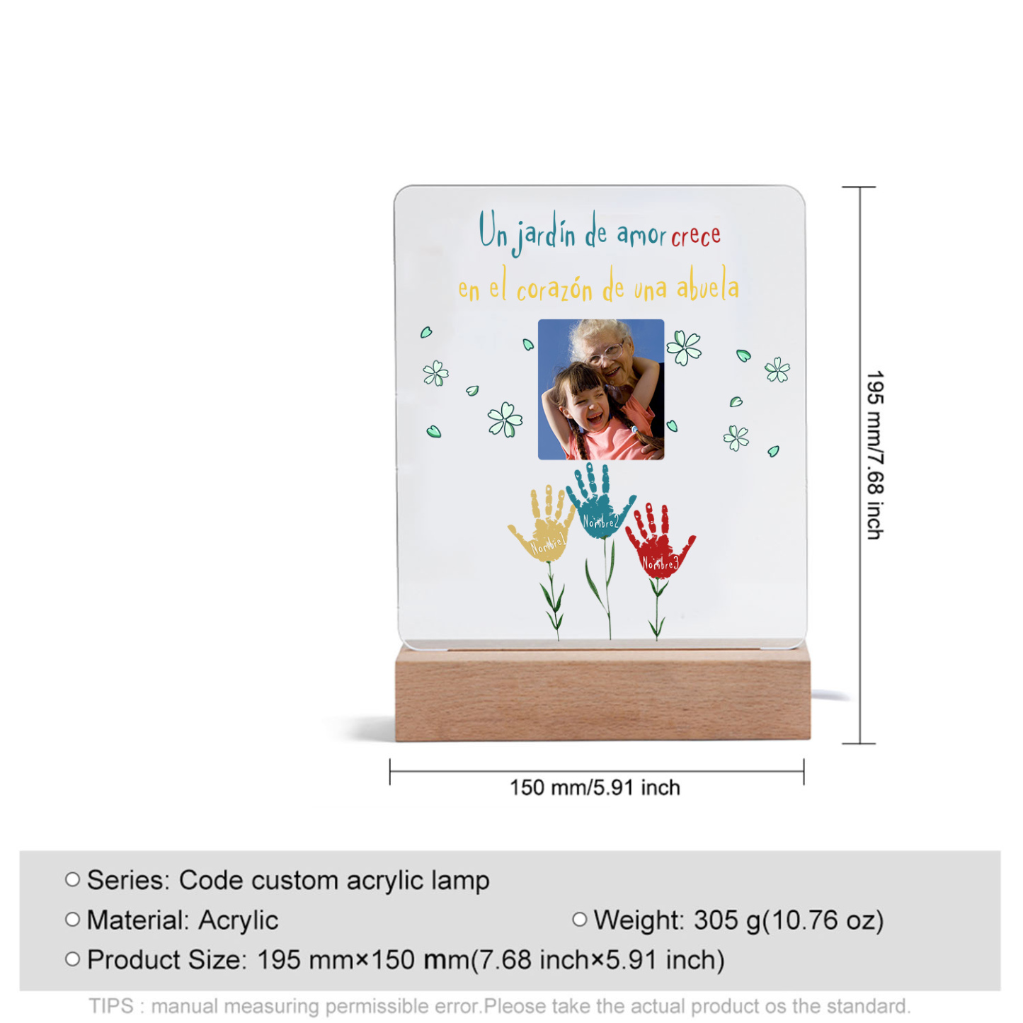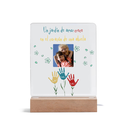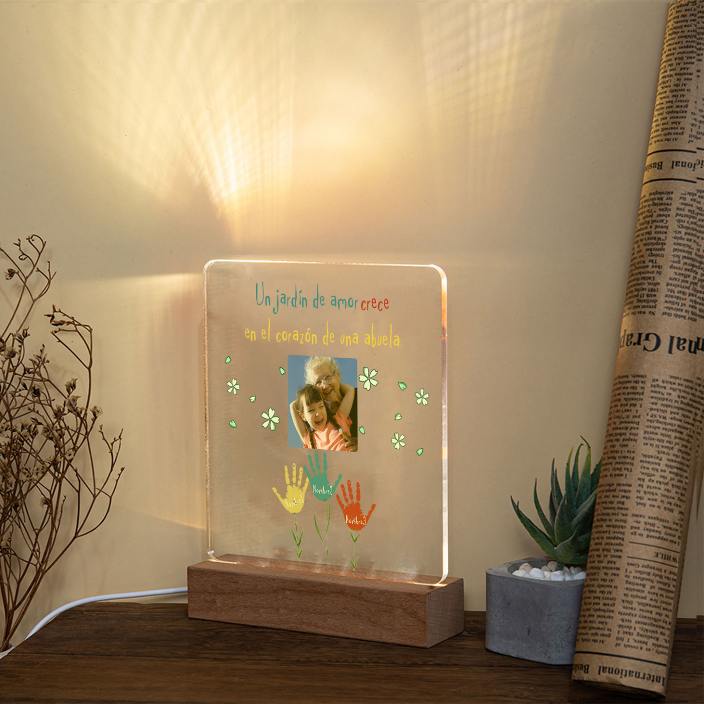 Lámpara de noche LED huella de mano foto cariñosa con 1 texto y 3 nombres personalizados