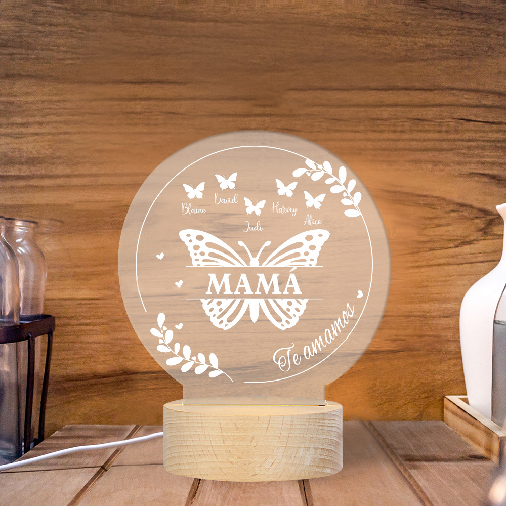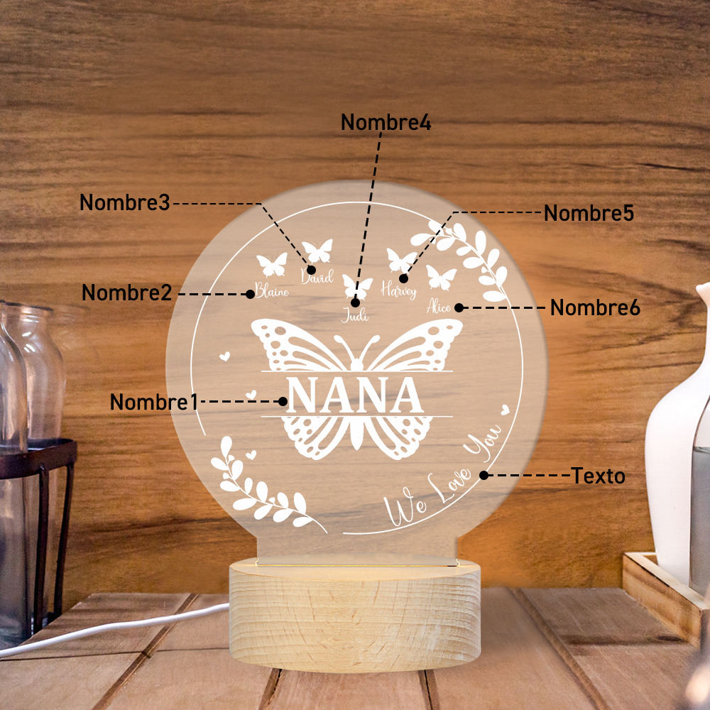 Lámpara de noche LED Mariposas 1 texto y 6 nombres personalizados