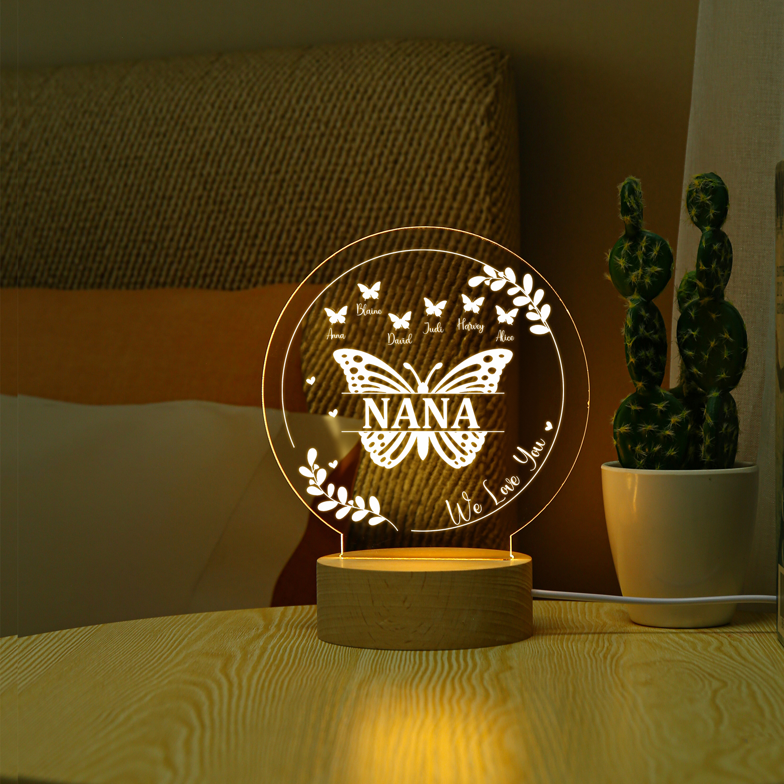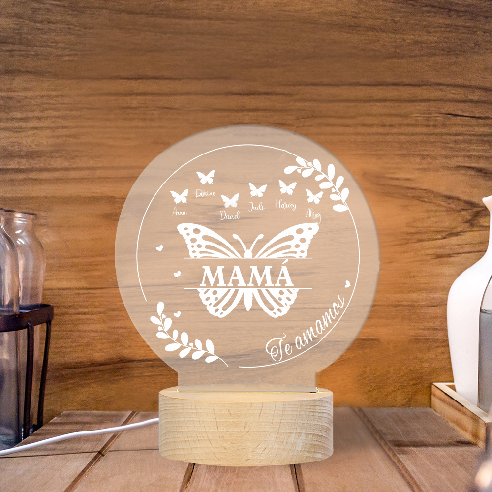 Lámpara de noche LED Mariposas 1 texto y 7 nombres personalizados