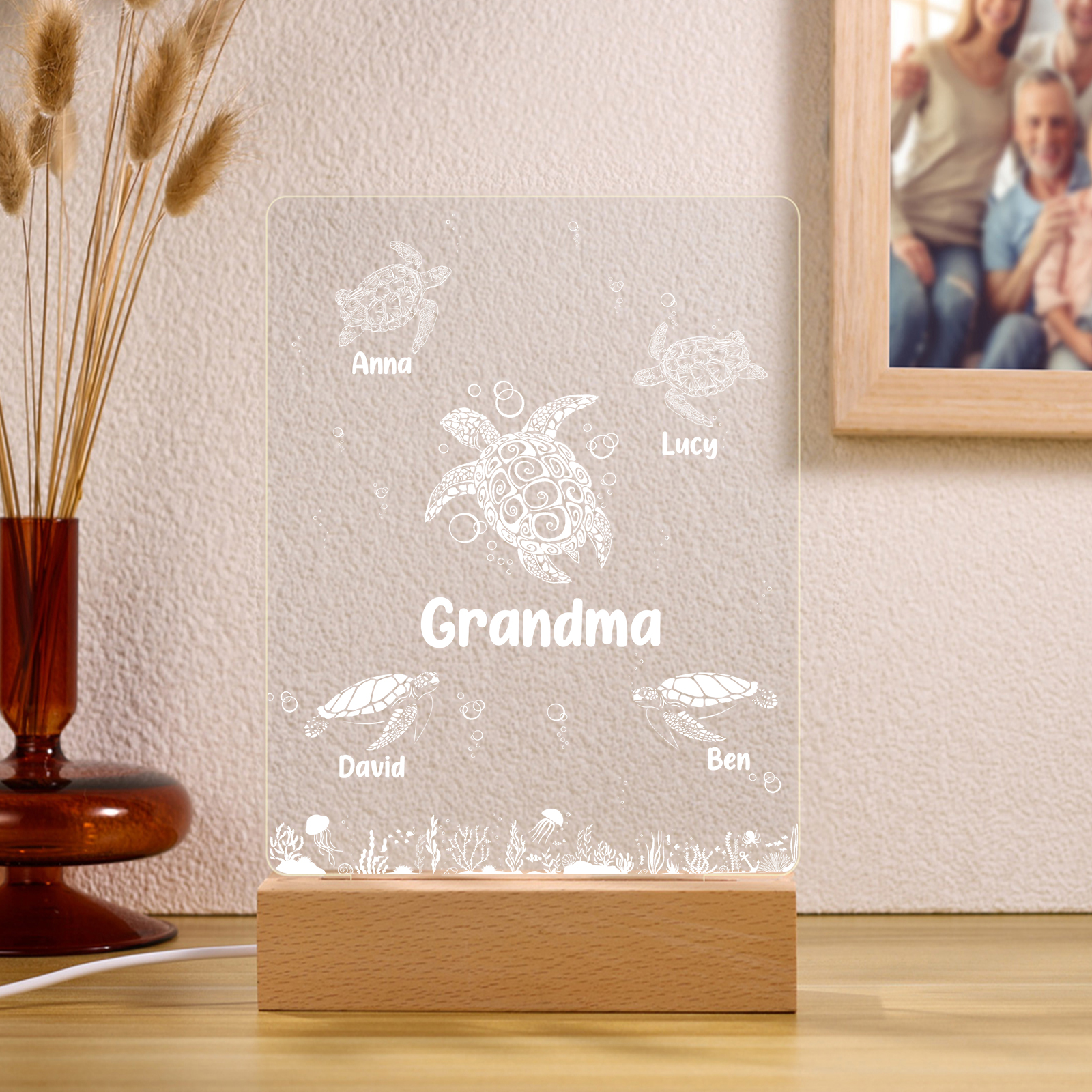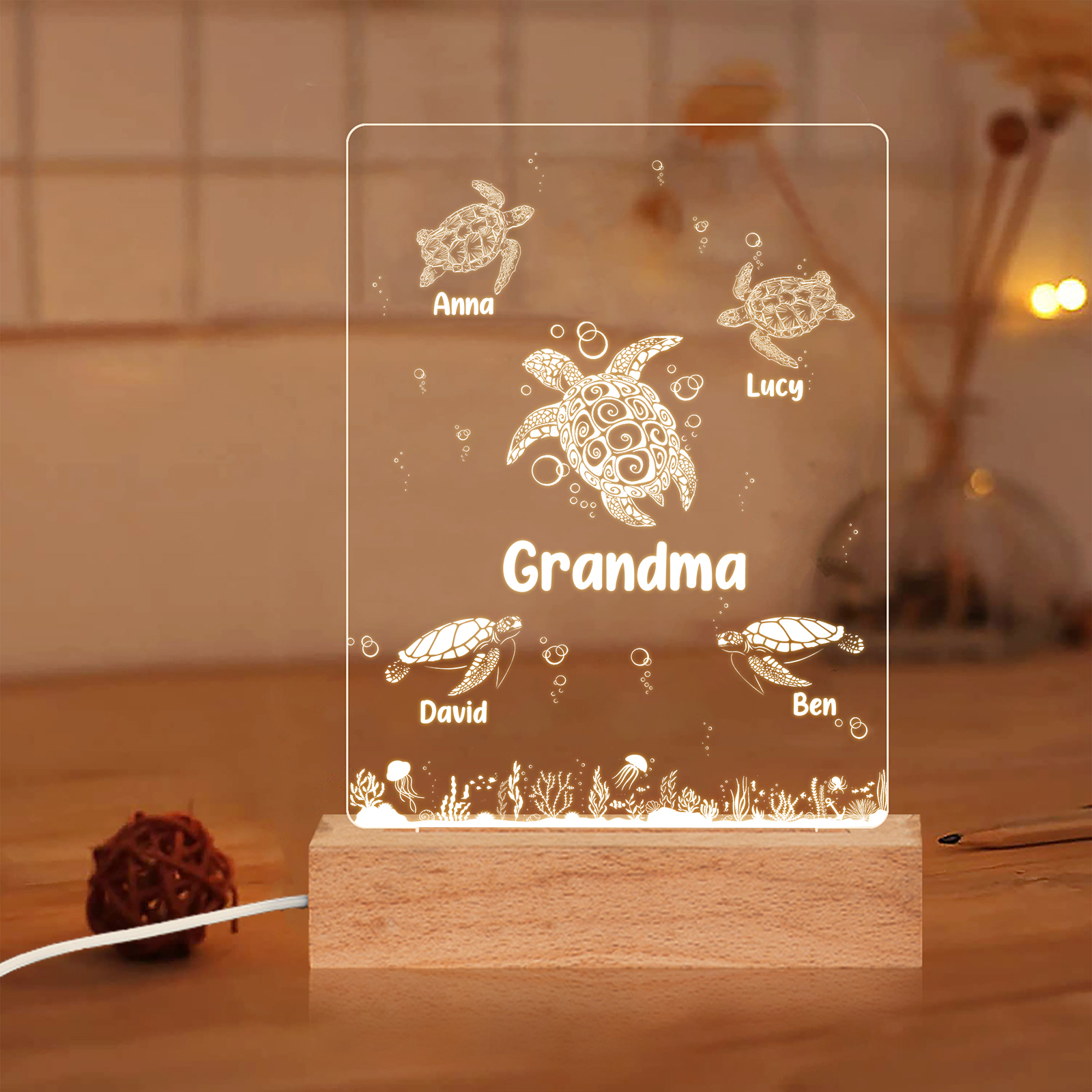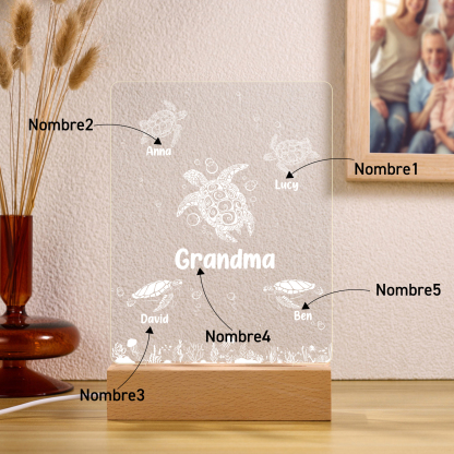 Lámpara de noche LED tortuga marina con 5 nombres personalizados