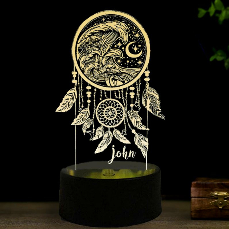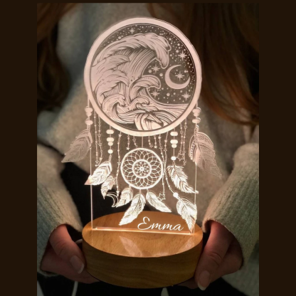 Una hermosa luz nocturna atrapasueños que cambia de color con cualquier nombre personalizado grabado.