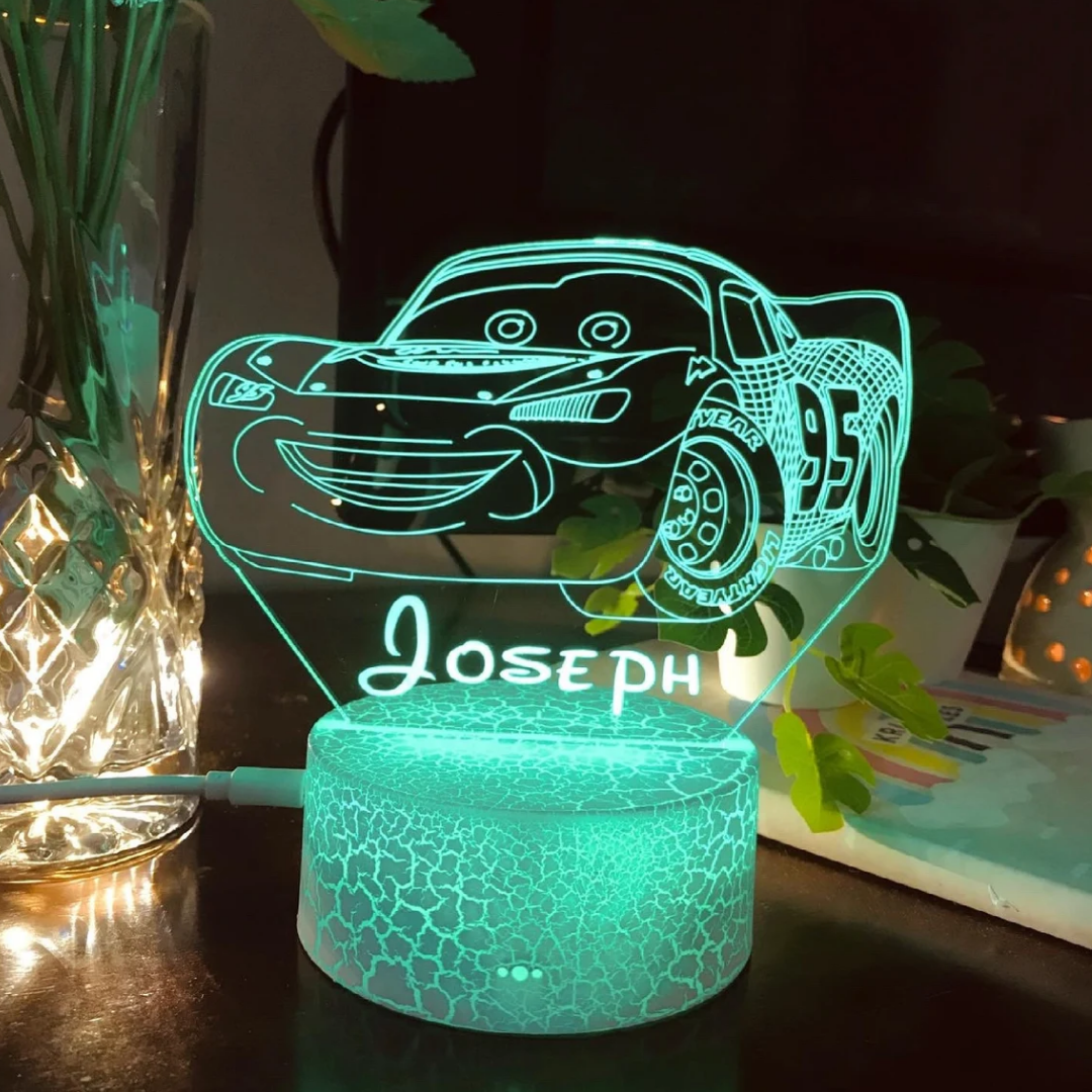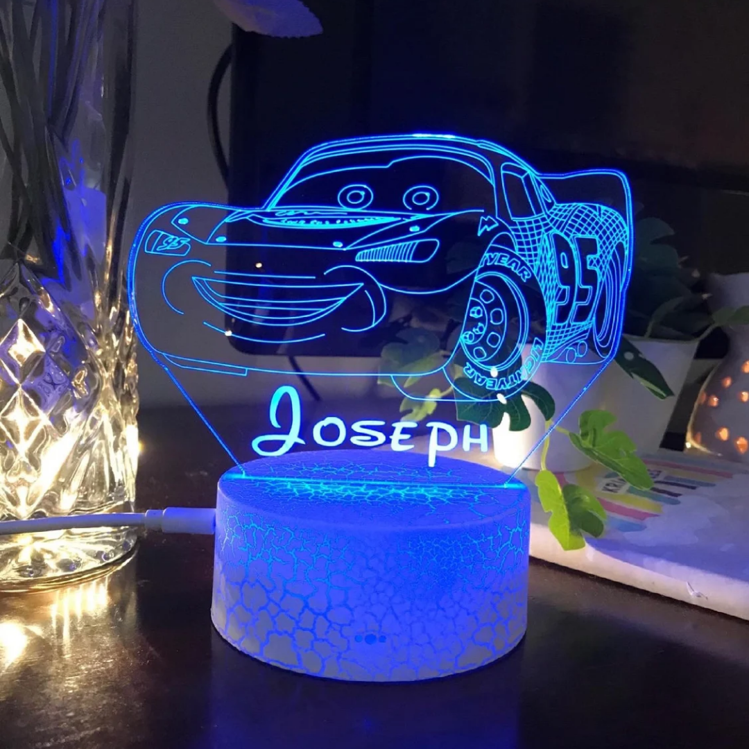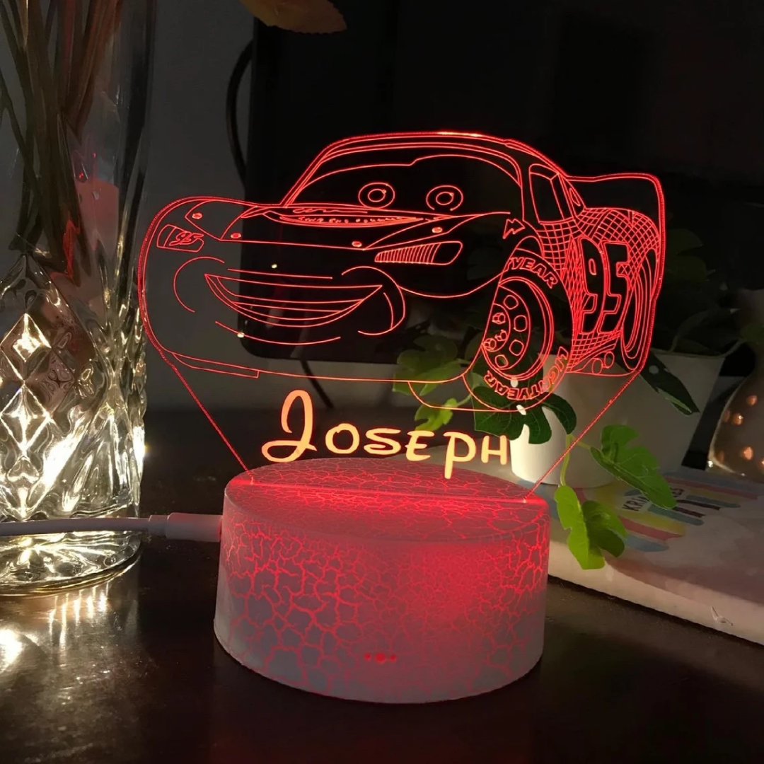 Lámpara 3D Ilusión Luz de noche LED para coche Luces de colores personalizadas 1 nombre