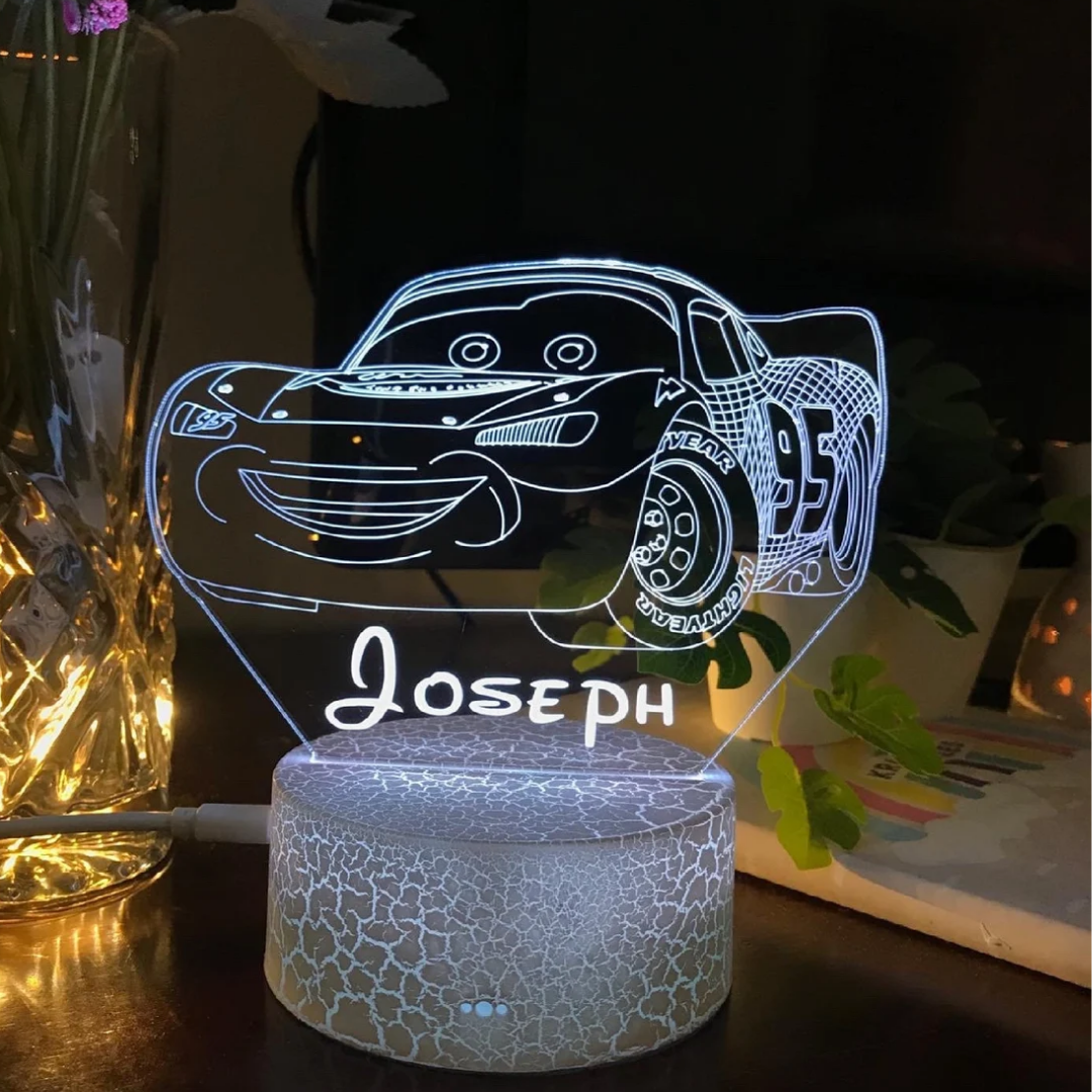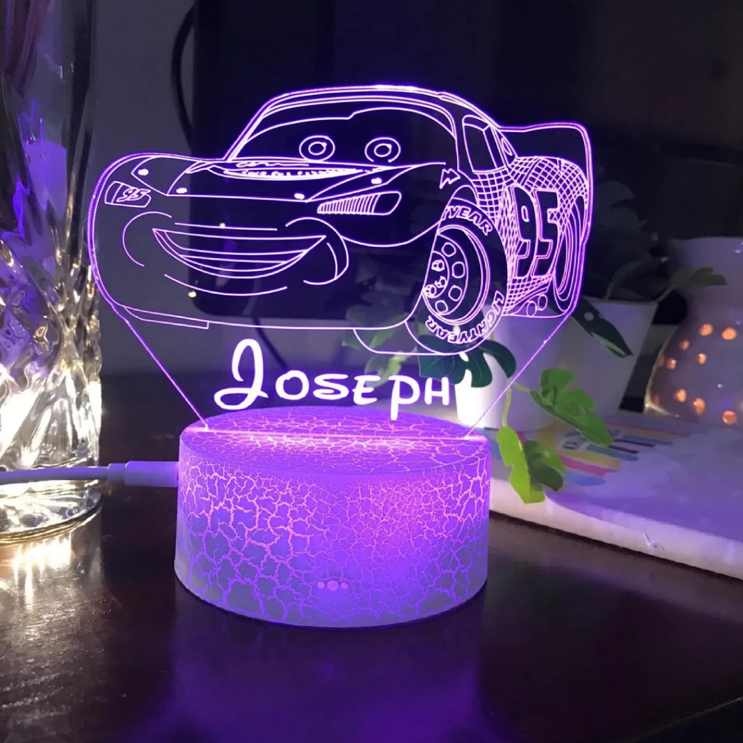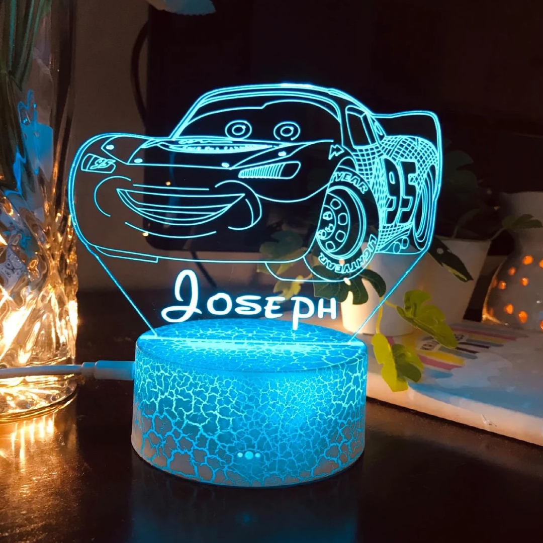 Lámpara 3D Ilusión Luz de noche LED para coche Luces de colores personalizadas 1 nombre