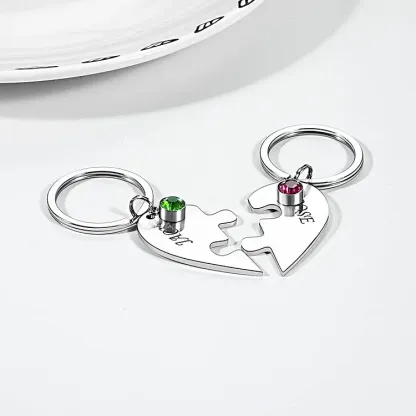 Llavero 2PCS de corazón para pareja con 2 nombres y 2 piedras de nacimiento personalizados