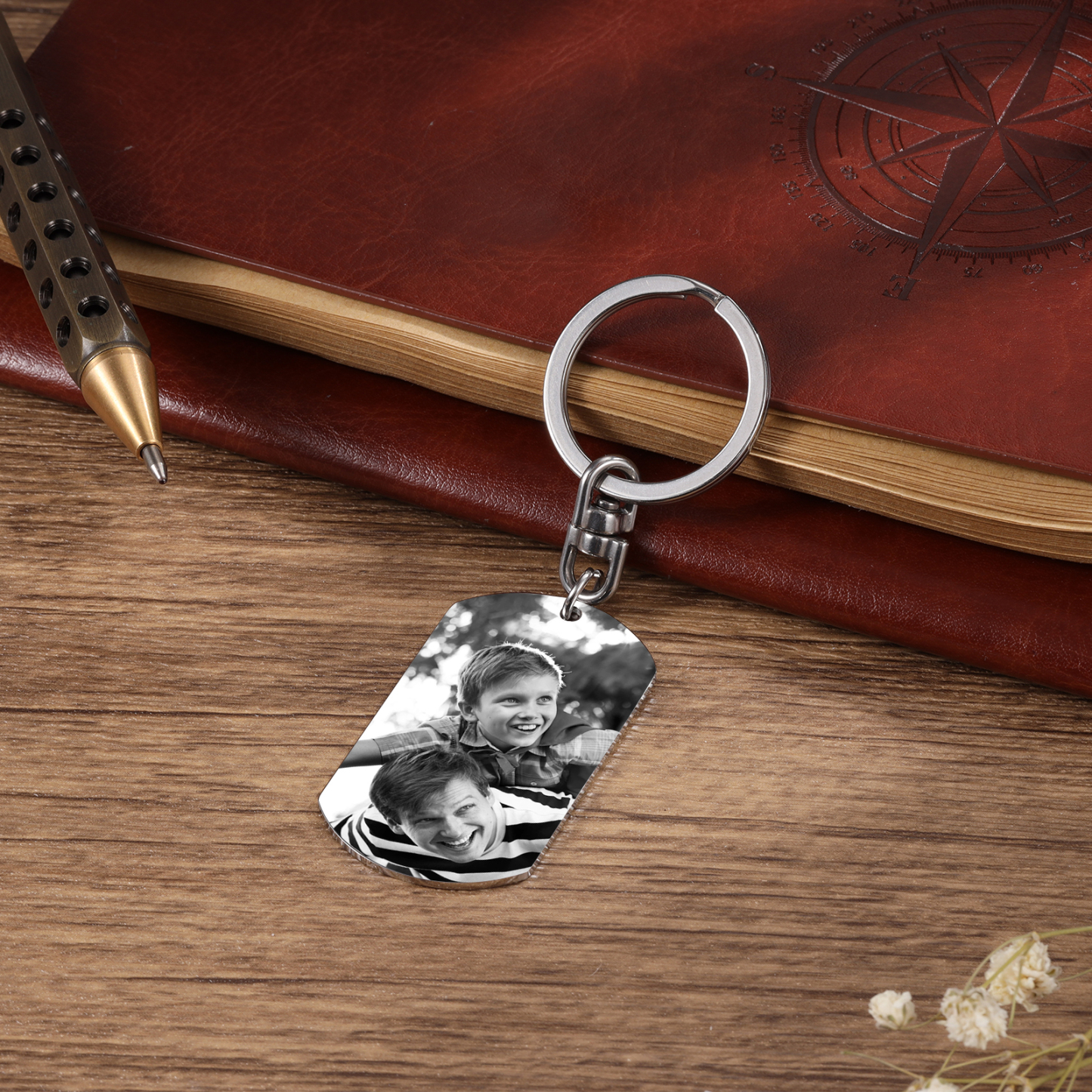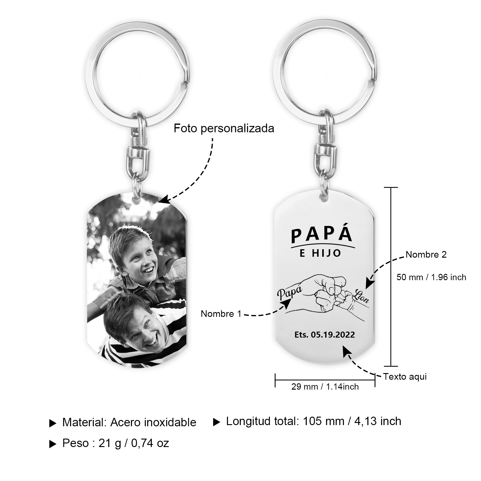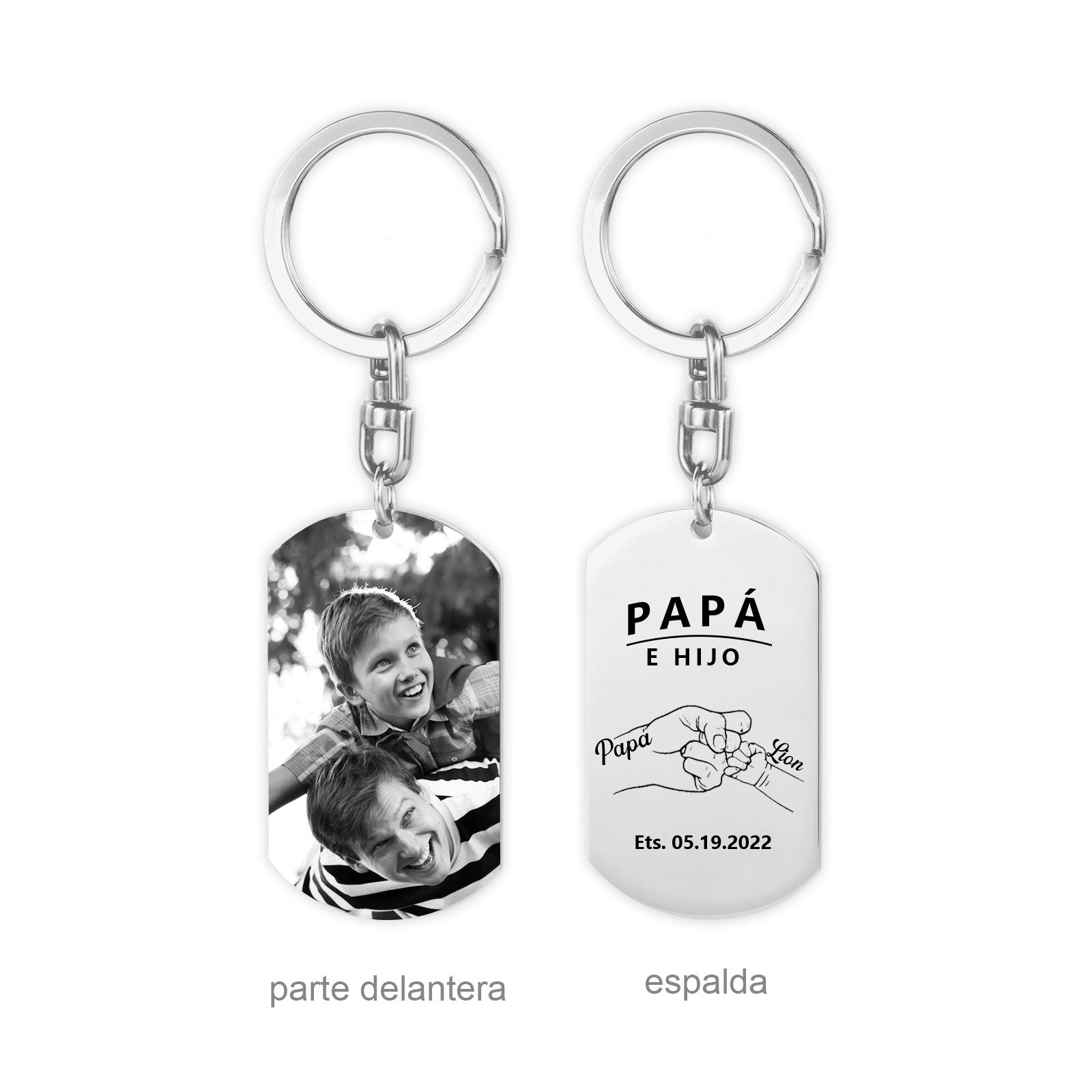 Llavero papá e hijo personalizado con 1 foto, 2 nombres y 1 texto