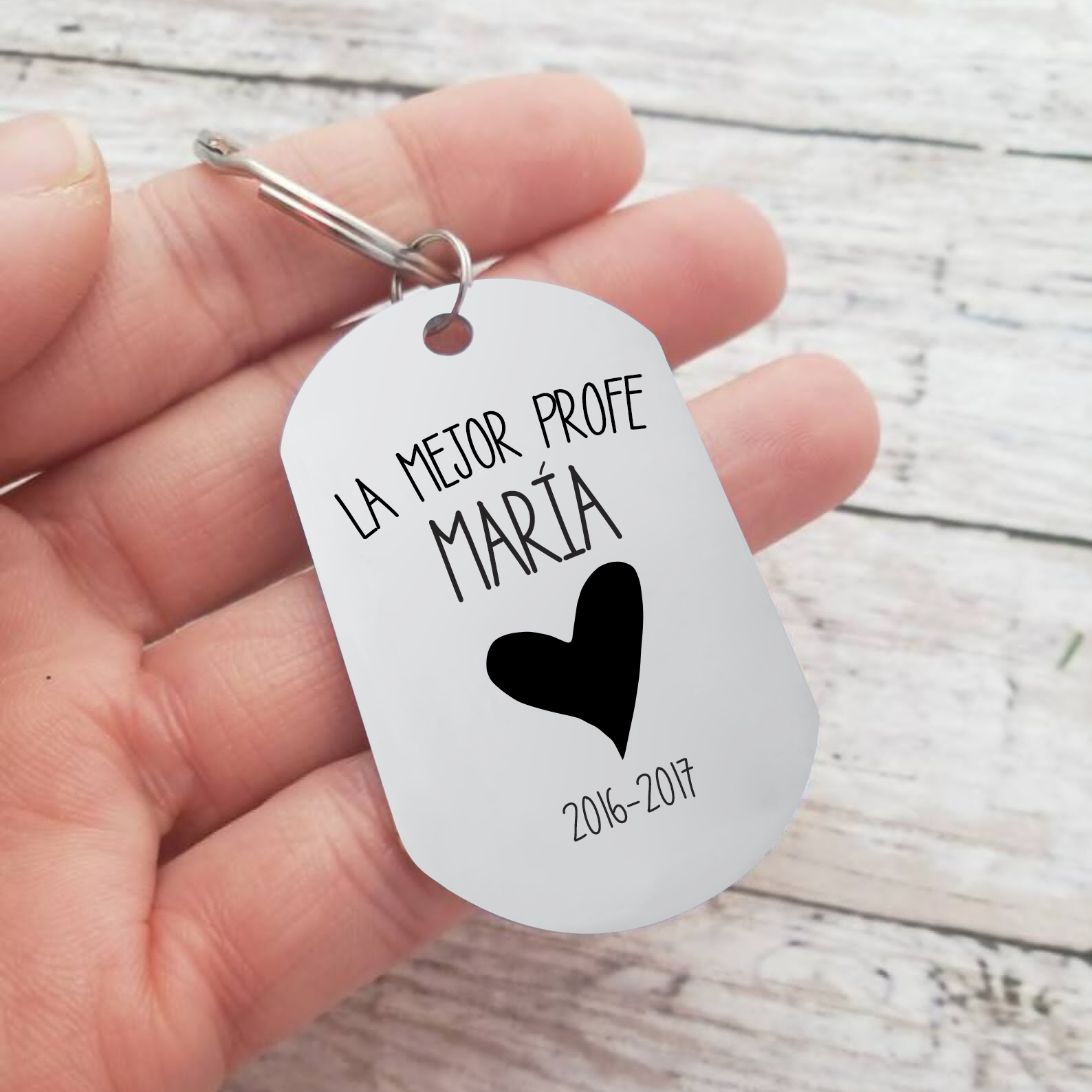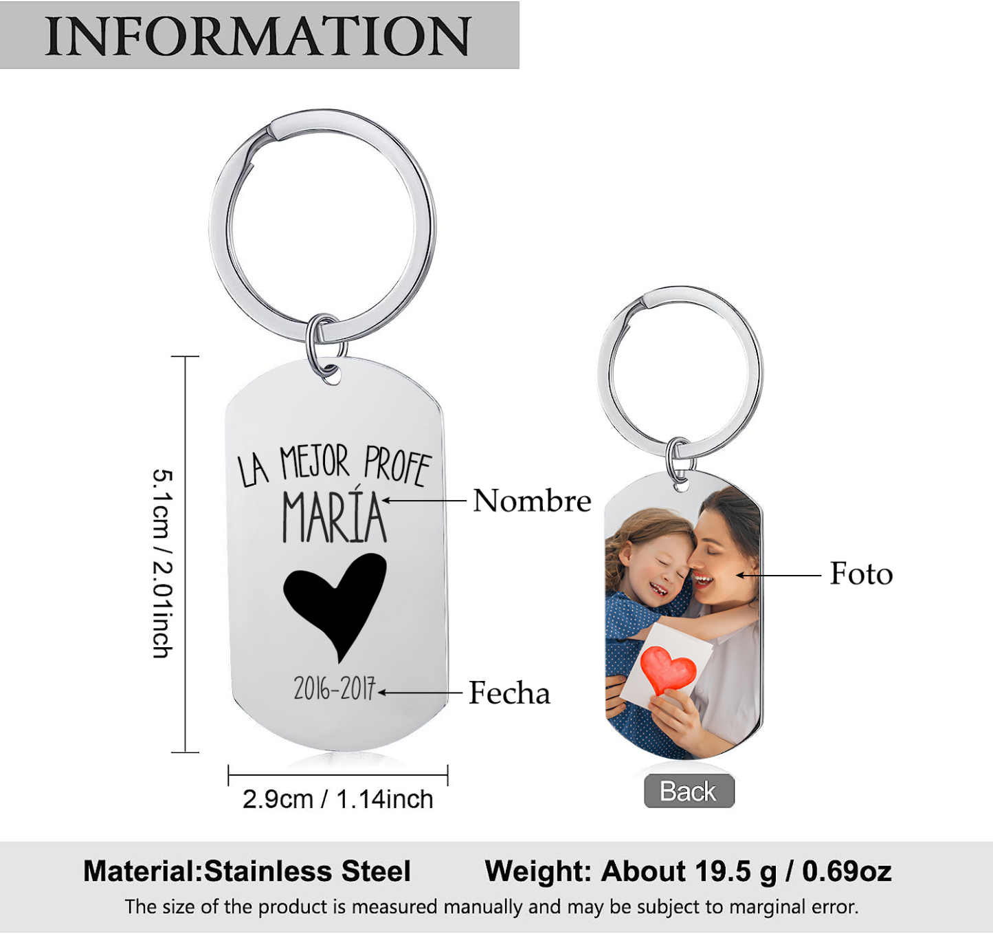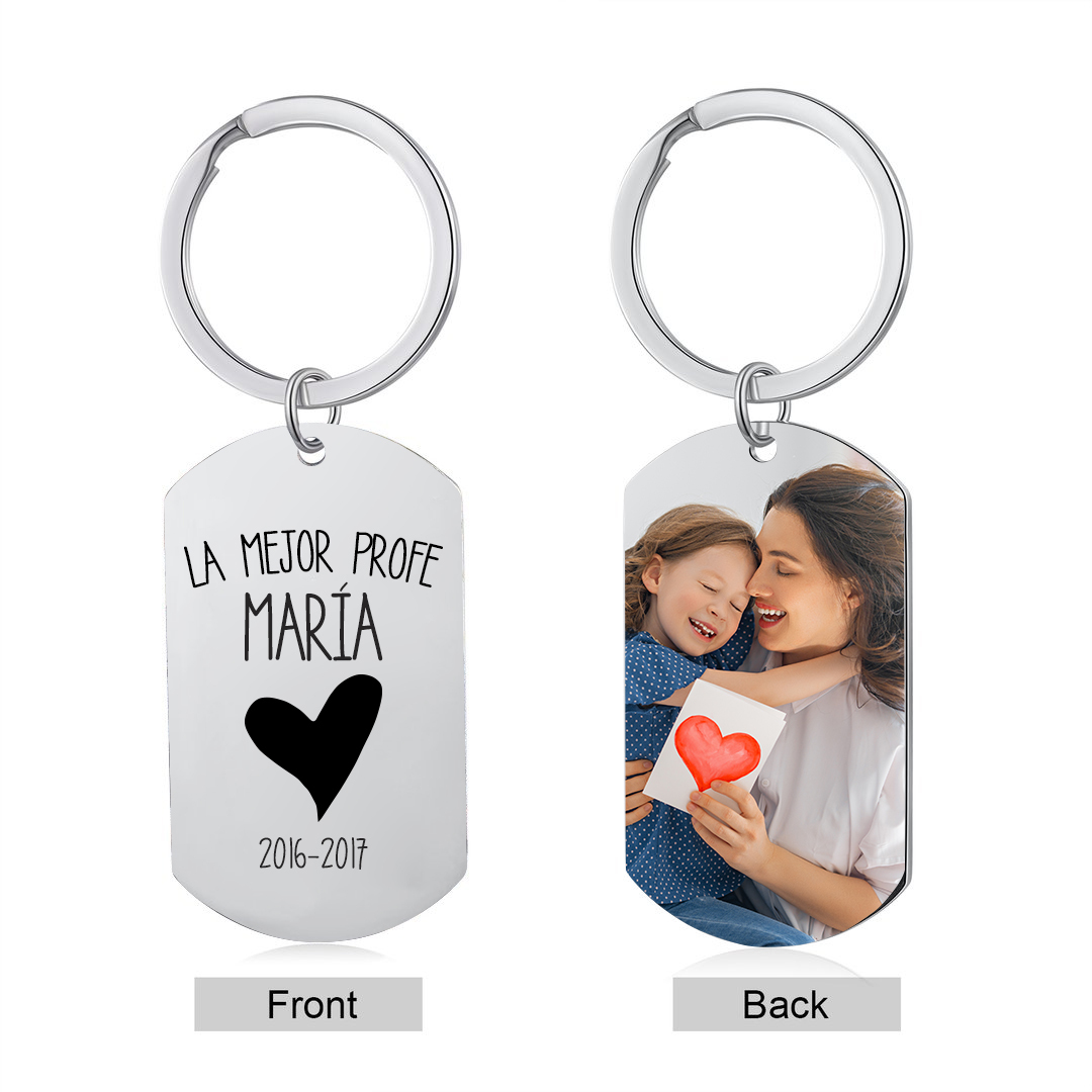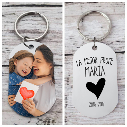 Llavero personalizado con el nombre del profe, 1 foto y 1 texto