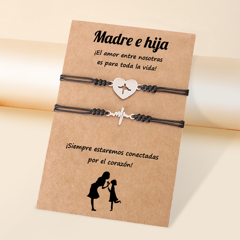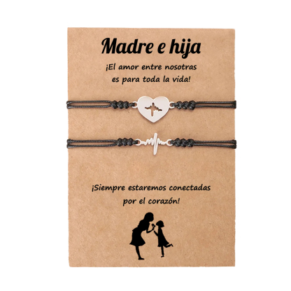 Madre e hija-Pulsera de corazón y palpitación con tarjeta amorosa