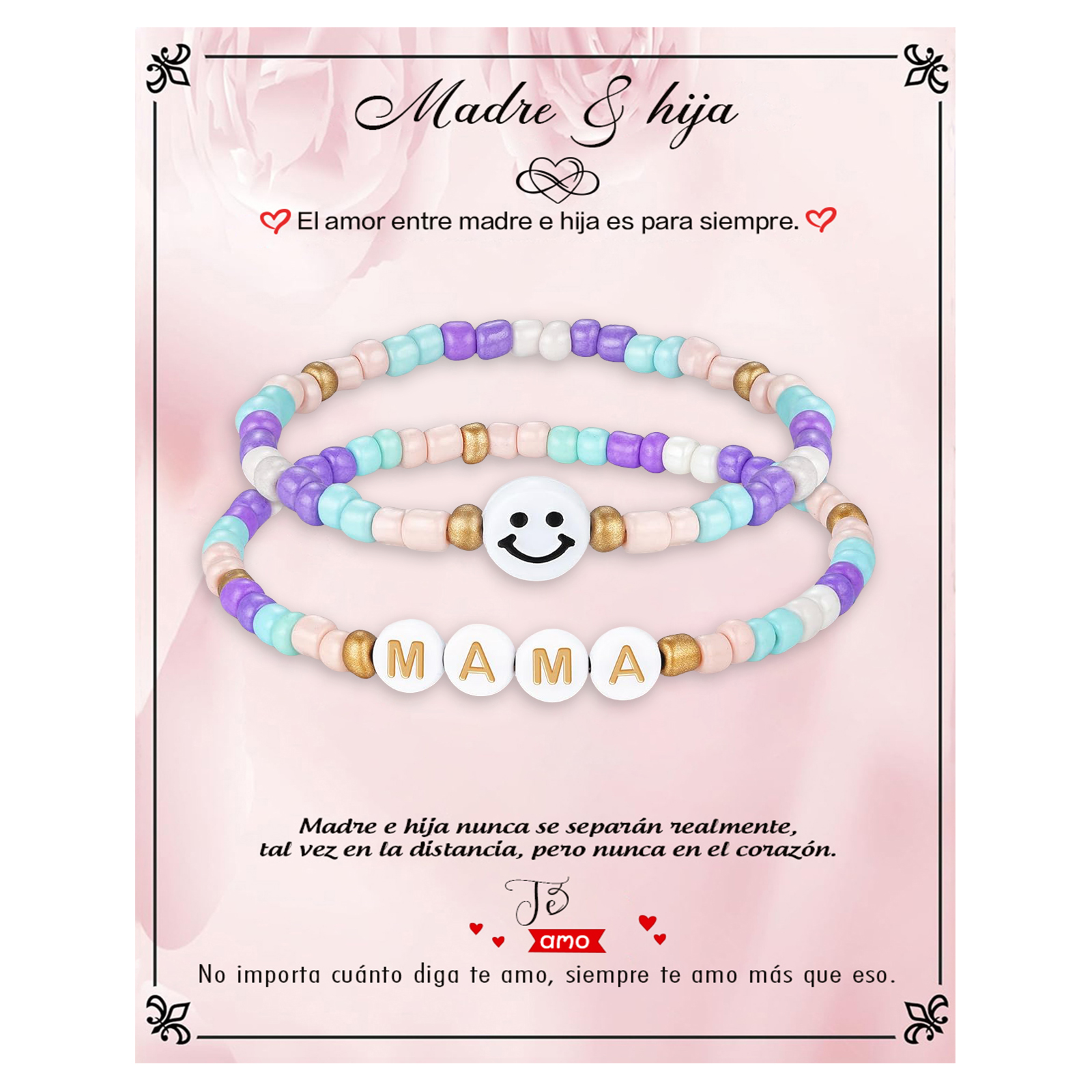 Madre e hija-Unidad de pulseras de corazón con tarjeta amorosa