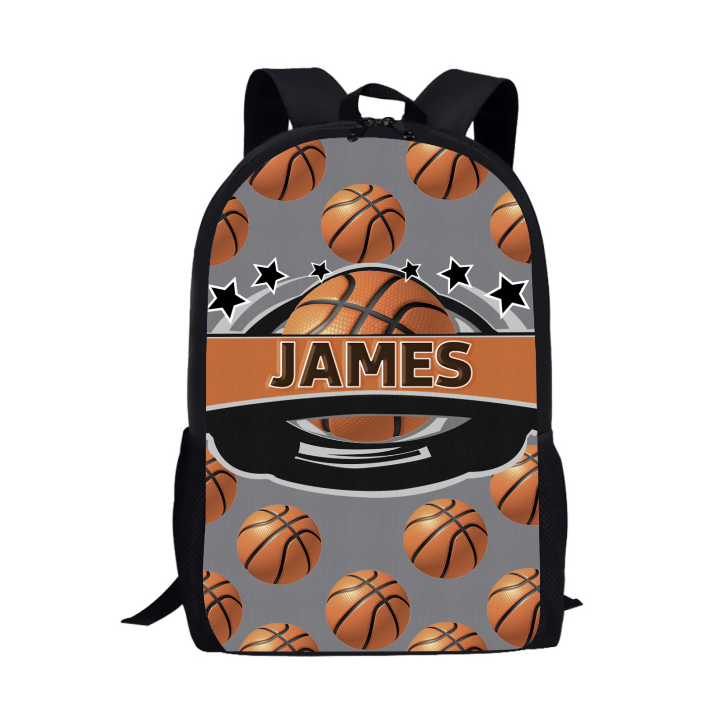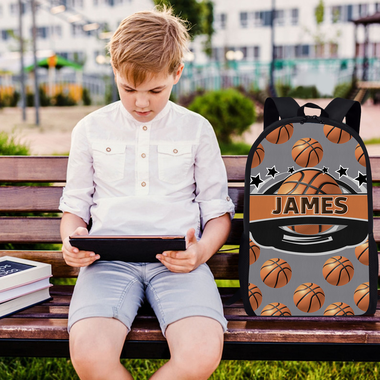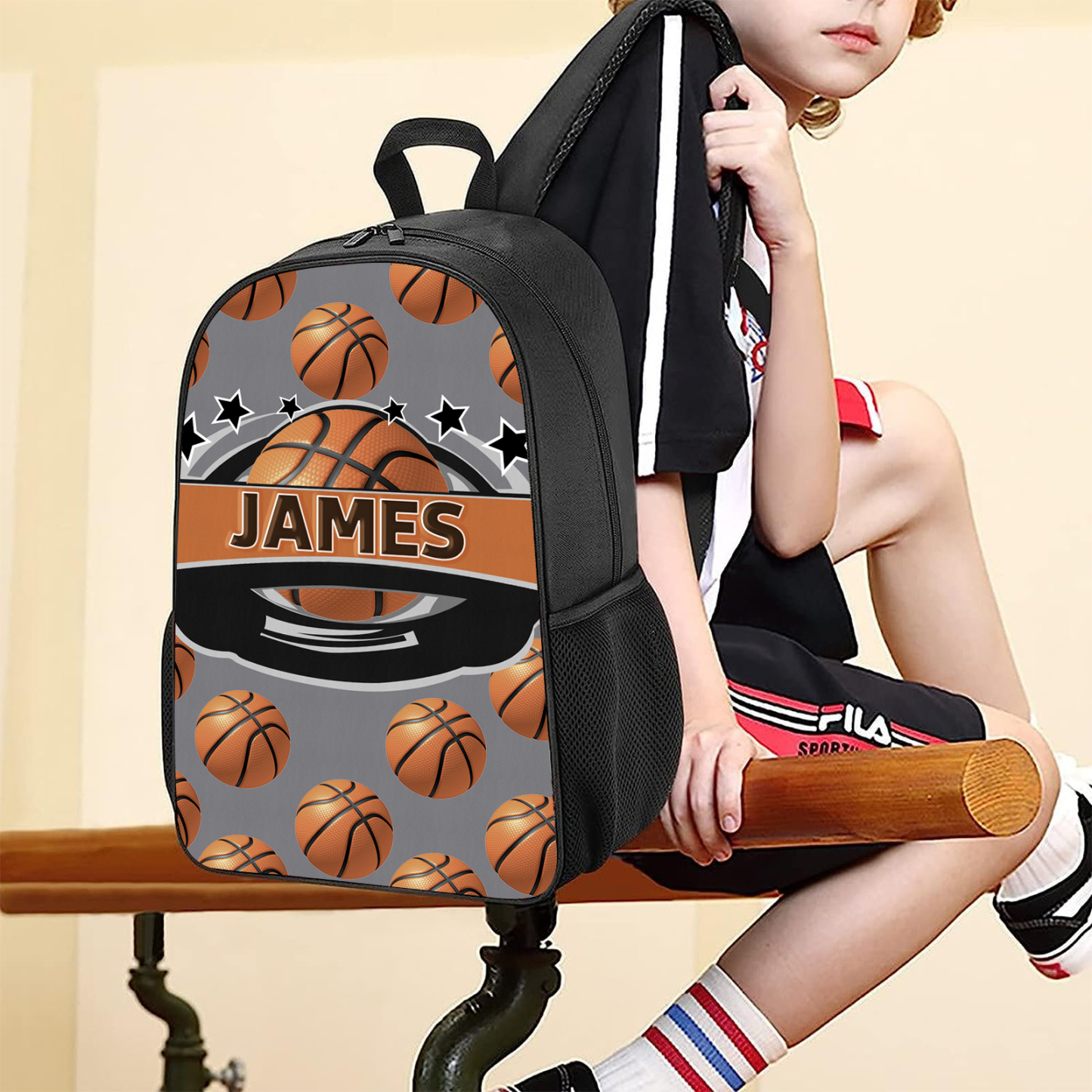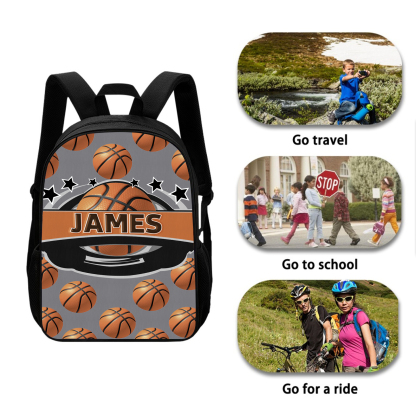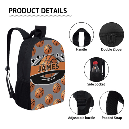 Mochilas-mochila escolar para los niños con un dibujo de baloncesto con nombre personalizado