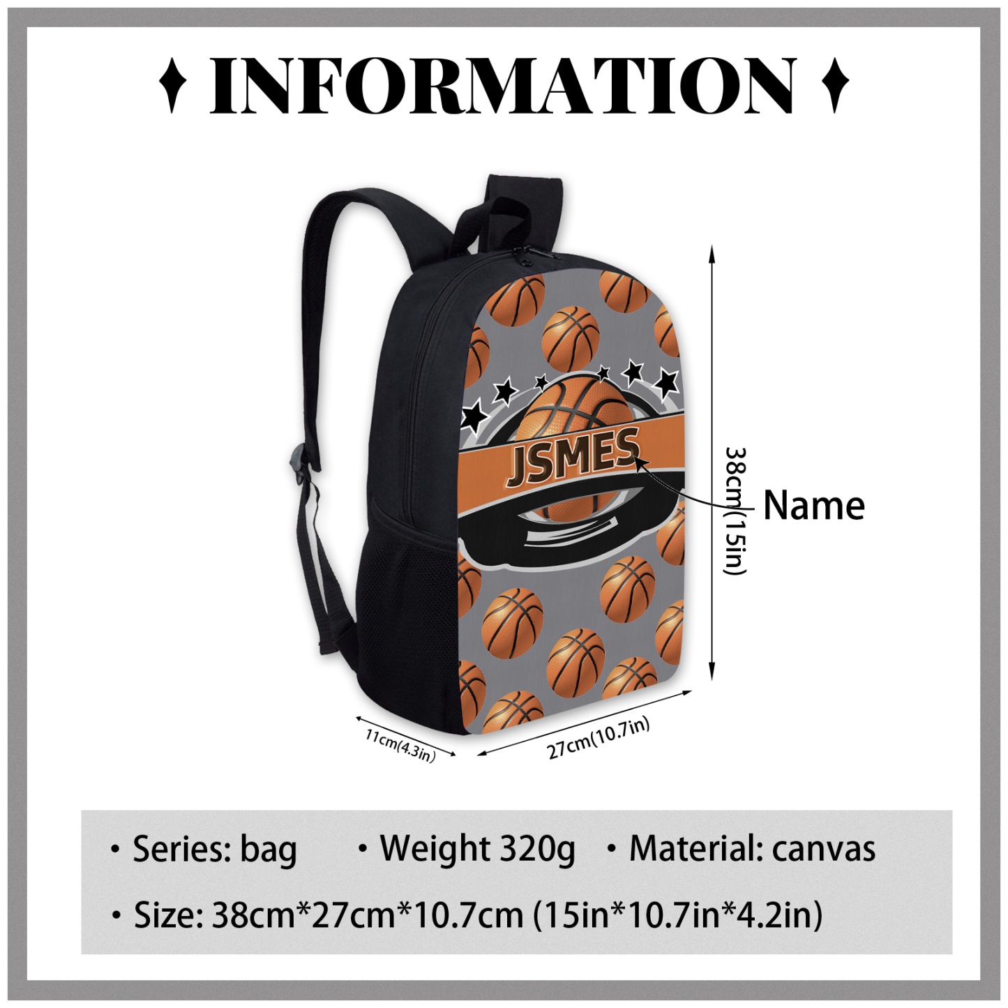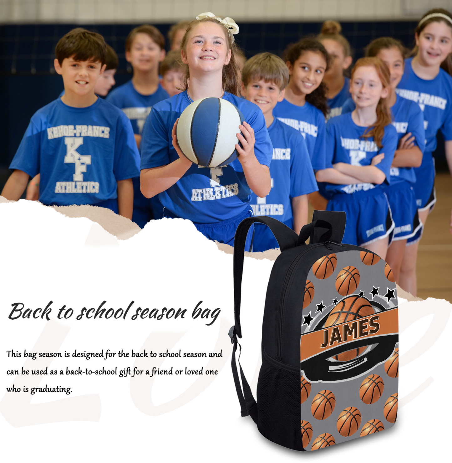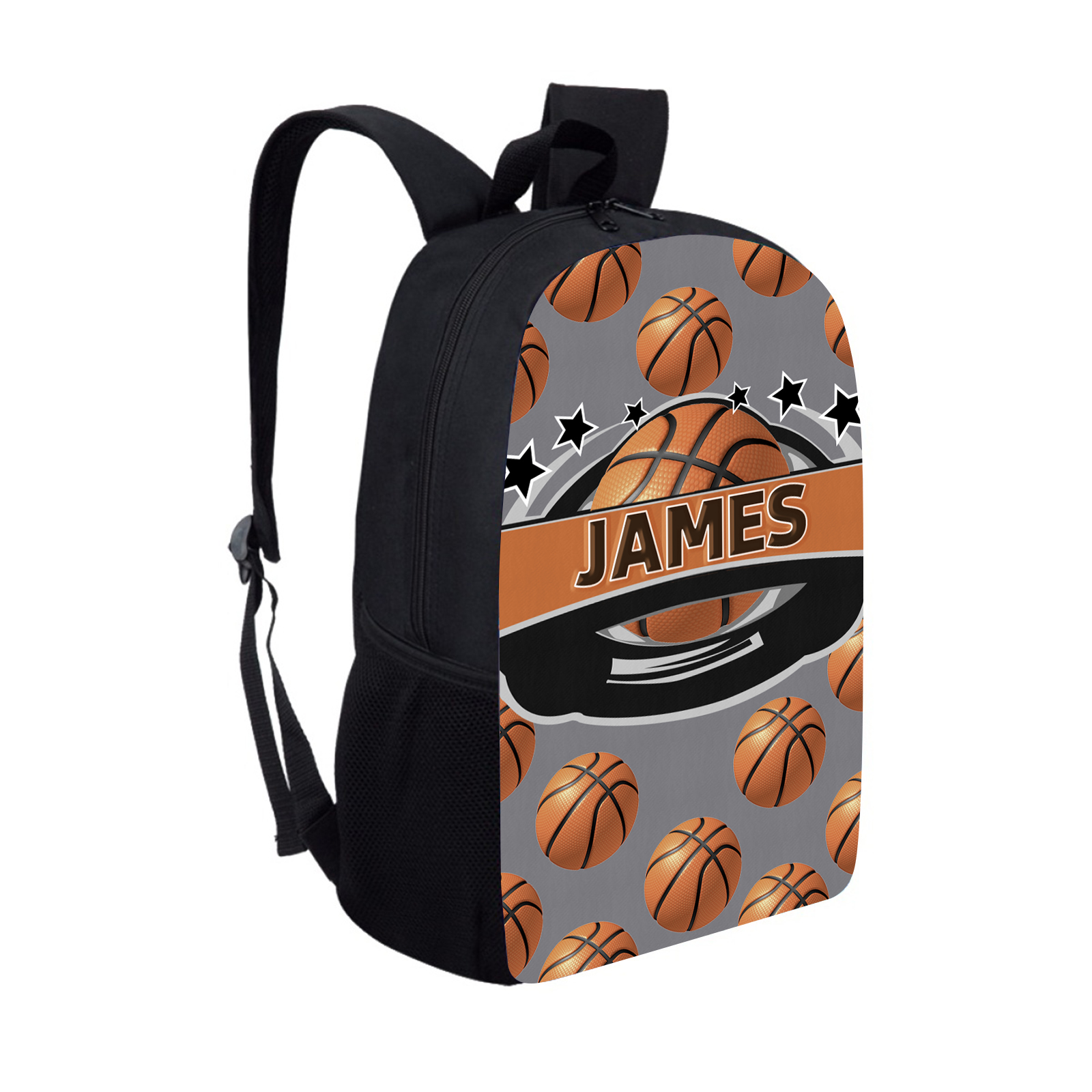 Mochilas-mochila escolar para los niños con un dibujo de baloncesto con nombre personalizado