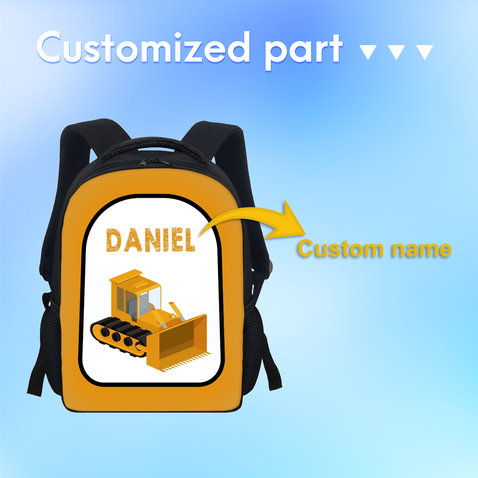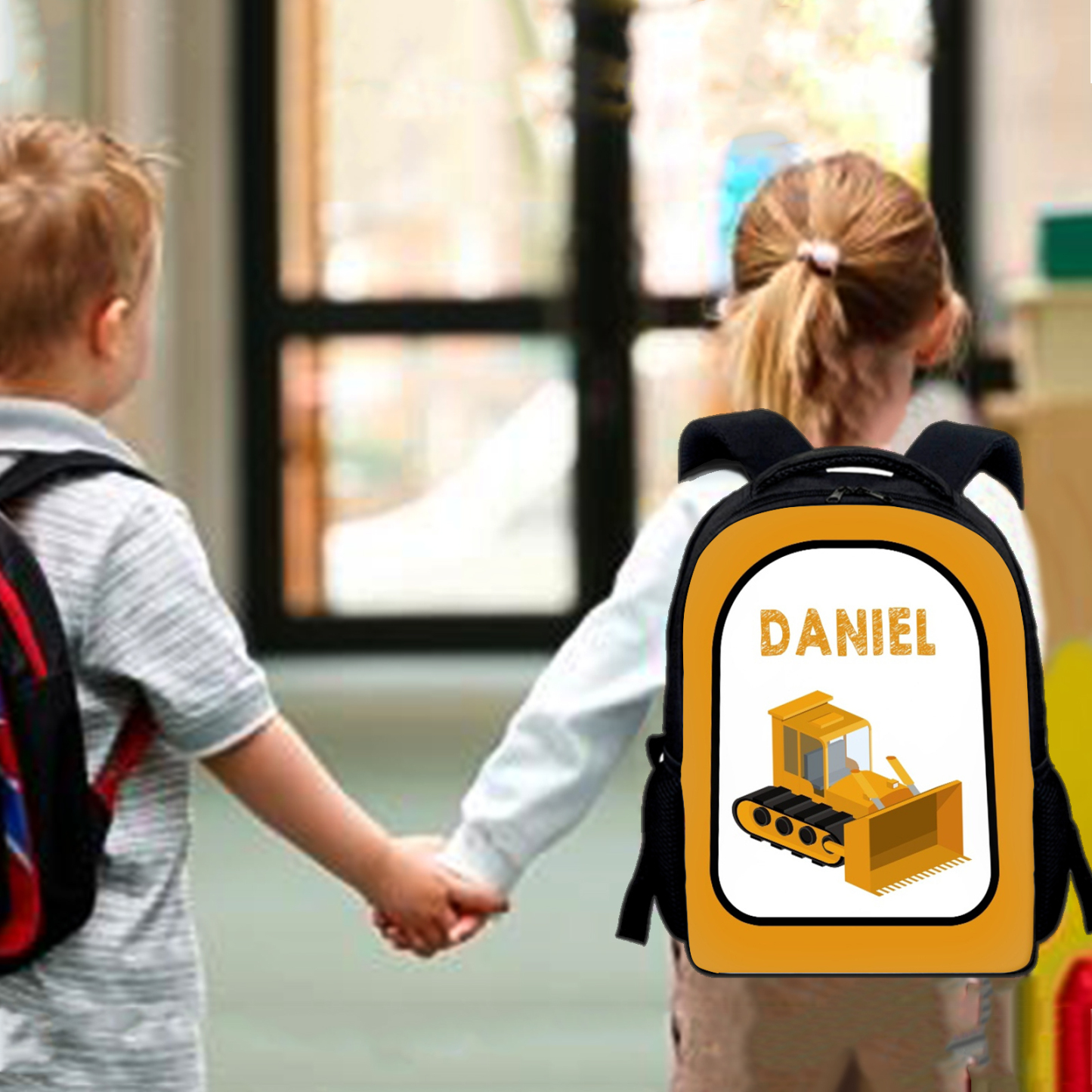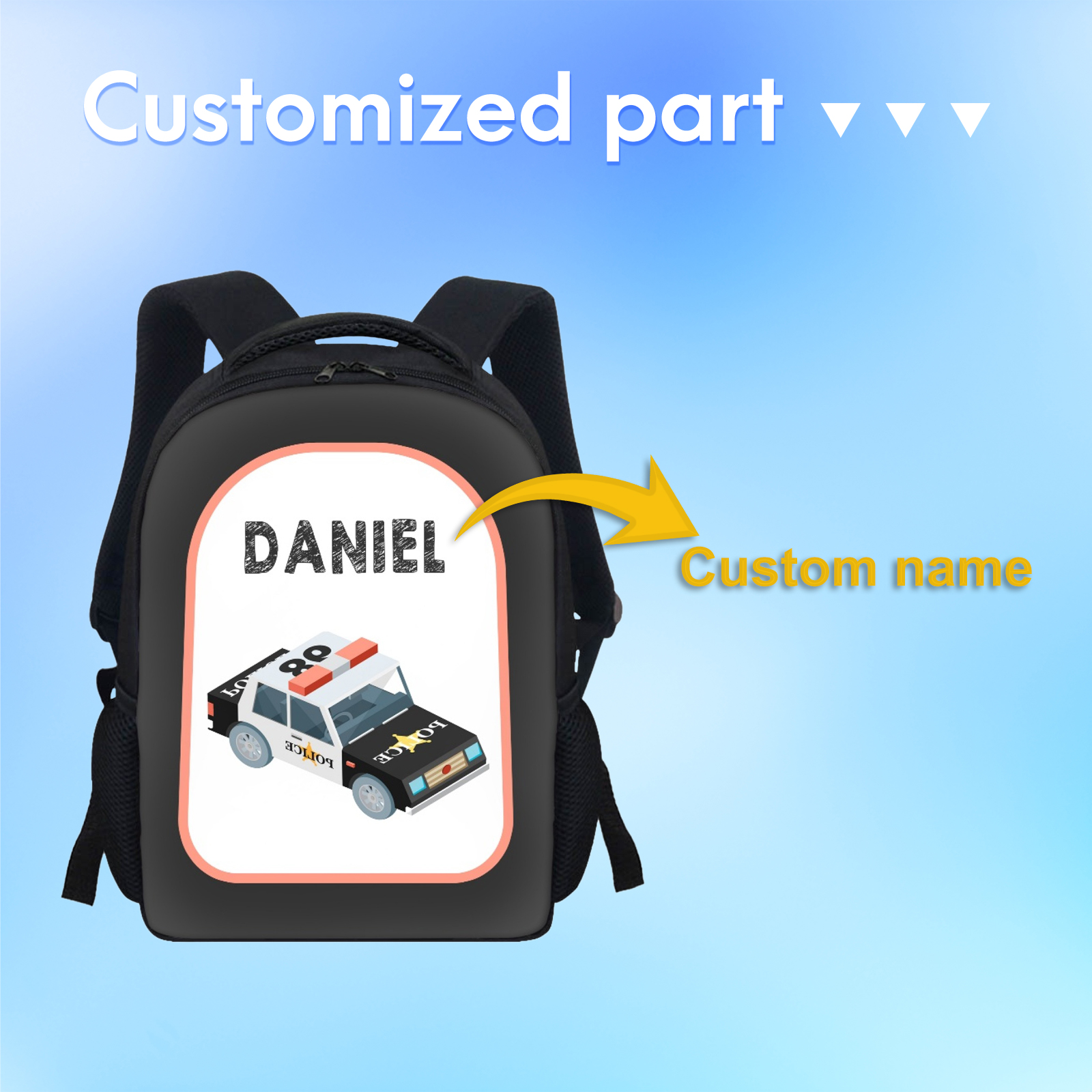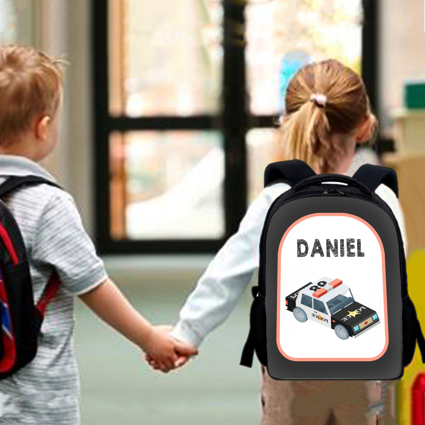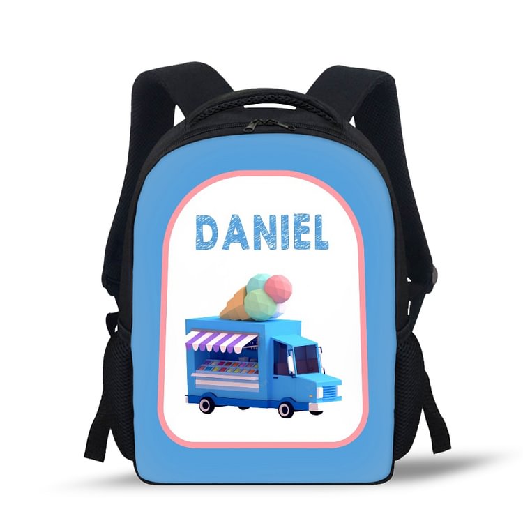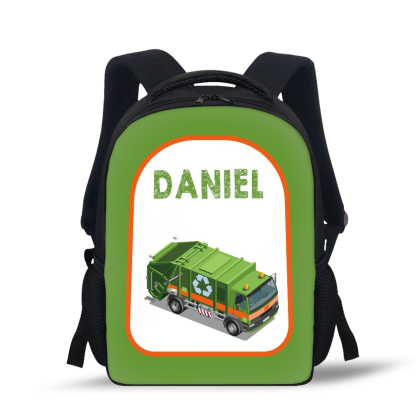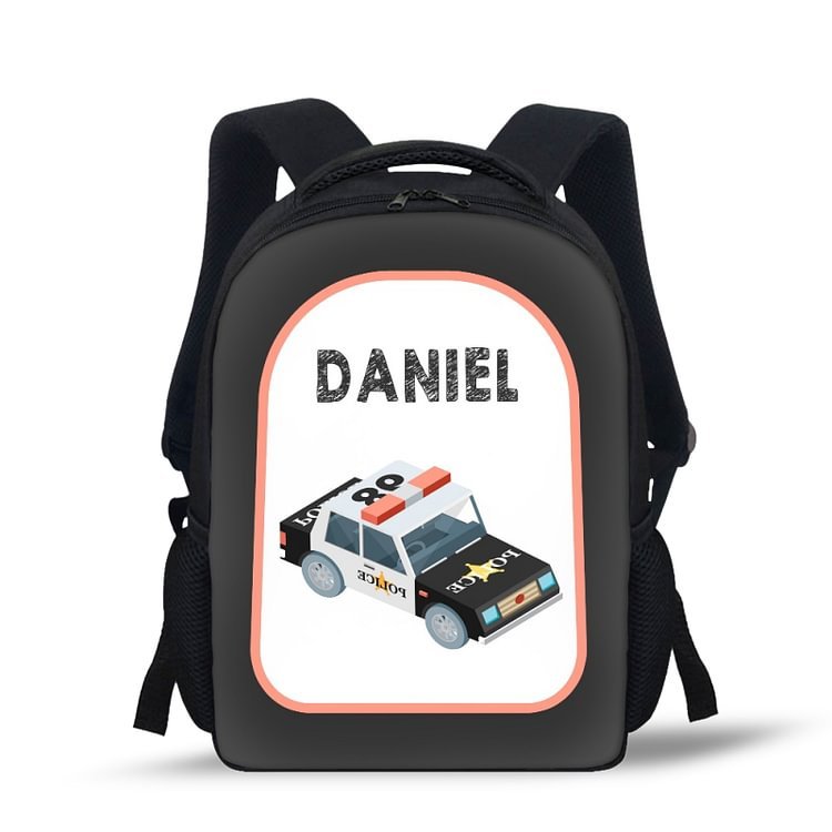 Mochilas-mochila escolar para los niños con un dibujo de coche con nombre personalizado
