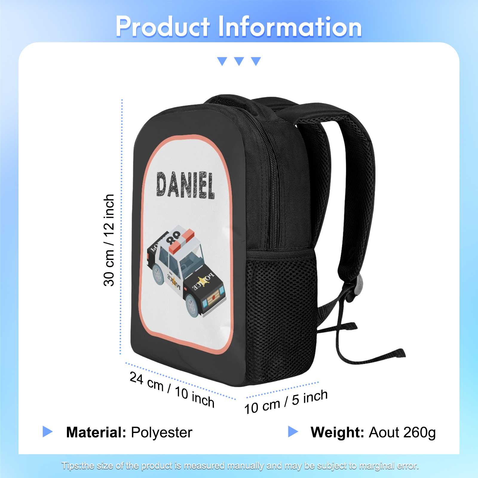 Esta mochila es colorida e impresa con diferentes tipos de coche(cars) para que sea muy atractiva para los niños. También se puede imprimir el nombre de los niños, que es muy personalizado y puede evitar pérdidas.