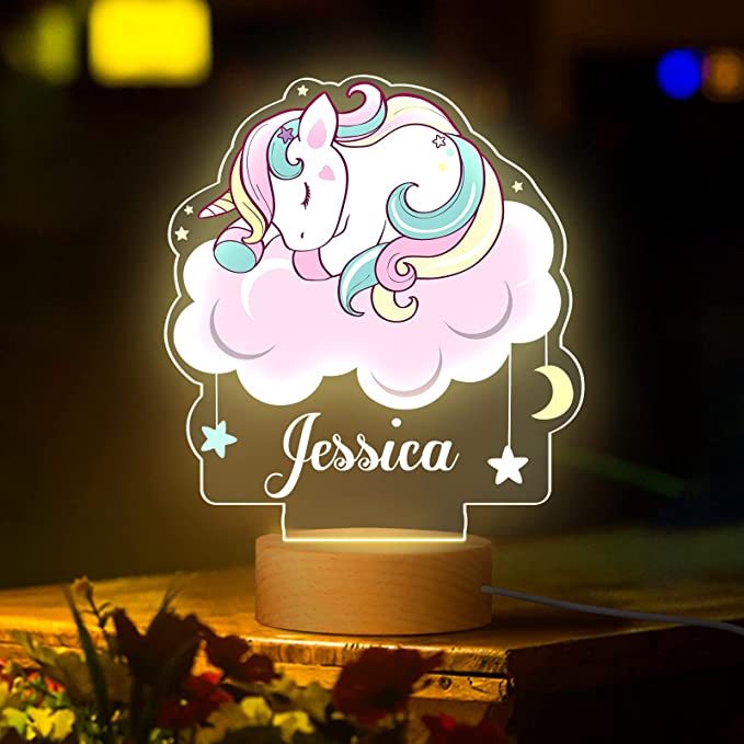 Nombre Personalizado Lámpara Ilusión 3D Luz de Noche LED Unicornio