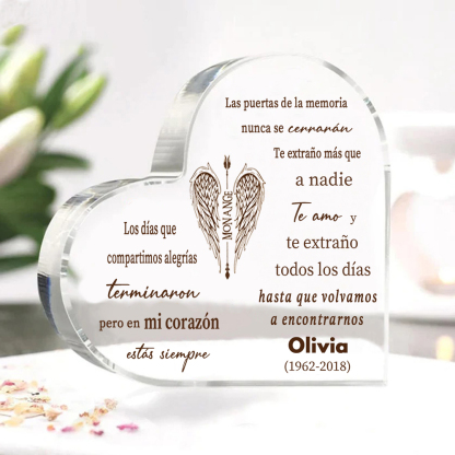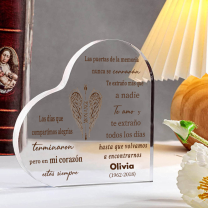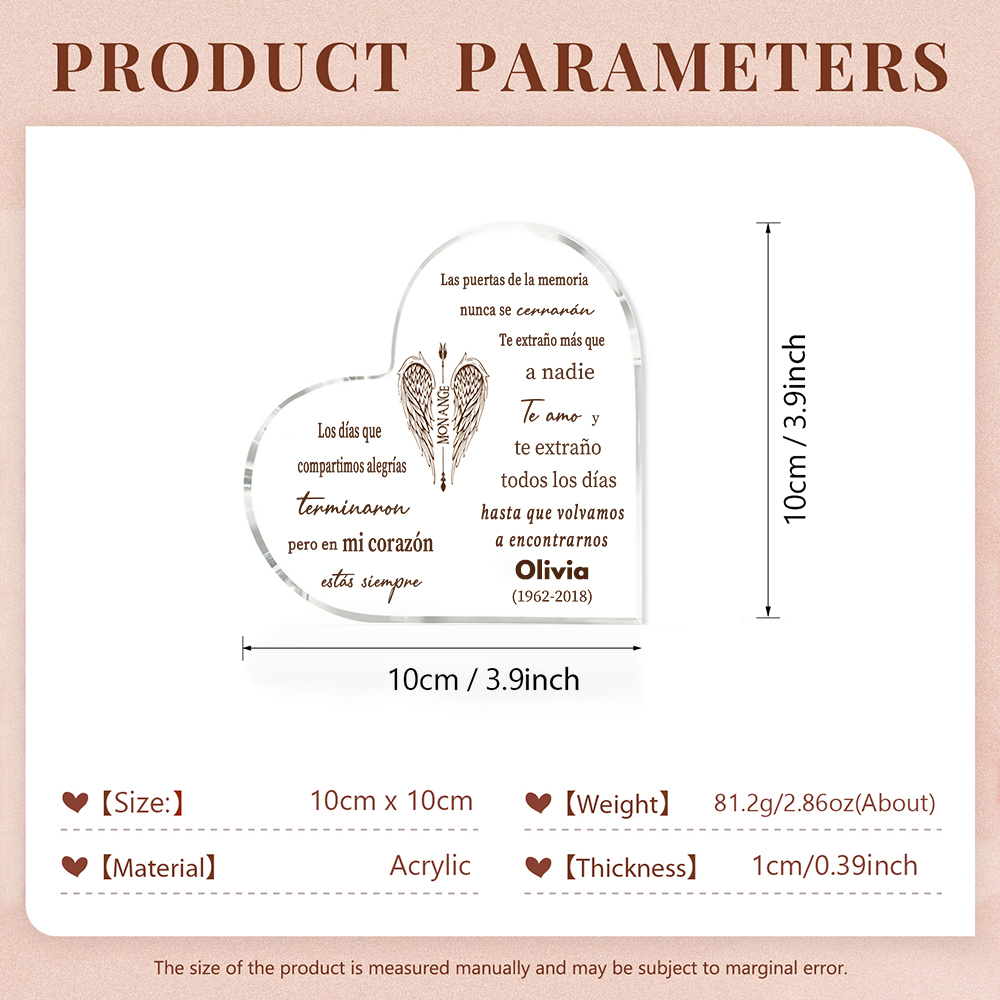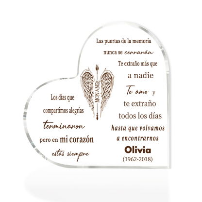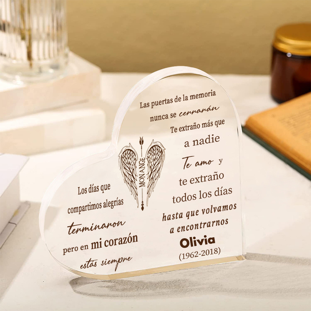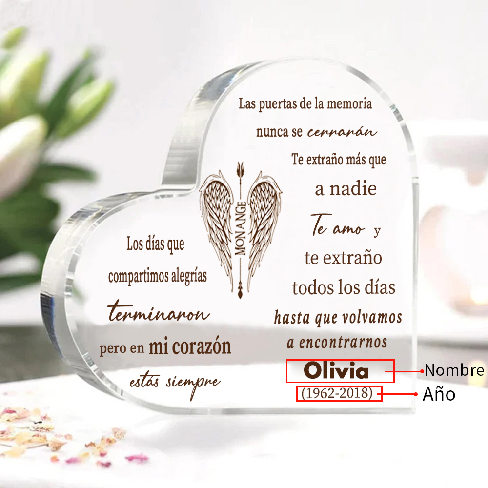 Placa de acrílico en forma de corazón con 1 texto y nombre personalizados para conmemoración