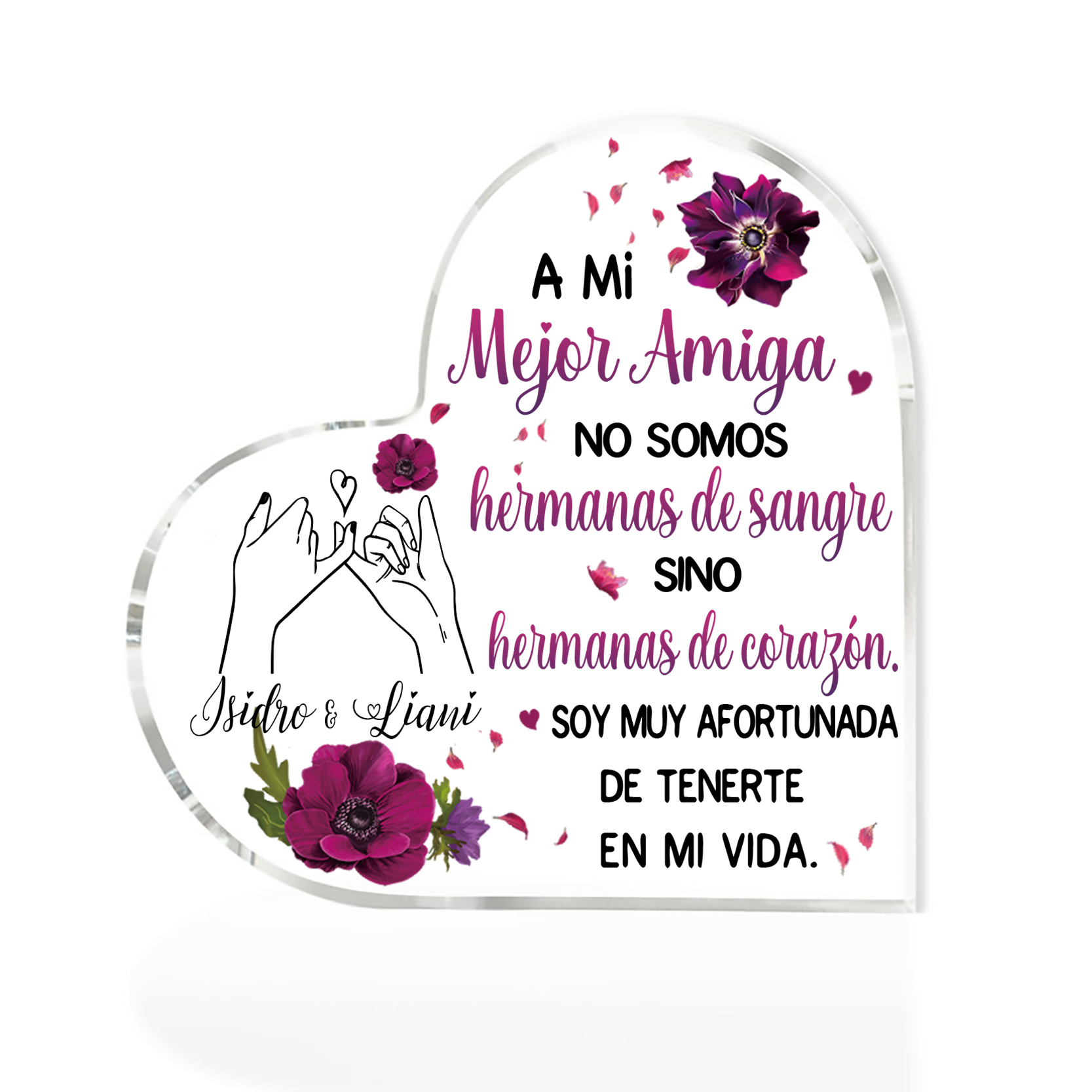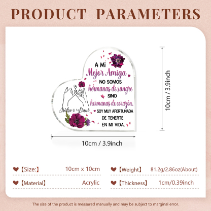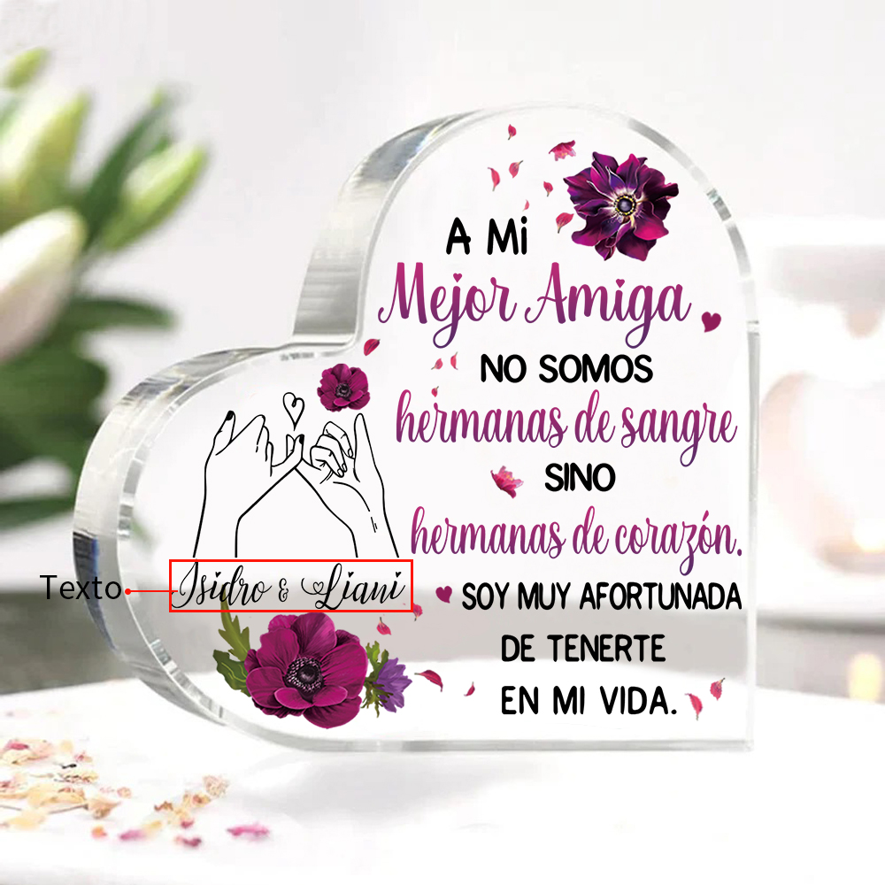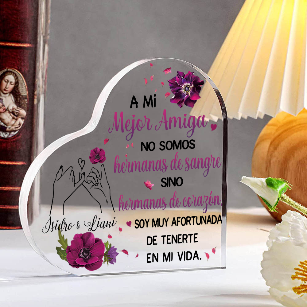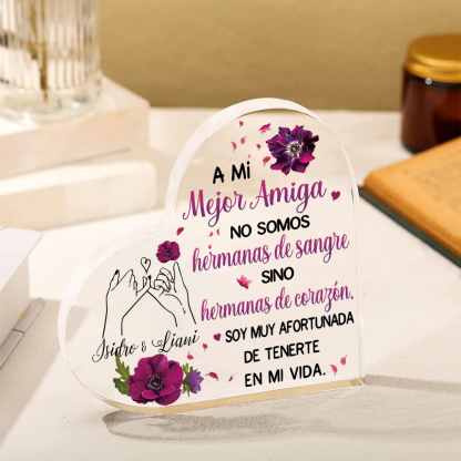 Placa de acrílico en forma de corazón para hermana/amiga con 1 texto personalizado
