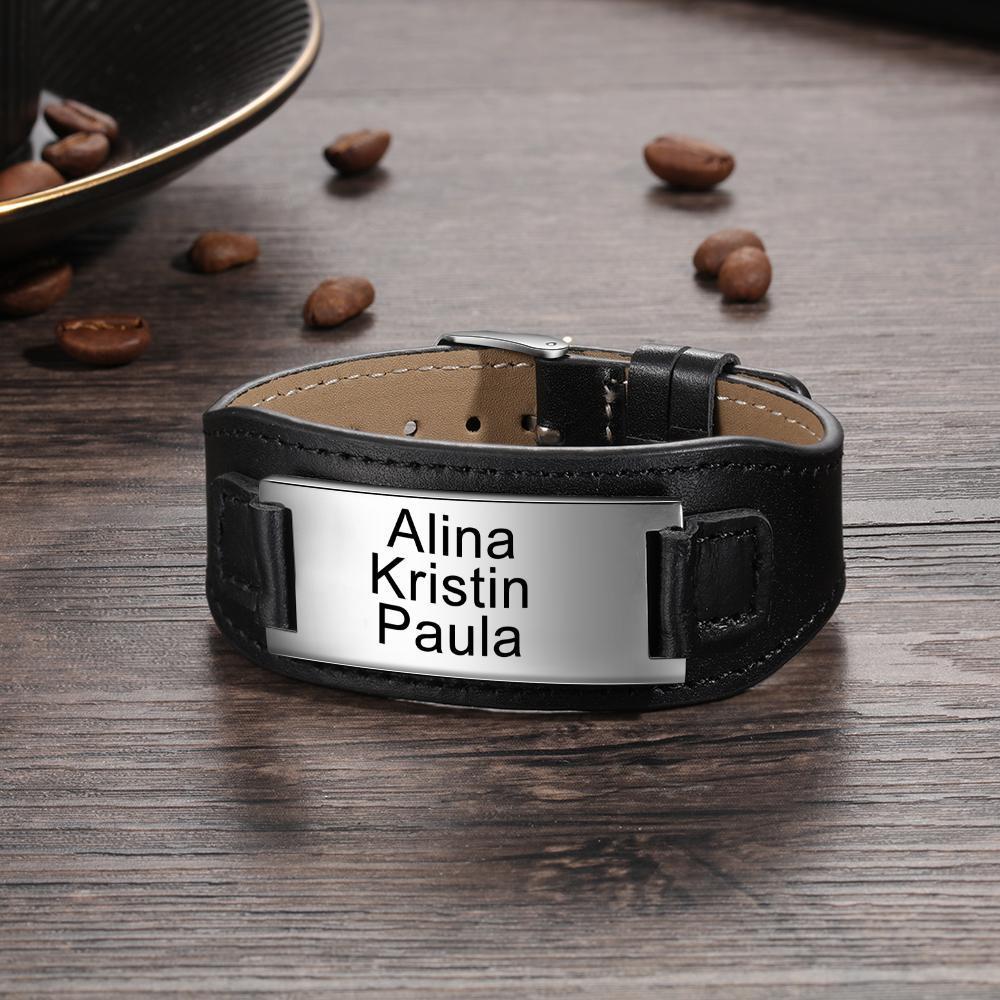 Pulsera de cuero con 3 nombres personalizados para hombre