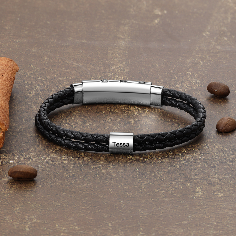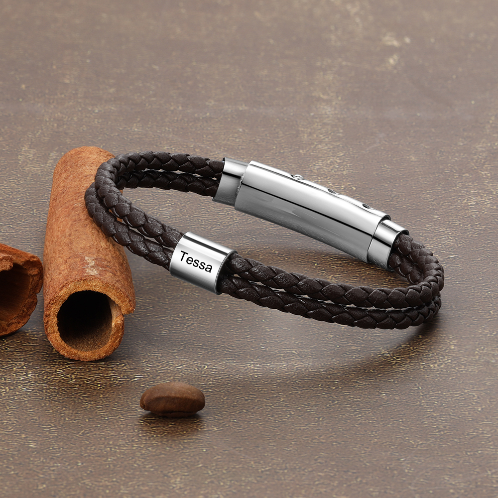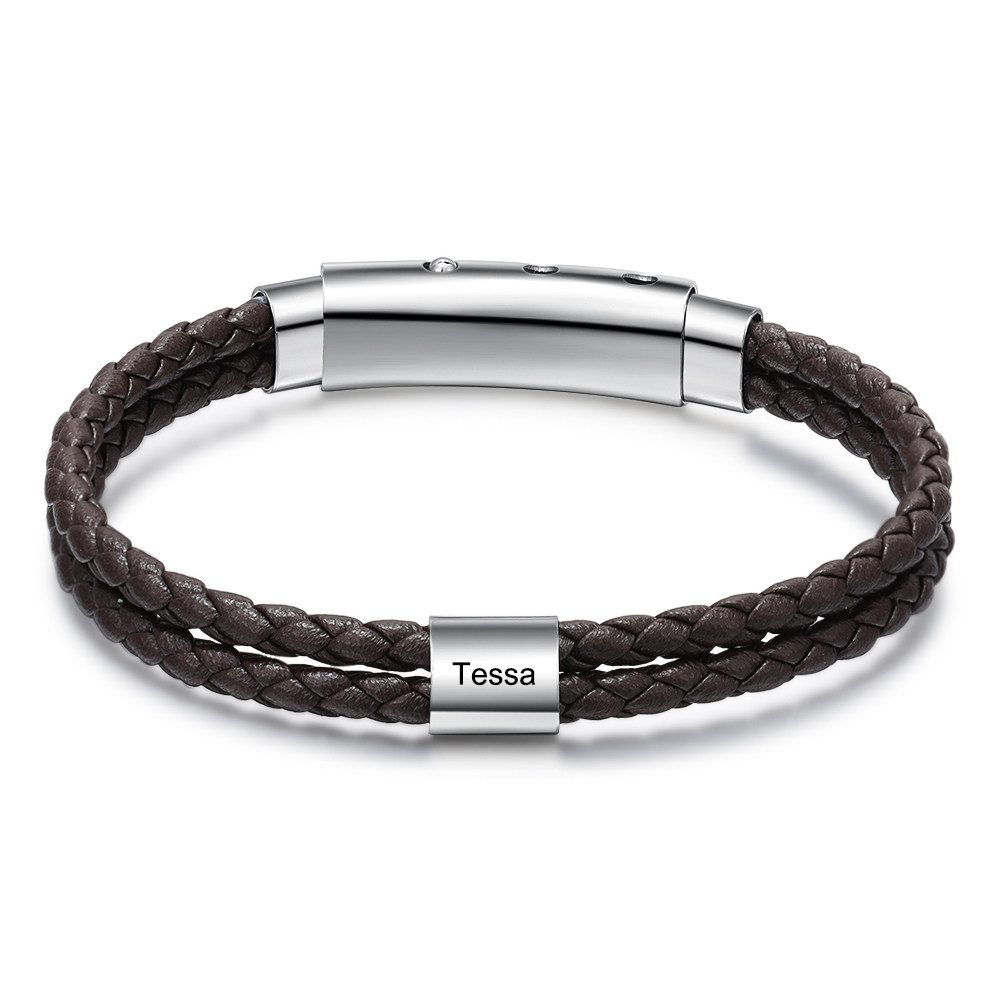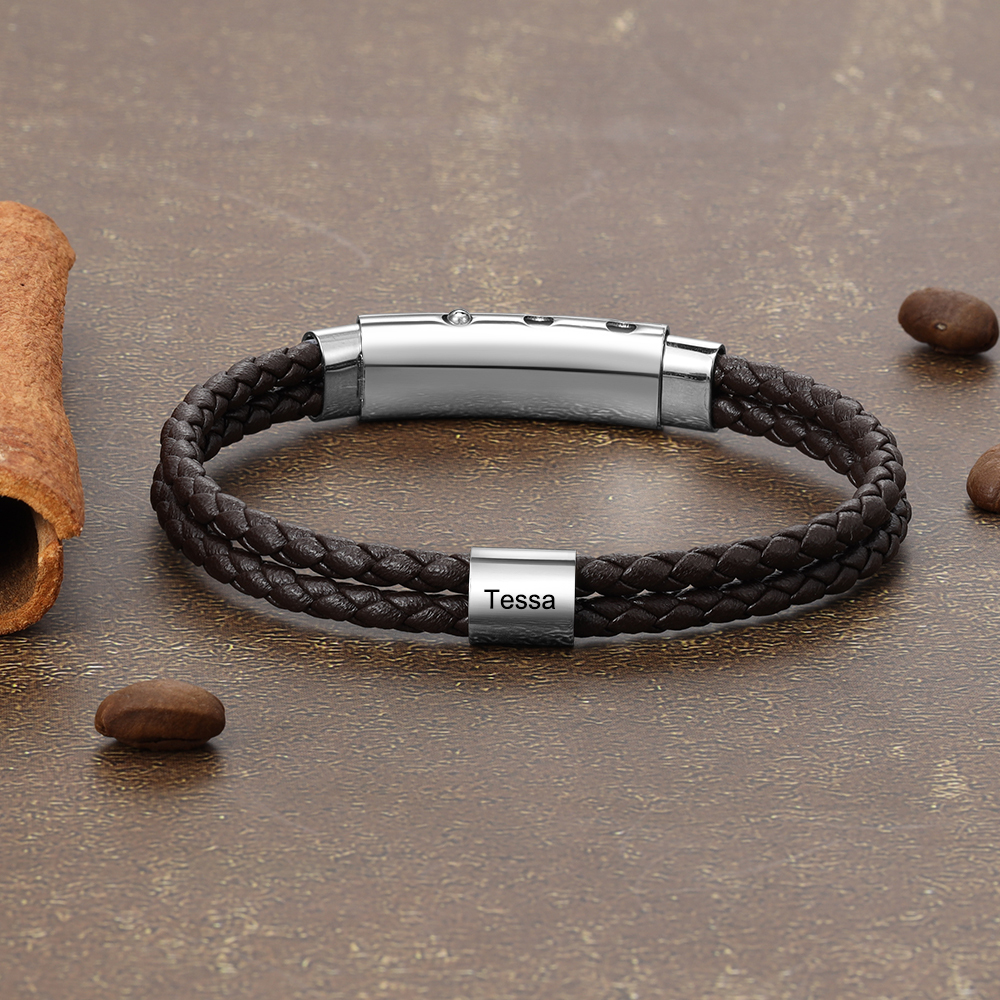 Pulsera de cuero personalizada con 1 nombre para hombre