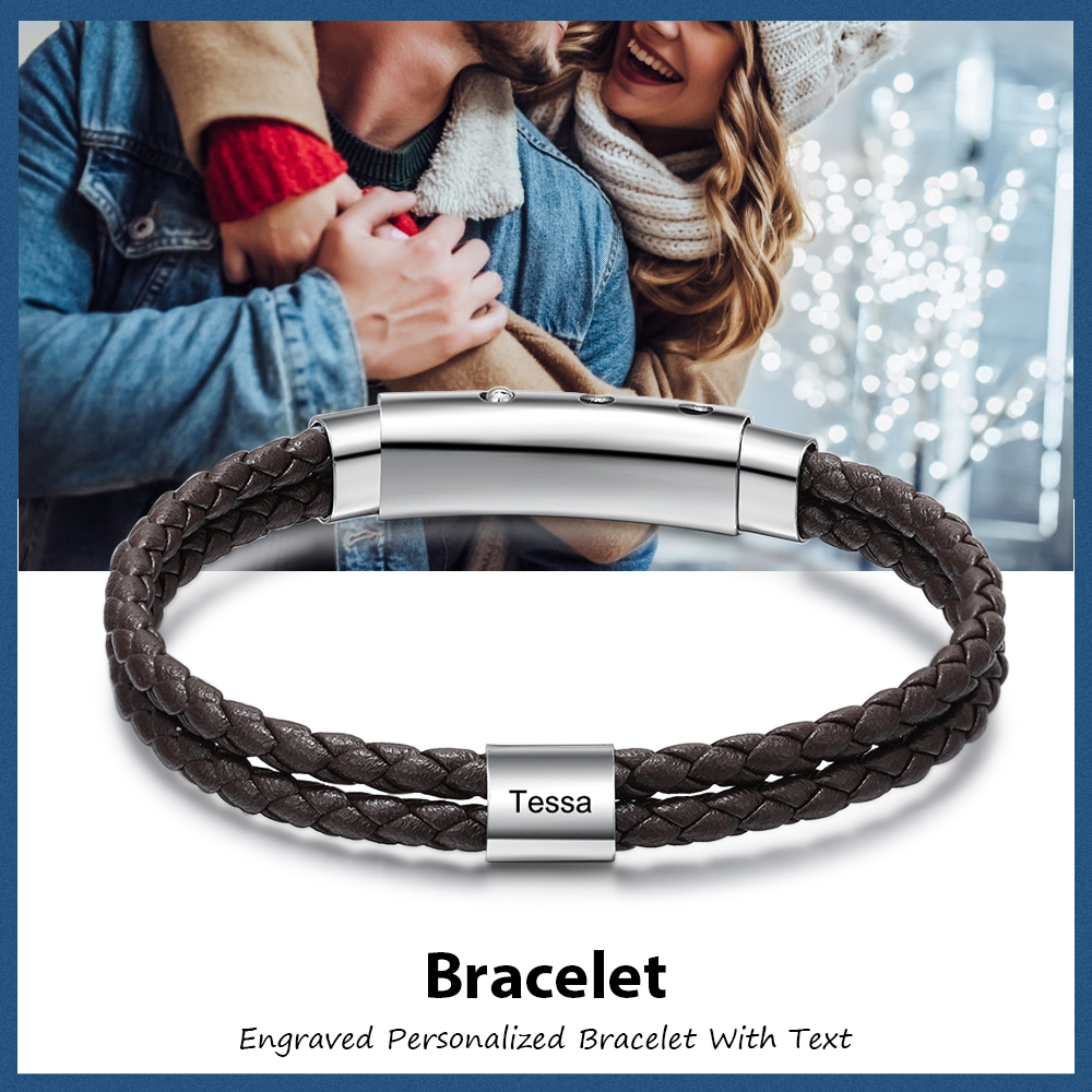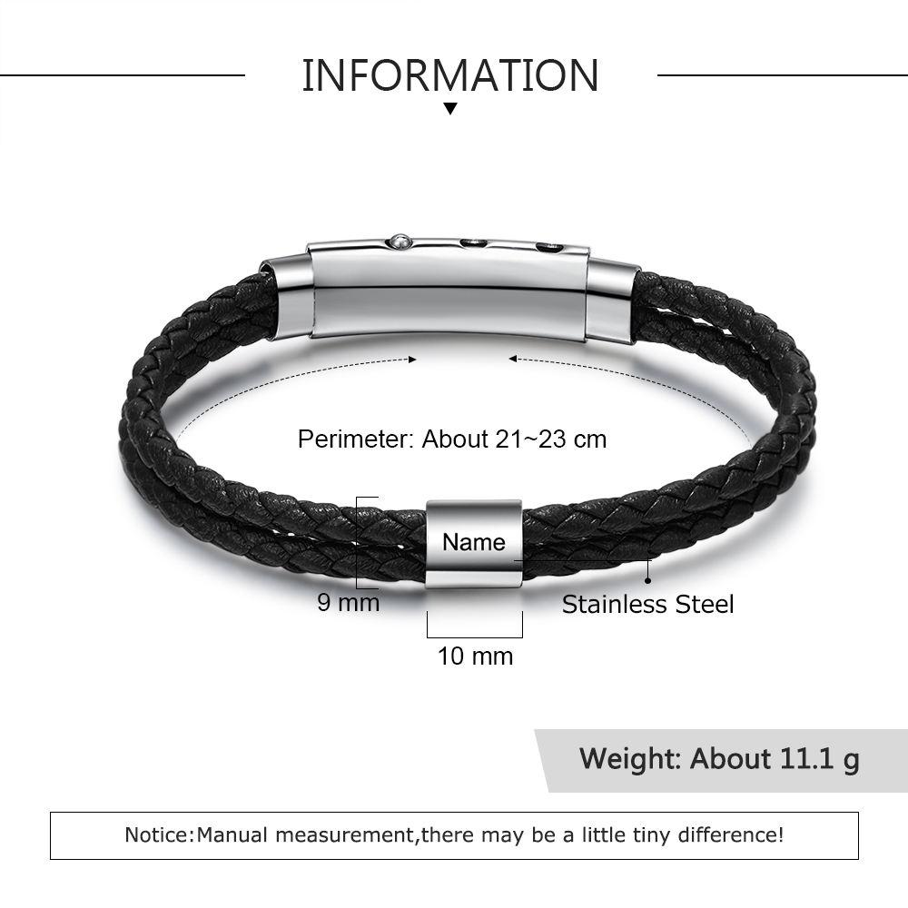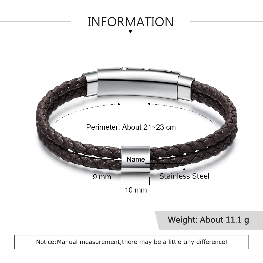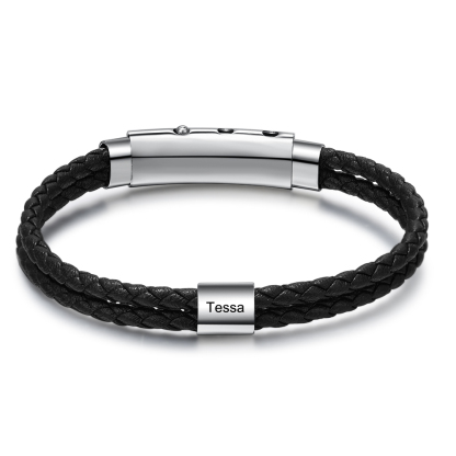 Pulsera de cuero personalizada con 1 nombre para hombre
