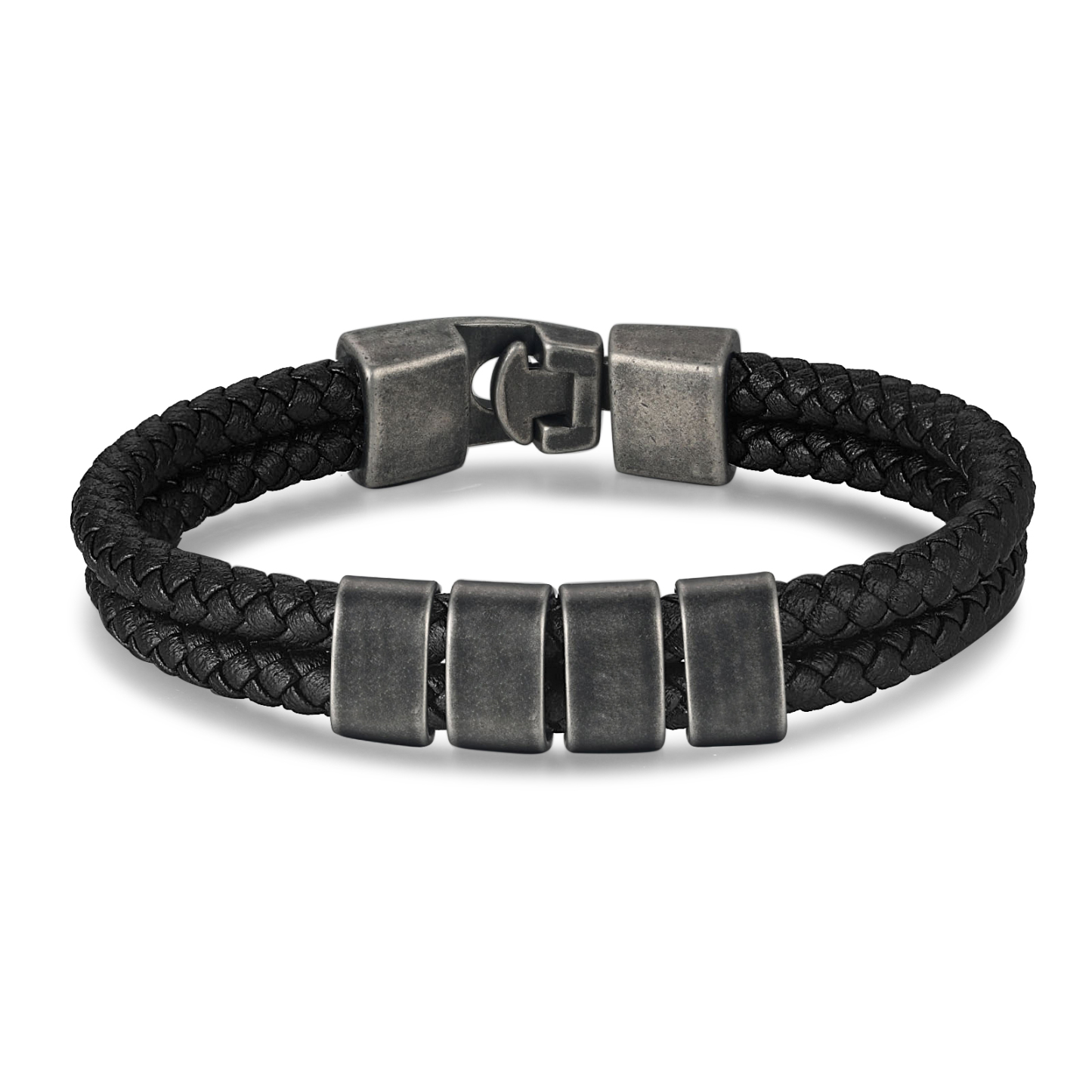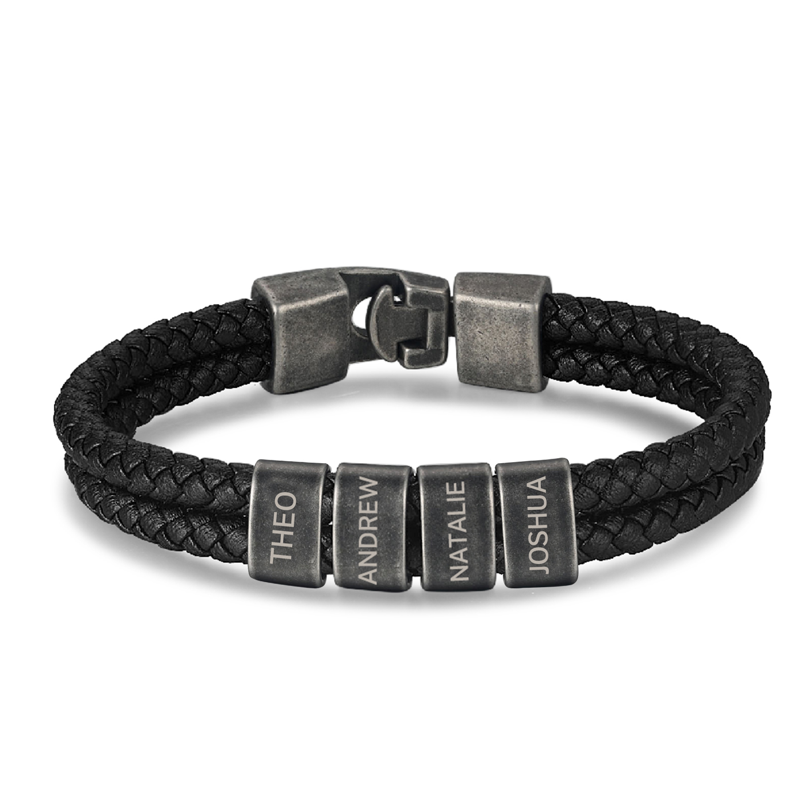 Pulsera de cuero trenzado Pulsera para hombres con 4 nombres personalizados grabados en metal inoxidable fácil de ponerse