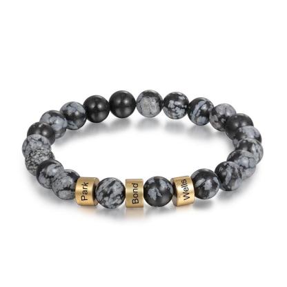 Pulsera de Gris Labradorita 3 Nombres Personalizados para Hombre