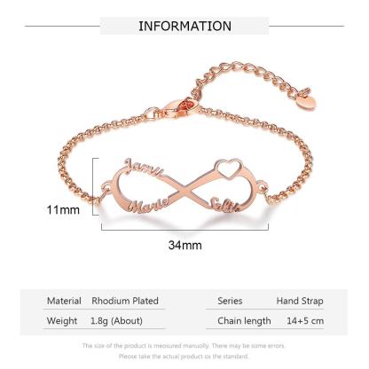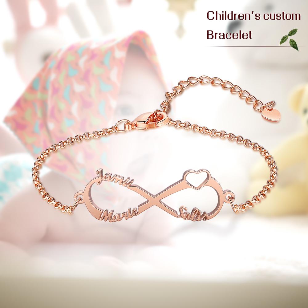 Pulsera de "infinito" personalizada con 3 nombres para niña
