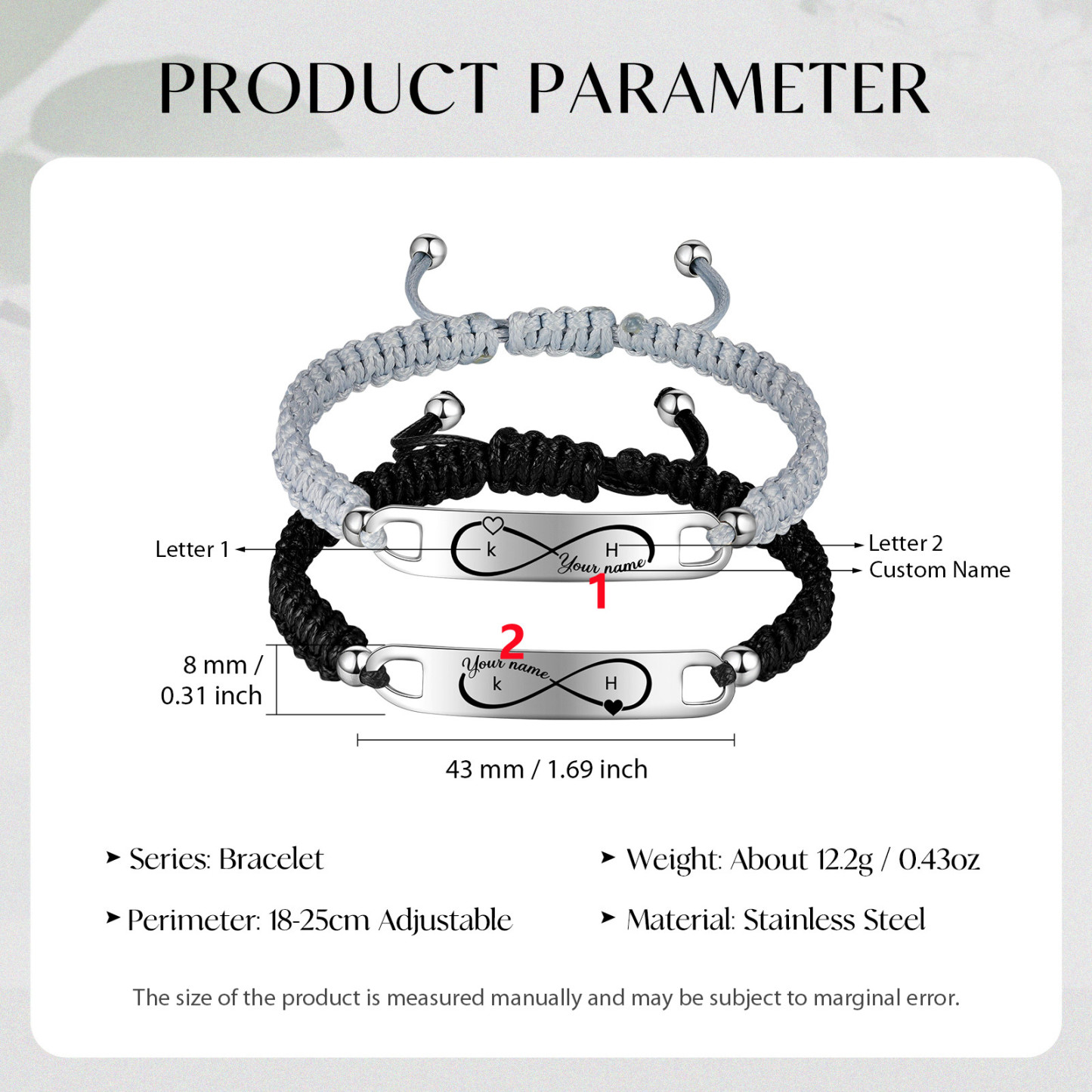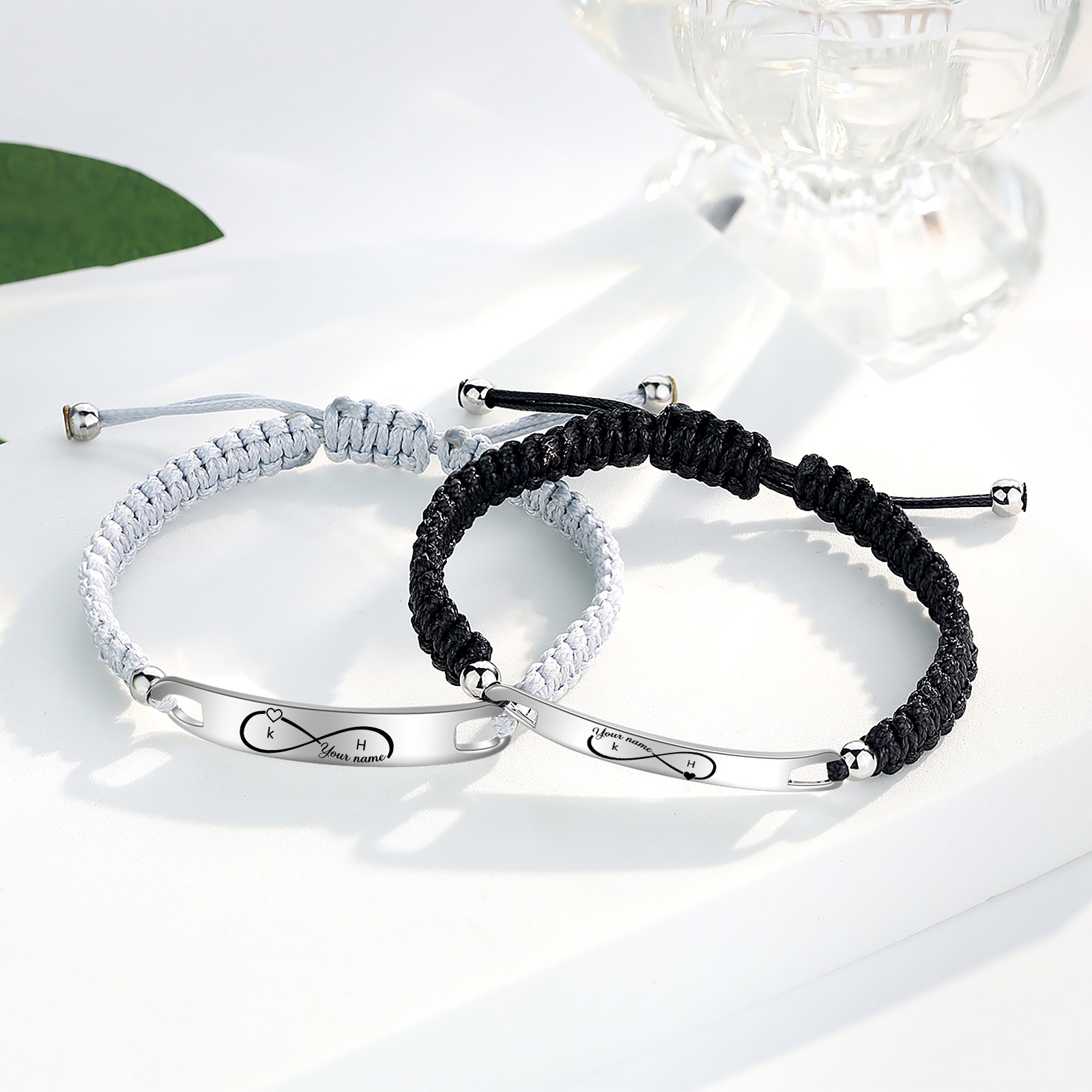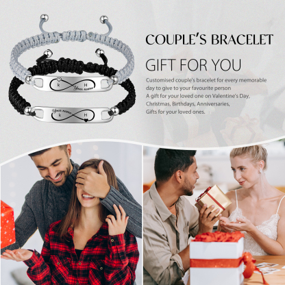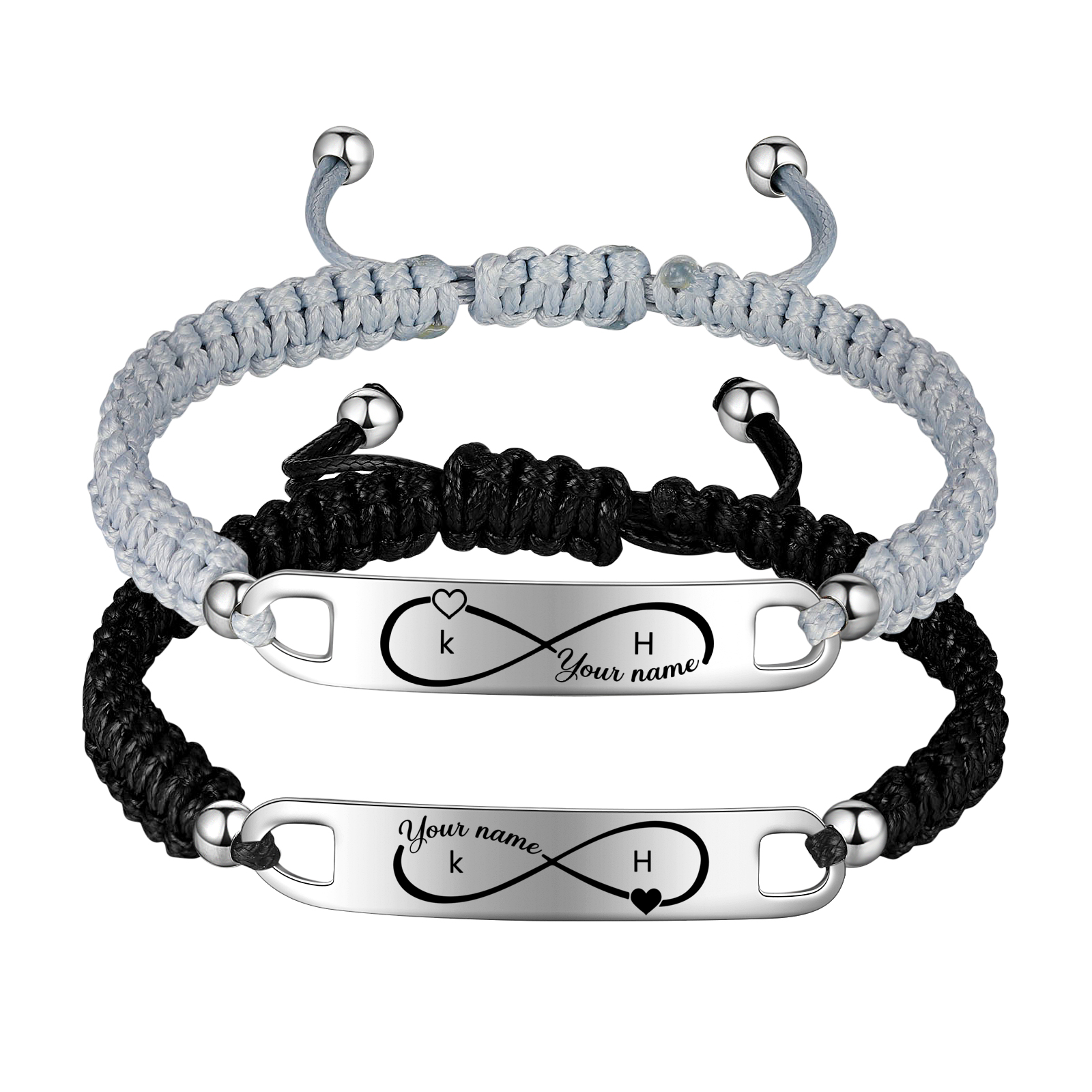 Pulsera de pareja con 2 nombres personalizados y 2 letras