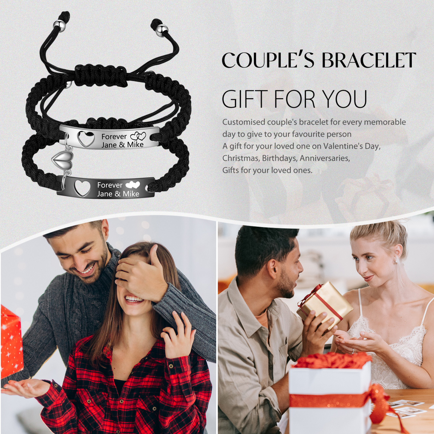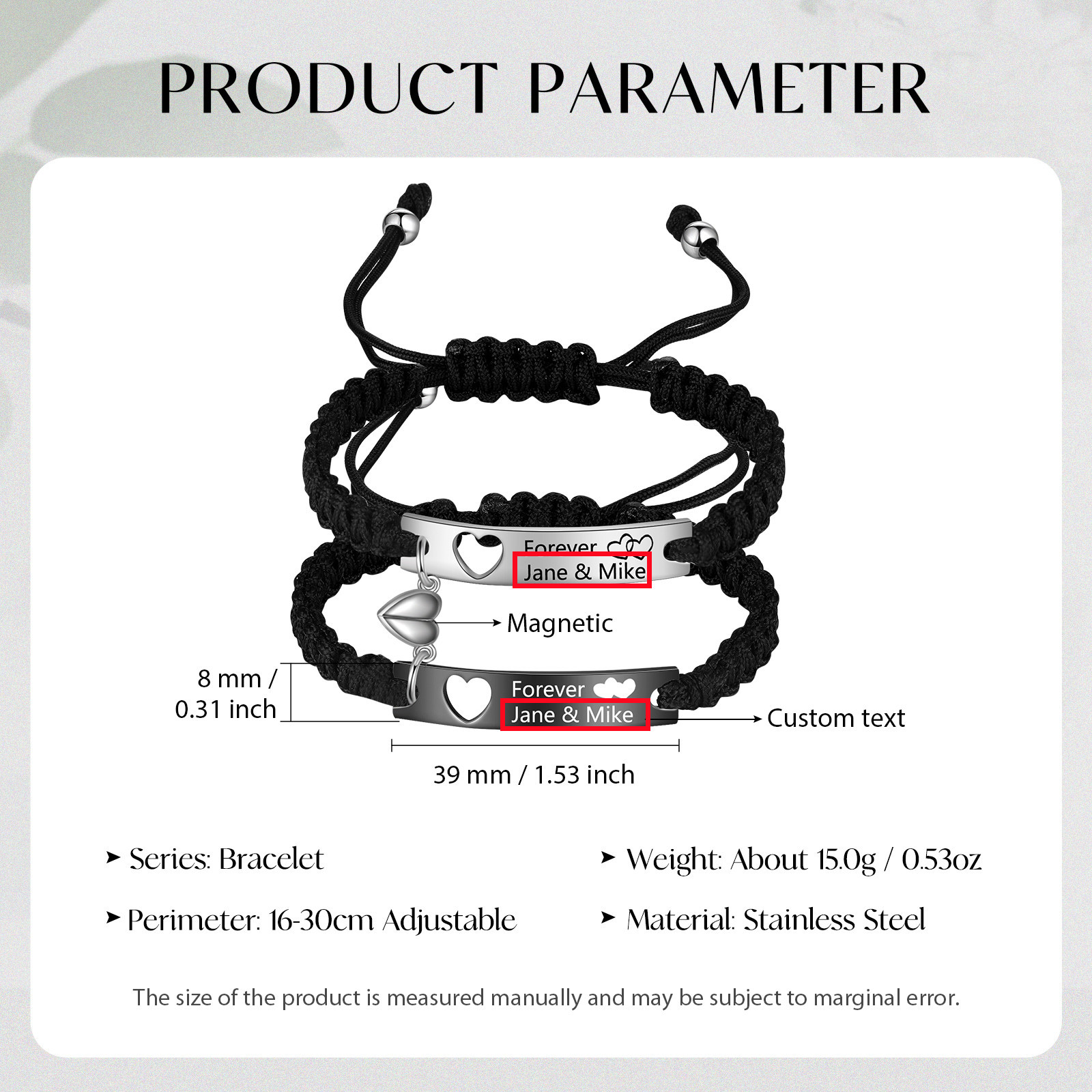 Pulsera de pareja con texto personalizado