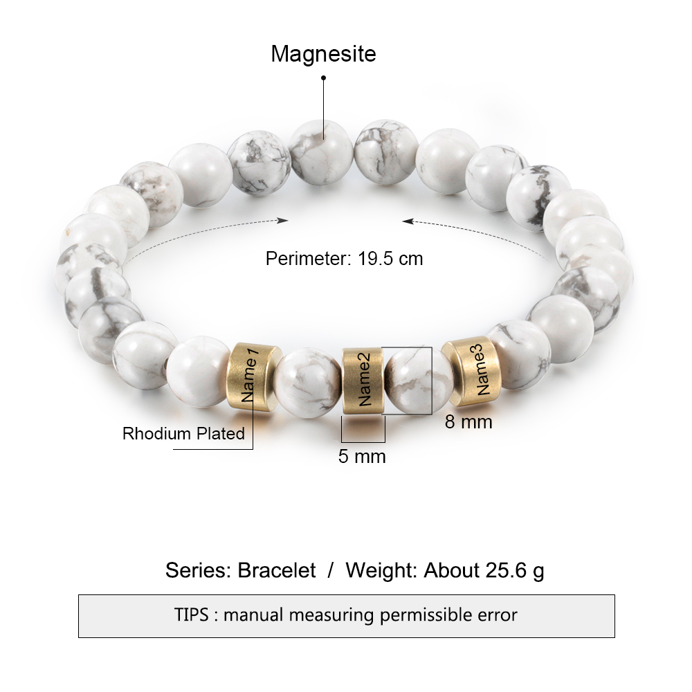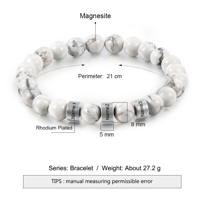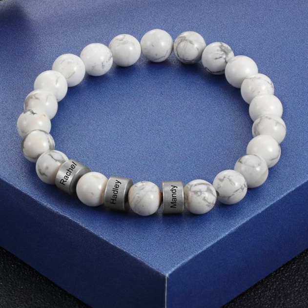 Pulsera de perlas blancas 3 nombres personalizados
