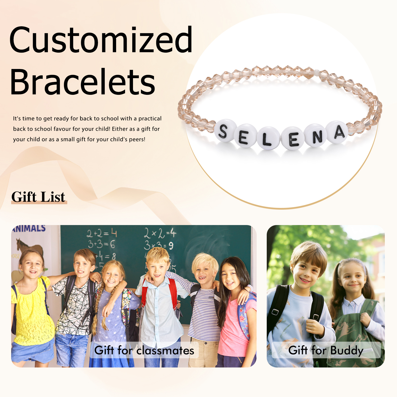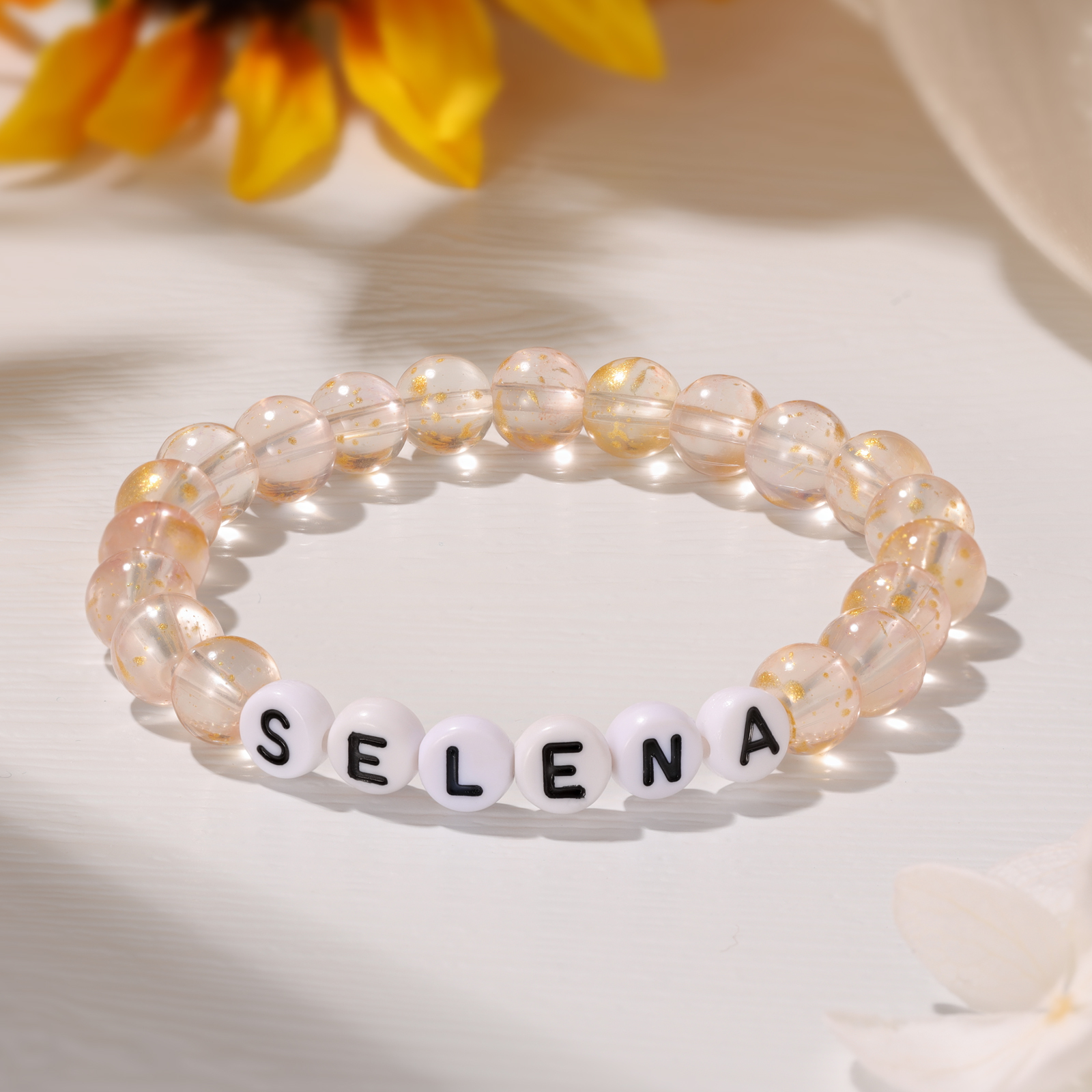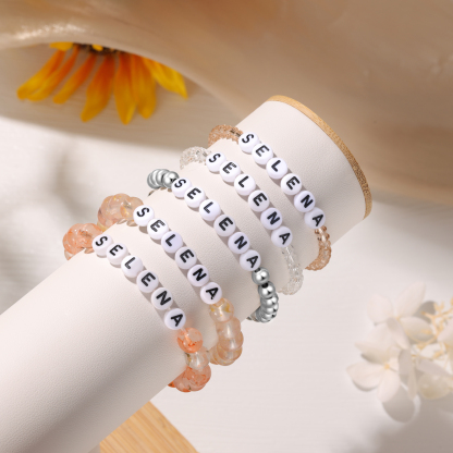 Pulsera de piedras de vidrio con 1 nombre personalizado para niña, niño