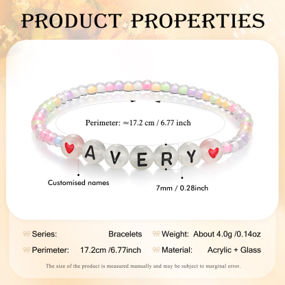 Pulsera de piedras de vidrio con 1 nombre personalizado para niña, niño