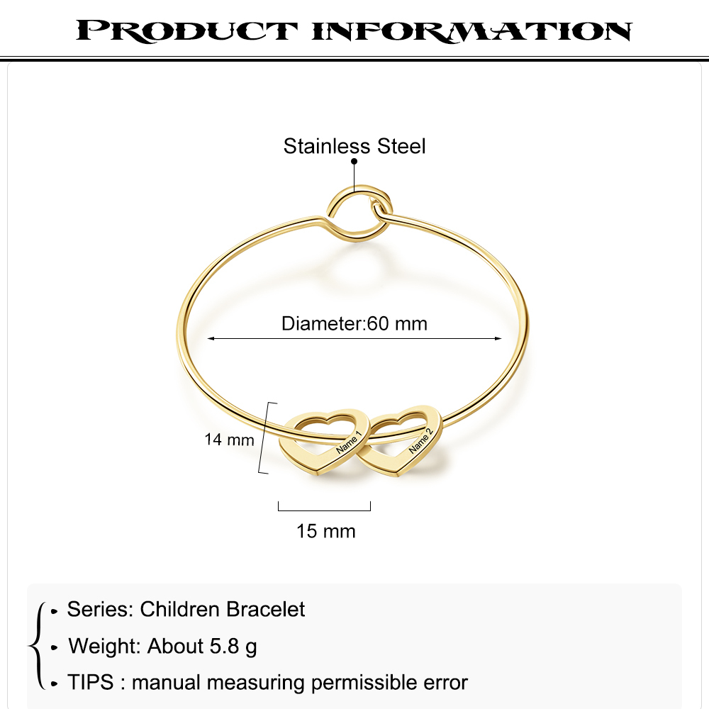 Pulsera Infantil 2 nombres personalizados en 2 corazones