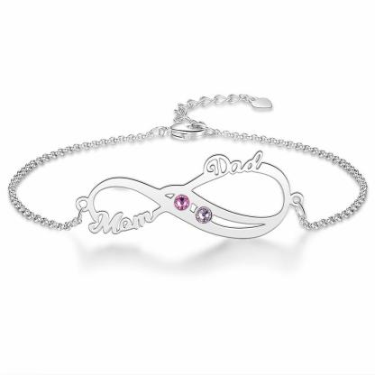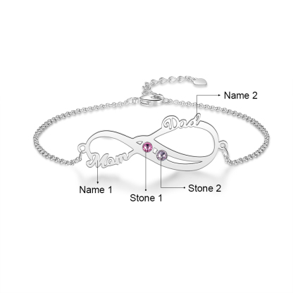 Pulsera para mujer infinito de plata 925 con 2 nombres y 2 piedras de nacimiento personalizados