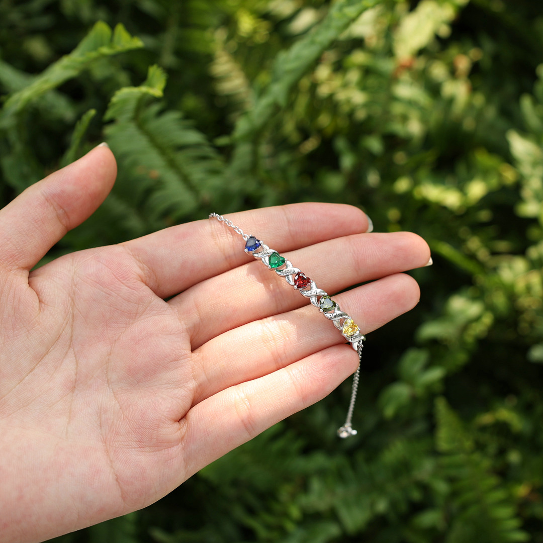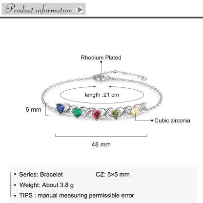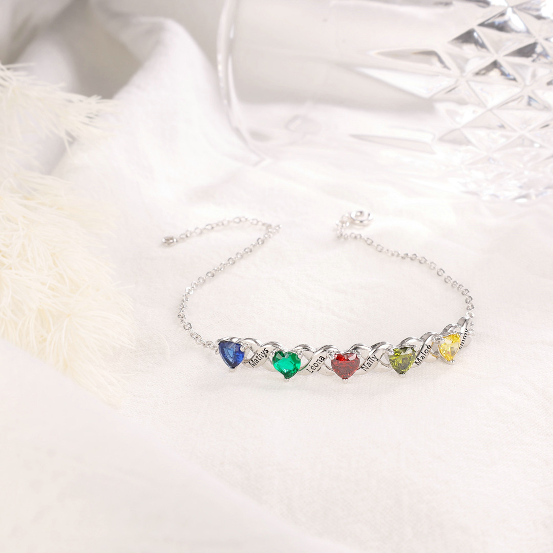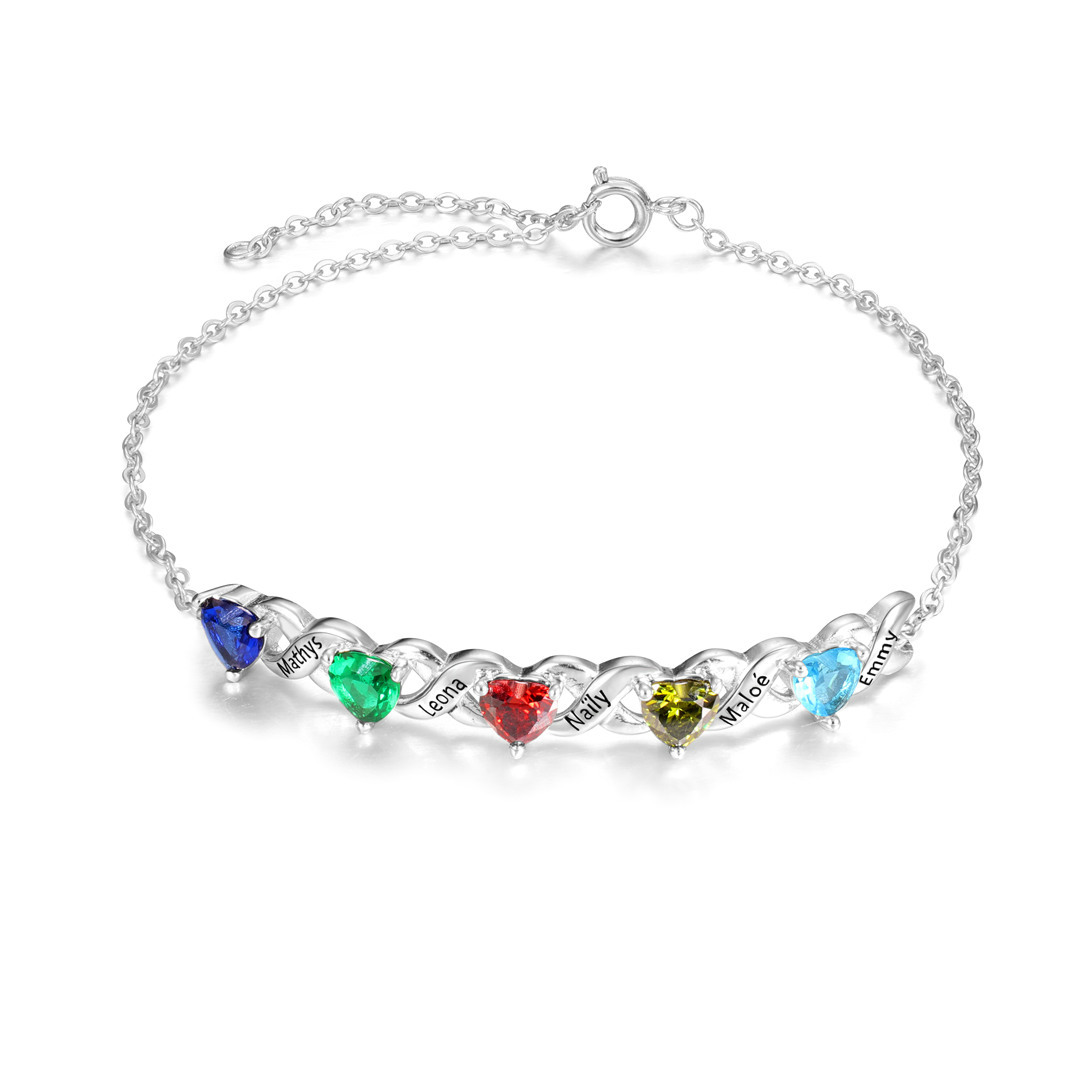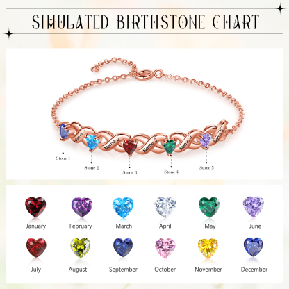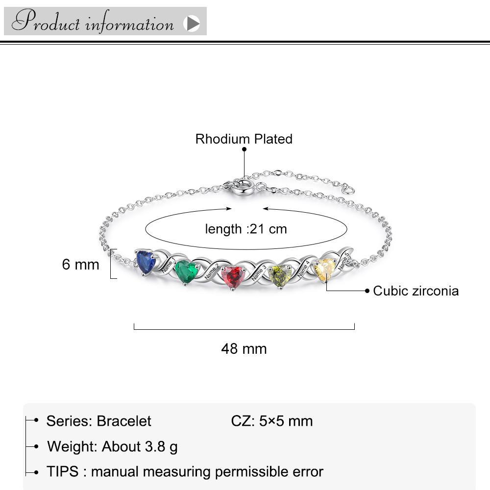 Pulsera para mujer infinito personalizada con 5 nombres y 5 piedras de nacimiento de corazón