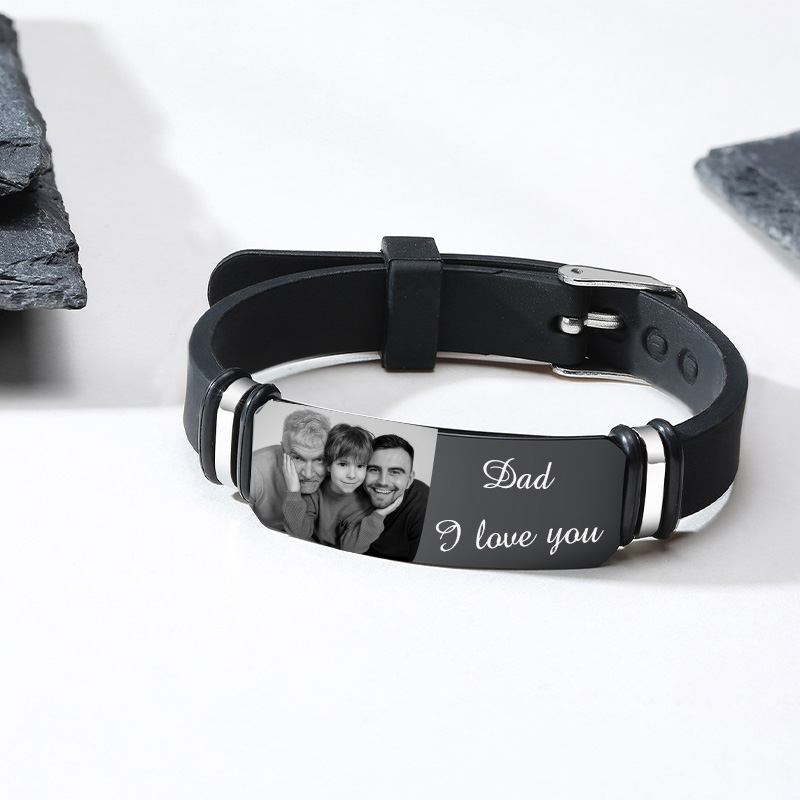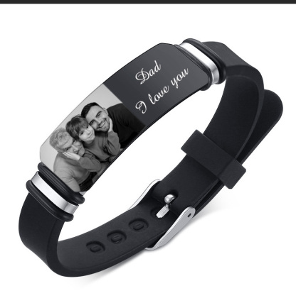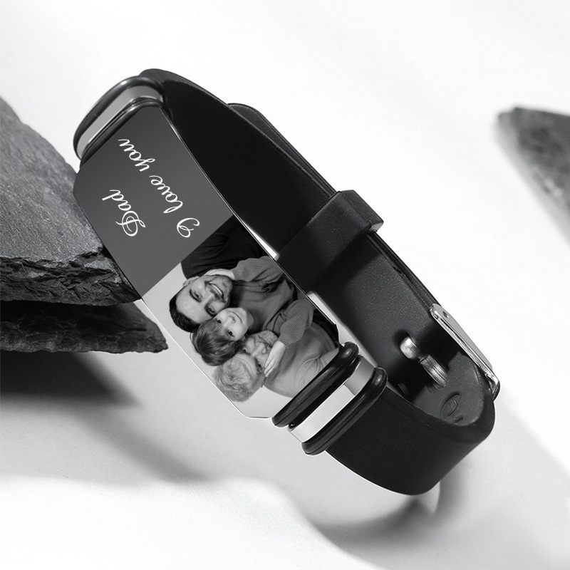 Pulsera personalizada con 1 texto y 1 foto para hombre