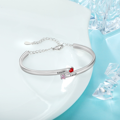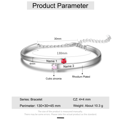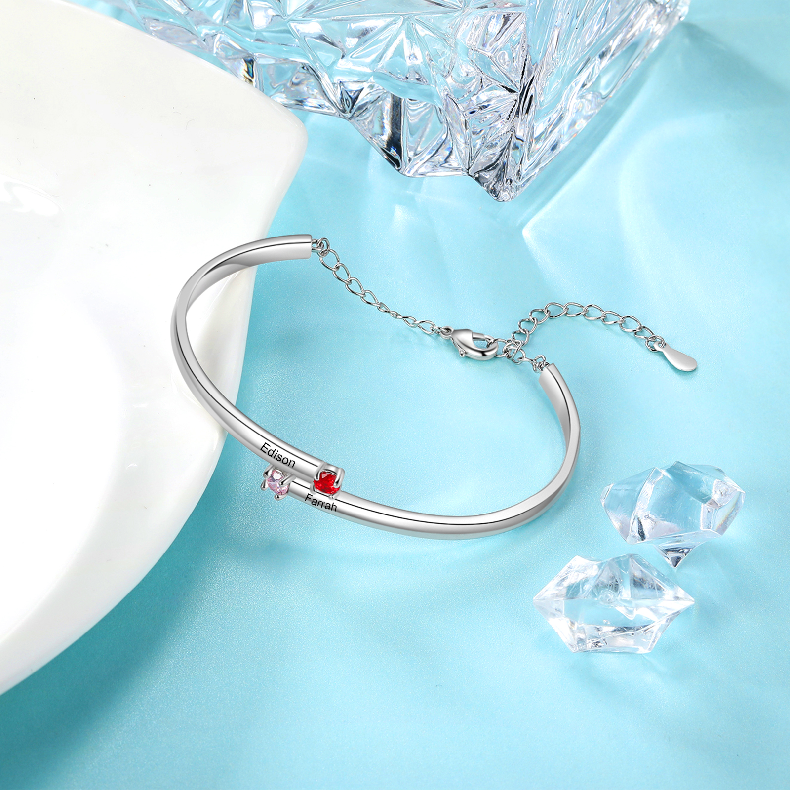 Pulsera para mujer personalizada con 2 nombres y 2 piedras de nacimiento