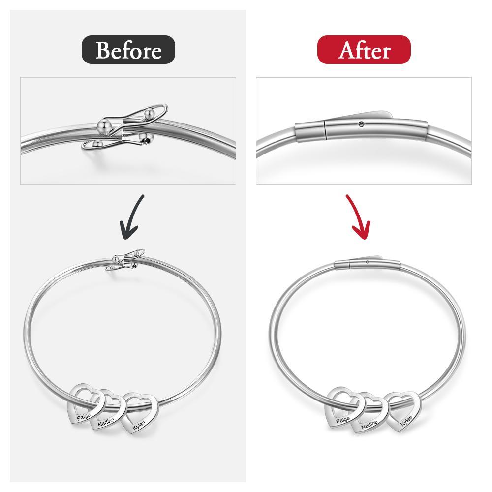 Pulsera para Mujer Personalizada con 3 Colgantes de Corazón de 3 Nombres