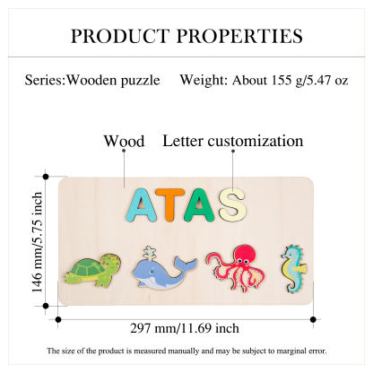 Puzzles/Rompecabezas Madera Animales de Océano con 1 Nombre Personalizado